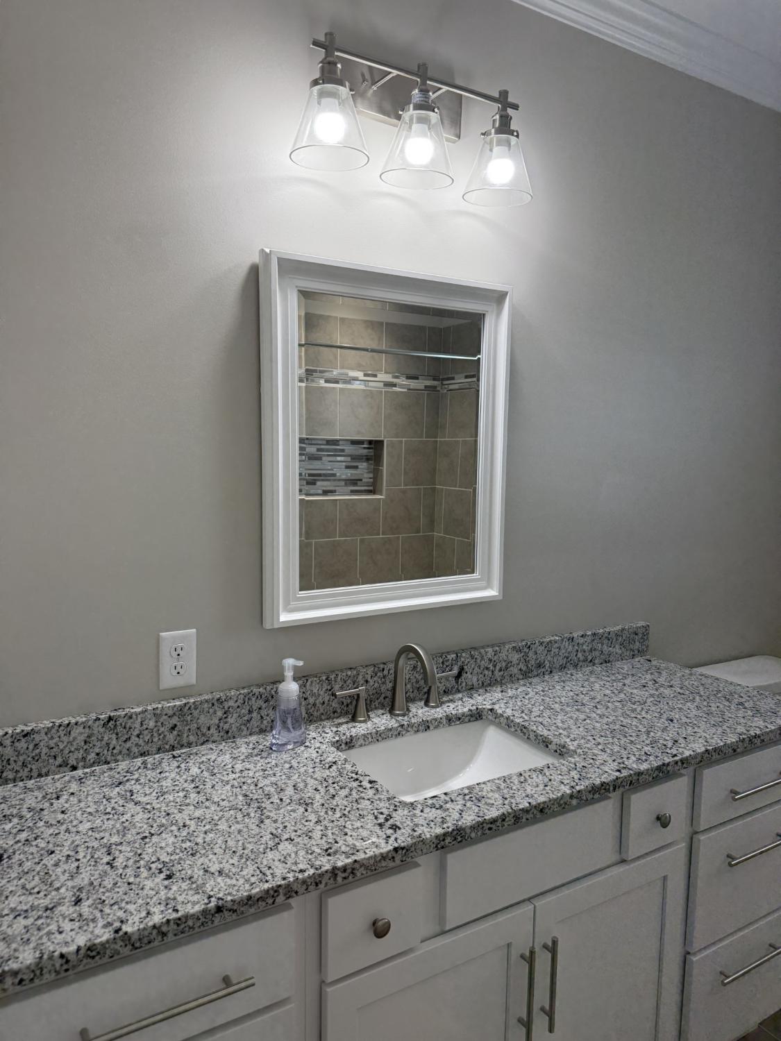 Spacious 3 BR/ 2.5 BA rancher with 2 car garage on large lot in great new neighborhood. This high quality homebuilders attention to detail and quality materials is evident the minute you open the door. Granite counters thru out, tiled showers and baths, gas range & fireplace, efficient heat pump with gas heat, covered concrete front & back porches, brick and vinyl exterior, designer fixtures, walk in closets and plenty of storage. Comfortable home with big kitchen, open concept with large living room, small office & half bath, natural gas, large covered concrete back porch, huge yard with plenty of room, big laundry room with cabinets and sink, 2 walk-in closets in main bedroom and so much more.