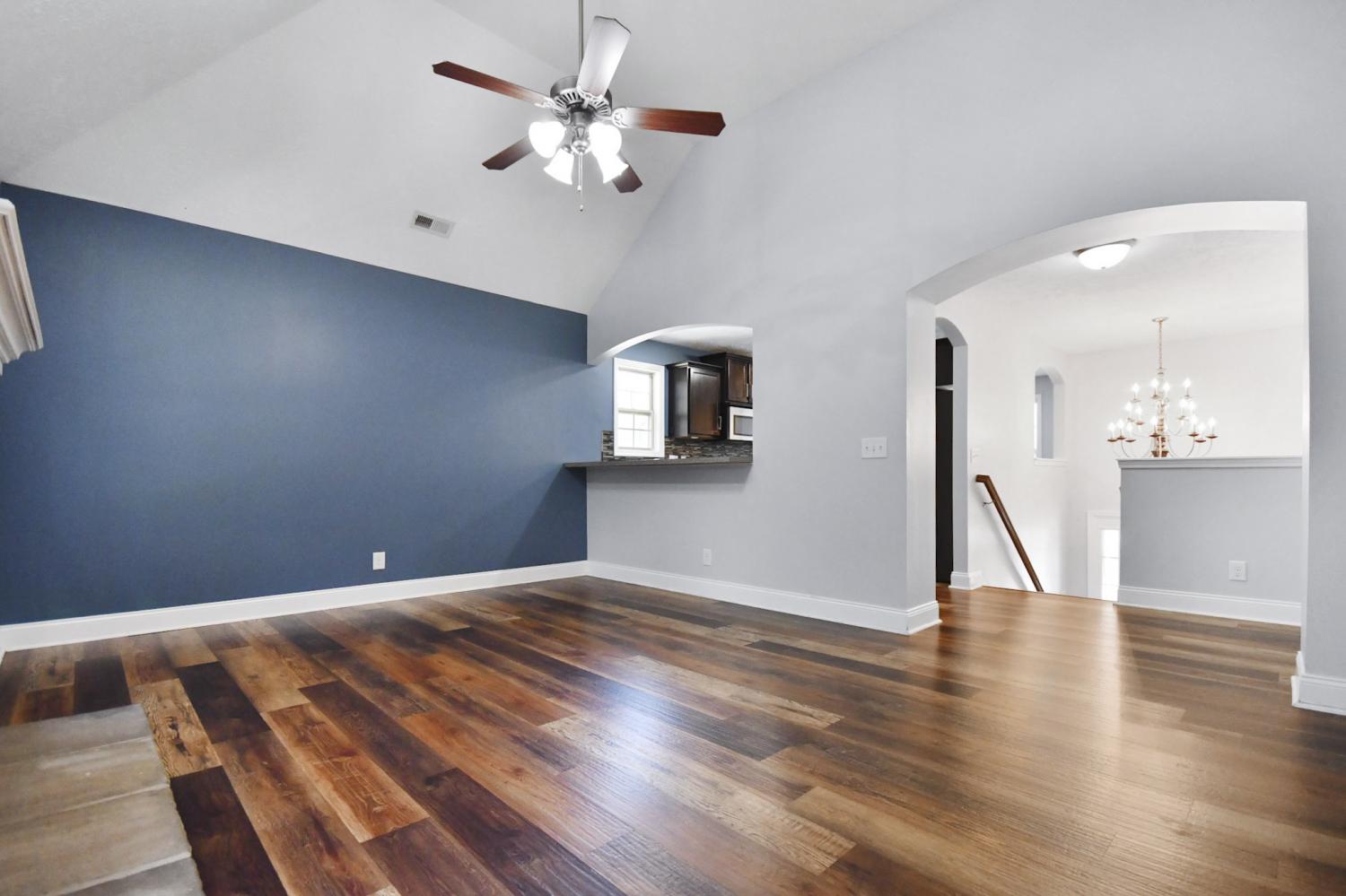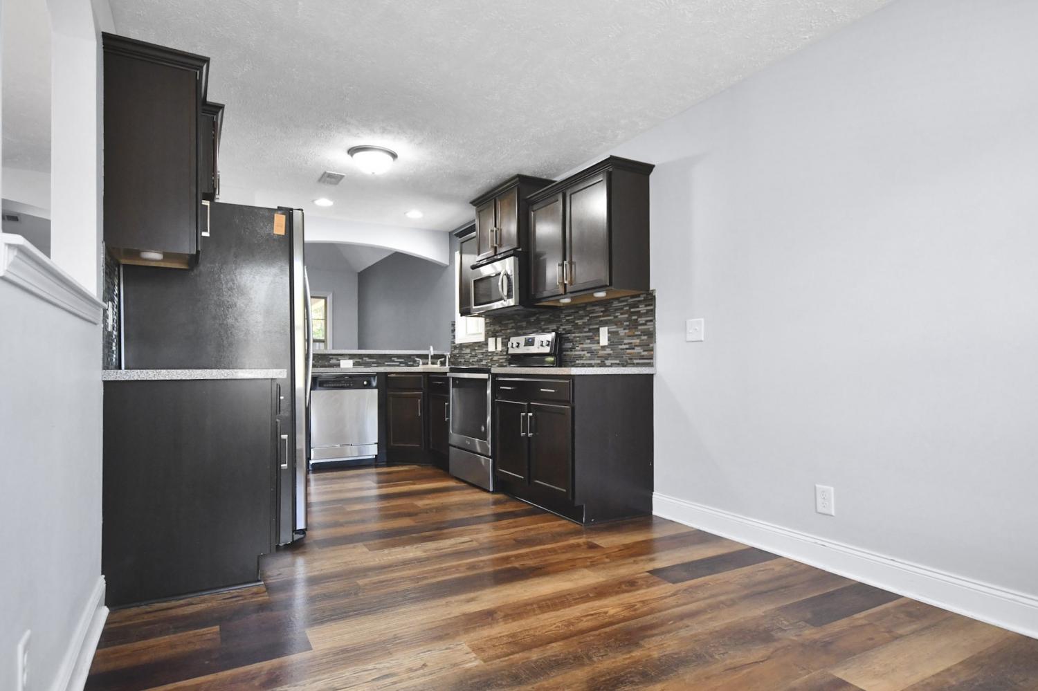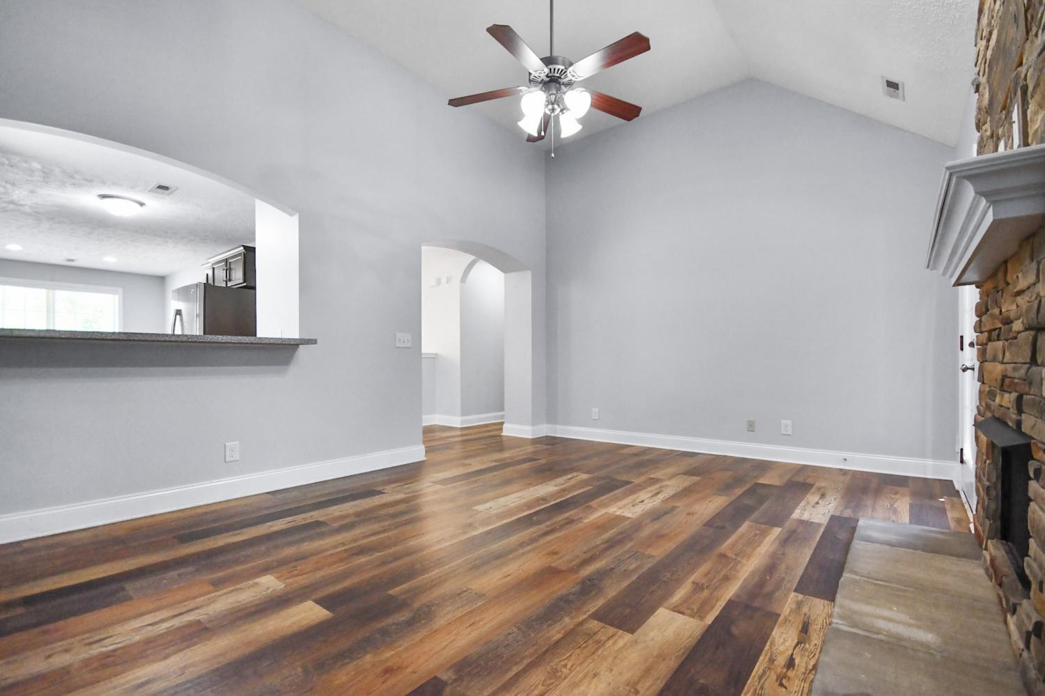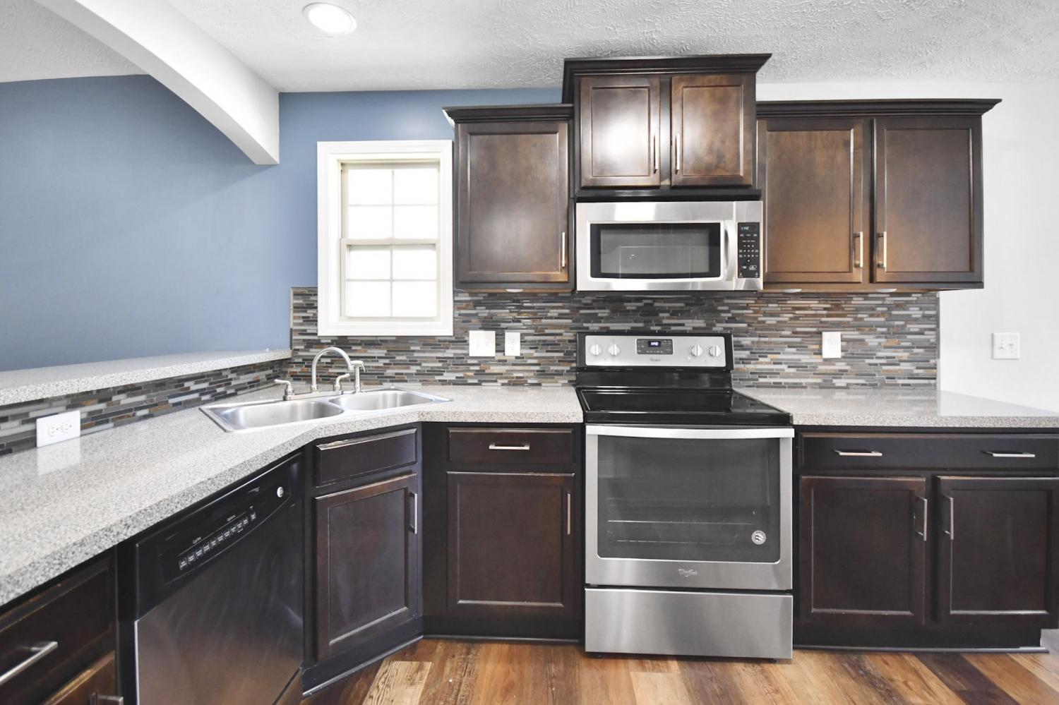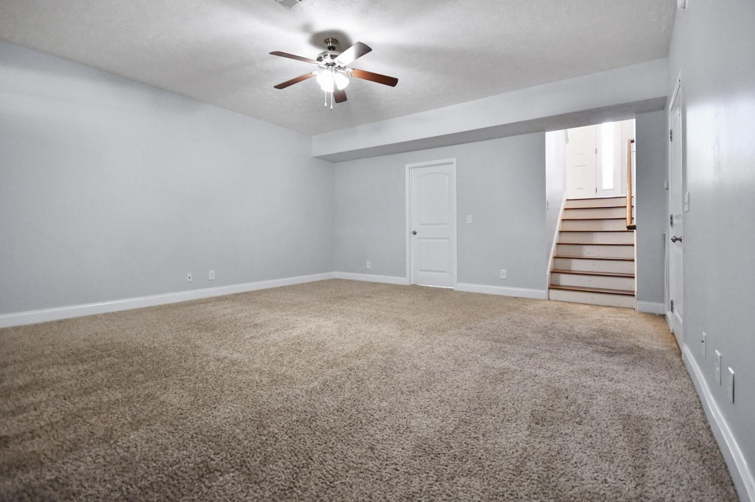 Spacious split foyer home featuring beautiful laminate flooring, large living room with stone fireplace, eat in kitchen with stainless steel appliances, primary suite with full bath and two walk in closets, oversized guest rooms, great rec room on basement level, two car garage and fenced yard with storage shed! Pet rent applicable.