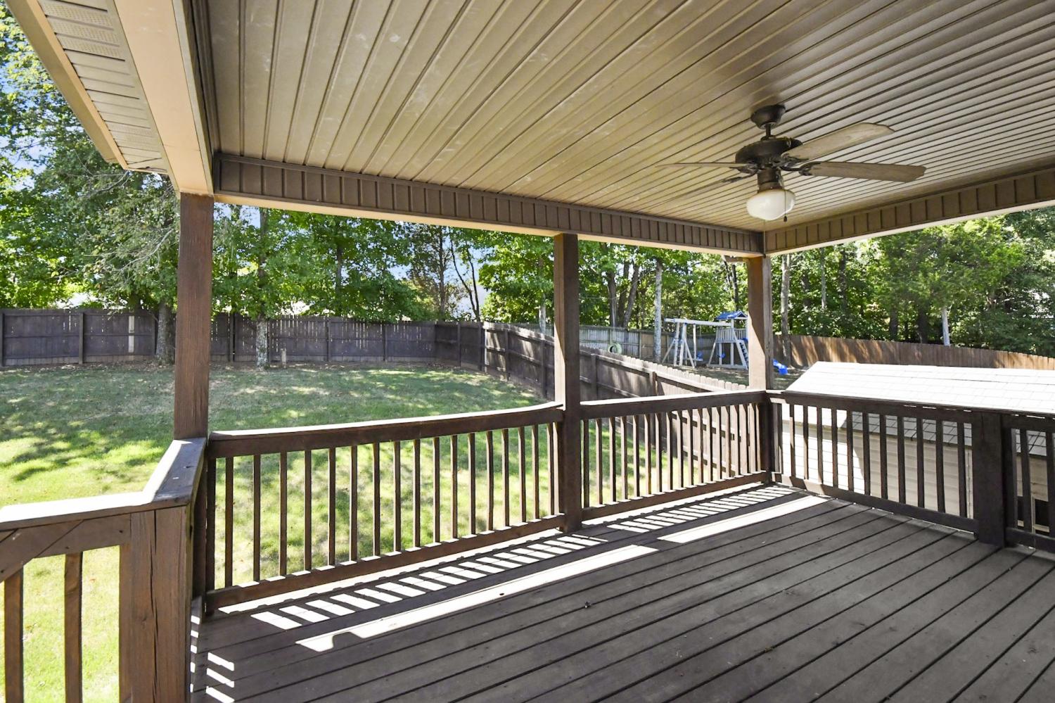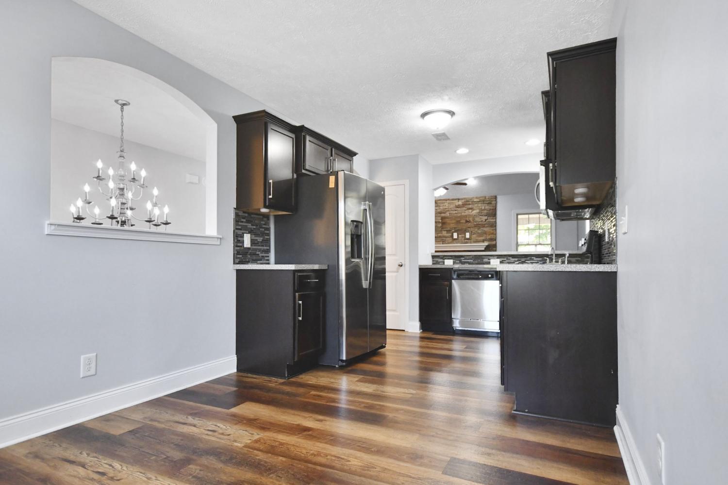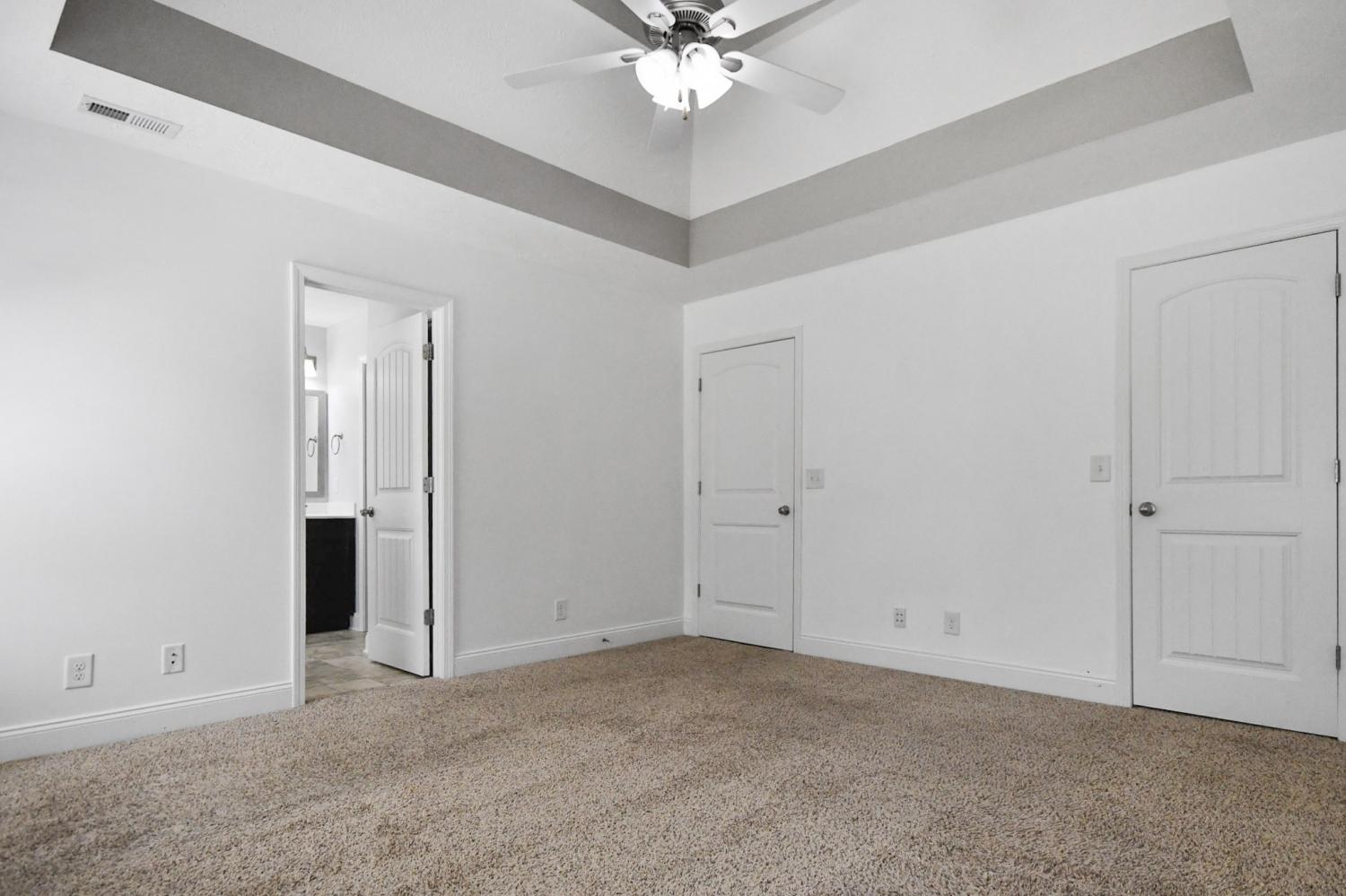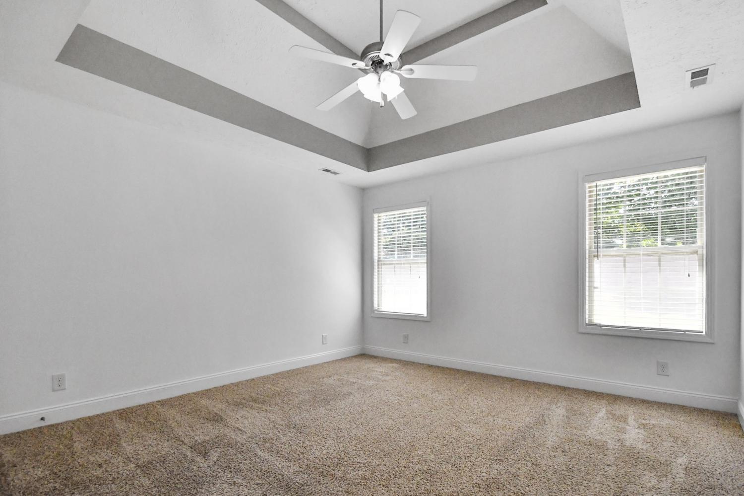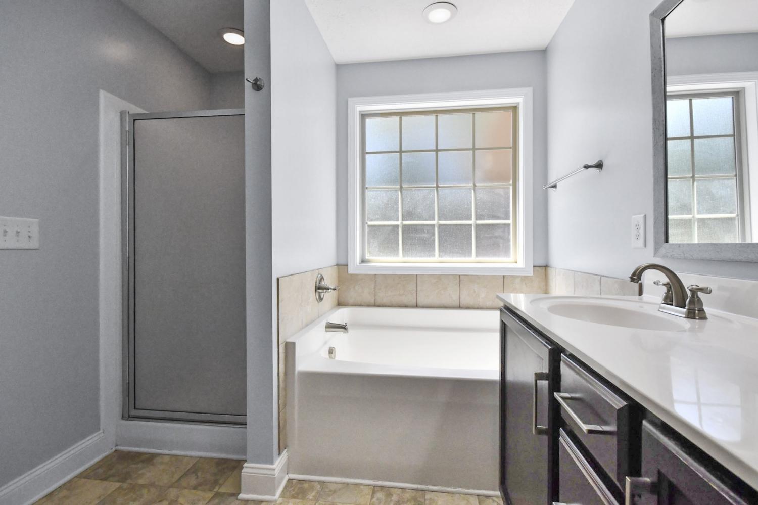 Spacious split foyer home featuring beautiful laminate flooring, large living room with stone fireplace, eat in kitchen with stainless steel appliances, primary suite with full bath and two walk in closets, oversized guest rooms, great rec room on basement level, two car garage and fenced yard with storage shed! Pet rent applicable.