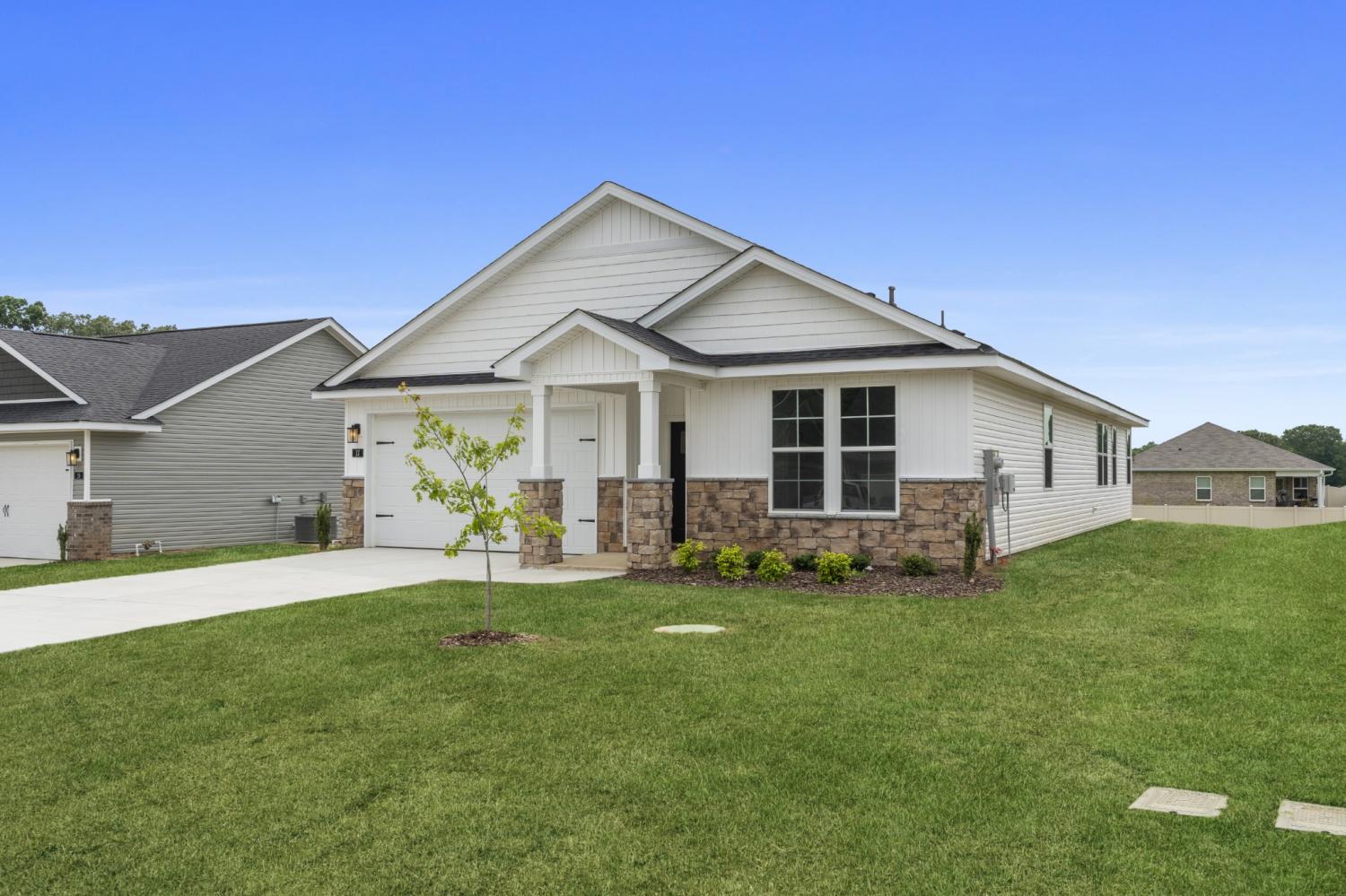 The Aurora is designed with maximum flexibility and livability in mind. Luxury meets affordability and just makes sense. With up to four bedrooms and the option to have a study, the Aurora is ready for any family. Welcoming your guests, enter the home through a covered porch and nicely framed front entry you will walk into the gallery. Open concept floor plan yet privacy for those who need their space. This home has an option for zero down to those who are eligible. Ask about current promotions. Community Agent is located at 196 Cherry Laurel Hazel Green, AL 35750.