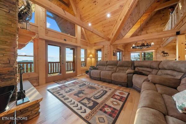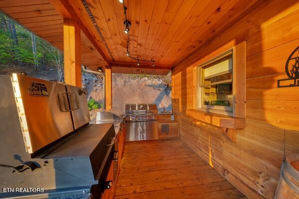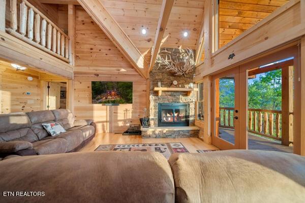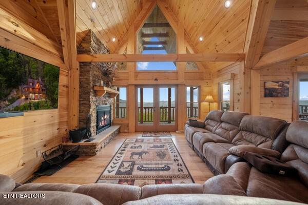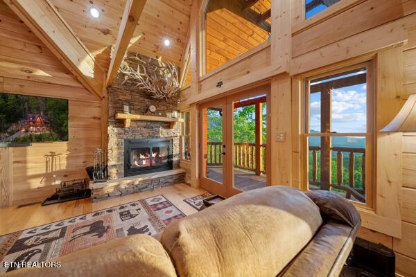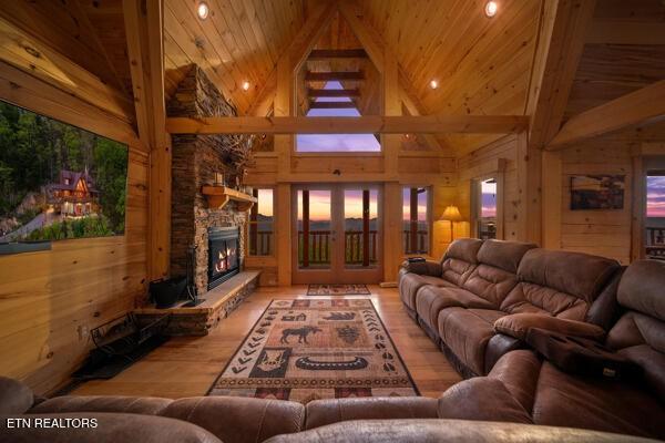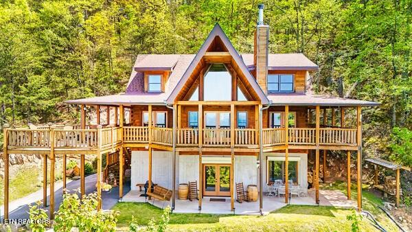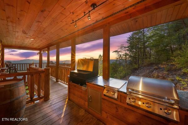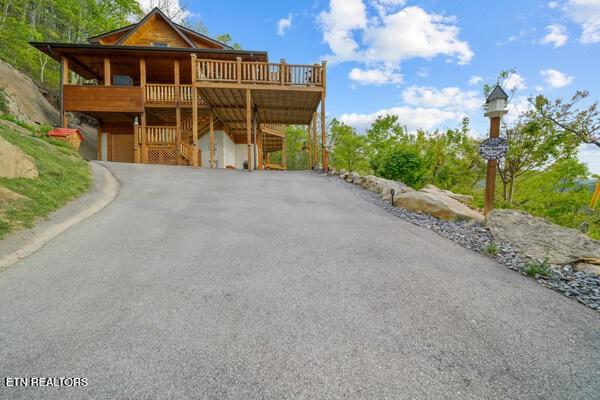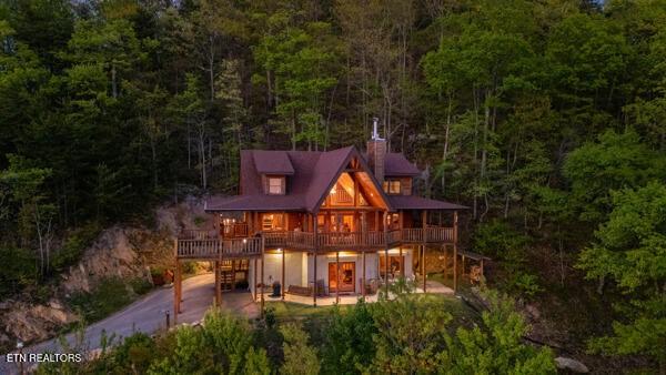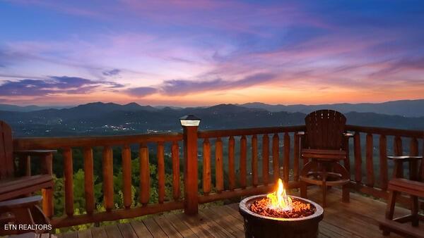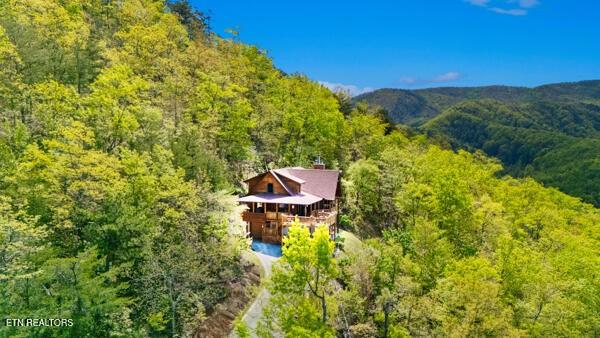 Over 180 degrees of breathtaking beauty from the lap of luxury! This Is Smoky Mountain Paradise! The mountain views are endless from this absolutely stunning custom built cabin beautifully situated on 5 acres! This is the one you've been dreaming about, and your search is done! As you drive up your private gated driveway you will be in awe! This cabin was meticulously crafted by a builder set on creating the perfect mountain retreat. When you step onto the expansive decks you will be left breathless by the views. The deck has an outdoor kitchen complete with stainless steel grills, griddle, oven, and granite countertops too. You can sit on the deck and enjoy a cozy fire in the outdoor fireplace, or sit around the fire pit on the open deck and enjoy the stars. The stunning views from the decks will leave you speechless, and the views looking out over Wears Valley will not disappoint. As you enter the front door you are met with an open great room with soaring ceilings, stack stone fireplace, and spectacular views everywhere. The kitchen boasts lots of cabinets and granite counter tops, with an adjacent dining and bar that provides plenty of space to gather around the kitchen. The beautiful wood tongue-and-grove, and gorgeous wood beams create the perfect blend of elegance with a cozy charm. Also on the main floor you will find the primary suite with French doors leading out to the deck. The primary bathroom is its own sight to see. Complete with a Sauna room, copper Japanese soaking tub, and separate walk in shower, you won't want to leave. There's a huge walk in closet too. You also have an additional half bath that is ideally located on the main floor. As you head upstairs you find a large den with high ceilings and lots of seating space to relax and unwind. This room would also make an ideal gaming area. On this level you have a 2nd primary bedroom with a walk in closet, and a large bathroom with a walk in shower.