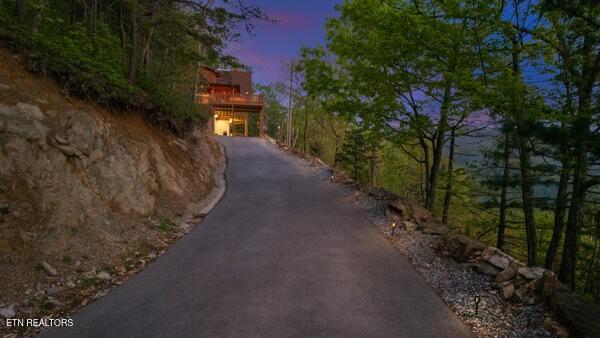 From Pigeon forge traffic light #3 turn onto Wear Valley Rd. Stay on Wears Valley Rd for approximately 6 miles. Turn left onto Valley View Rd and go to stop sign. Turn left onto Clabo Rd. Stay on CLabo Rd to the Y. Bear right at the Y onto Ravens Den Way. Stay on Ravens Den Way to the top of the mountain to the gated driveway on the Left. SOP