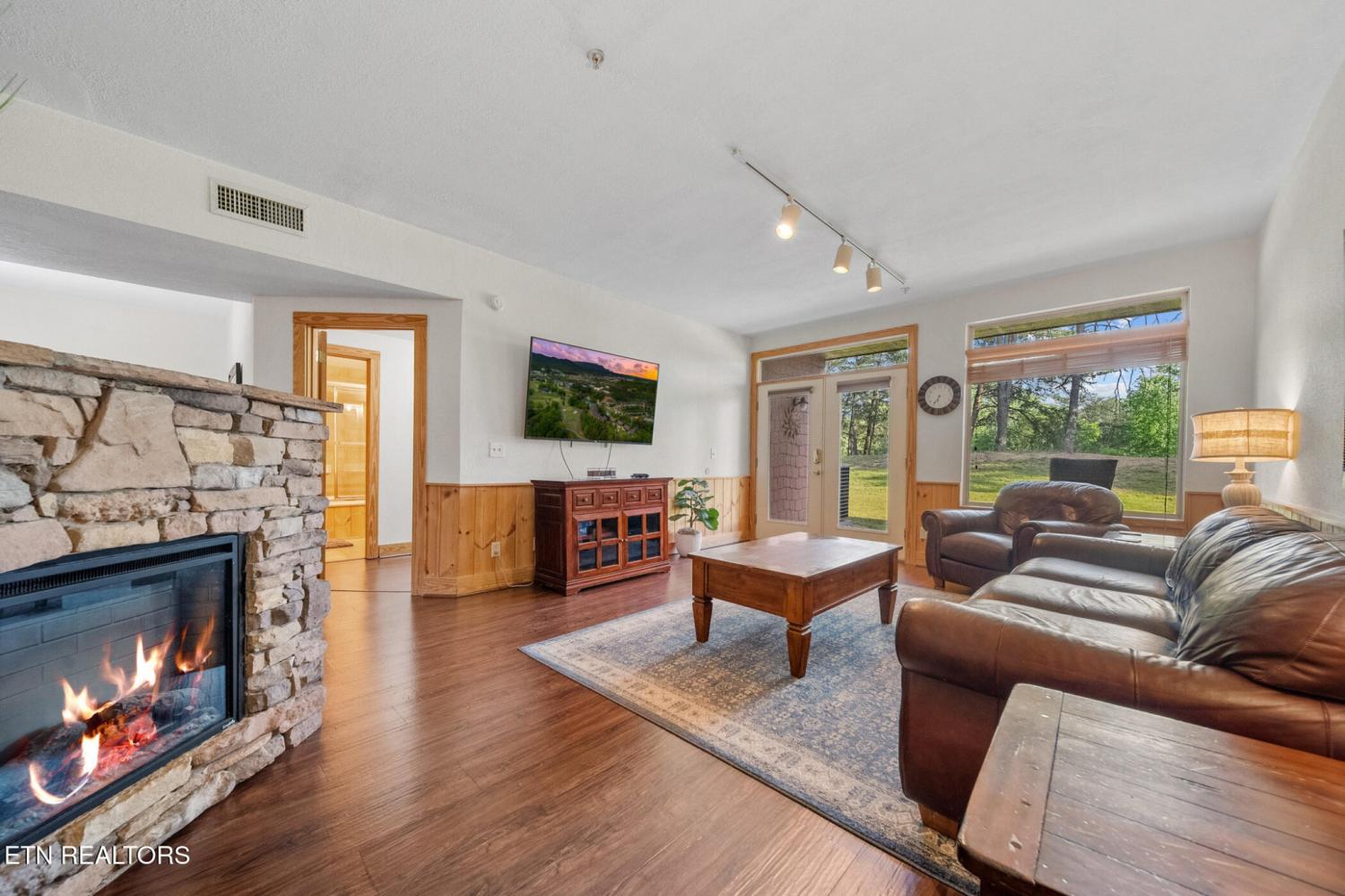 This condo checks all the boxes! Only 3 miles to Dollywood! Welcome to Serenity at Pigeon Forge! This beautiful condo puts you right in the heart of everything Pigeon Forge, and it makes you money. Here is an amazing opportunity to get your 2-bedroom, 2-bathroom ground level condo in the Golf View Resort in Pigeon Forge. This beautifully maintained unit is currently used as a successful short-term rental, but is perfect for your primary residence or 2nd home too. You will love the open concept living area. The living room and dining area share a beautiful double-sided stack stone electric fireplace. The kitchen has lots of cabinets and granite counter space. The living room leads out to the covered back porch where you can relax and enjoy both wooded space and partial views of the mountains. The HVAC system is 2 years old, and the appliances approximately 3 years old. This unit comes fully furnished and ready to go. The Golf View Resort amenities include a pool, hot tub, barbecue area, and clubhouse making it the perfect place for your guests, or to call home. Hoa fees also include water, sewer, internet, cable TV, and trash. Located adjacent to the Gatlinburg Golf course, close to Dollywood, the Pigeon Forge Parkway, and so much more! Don't miss the incredible opportunity. Call to schedule your private tour today. *Drone photography used in some photos.