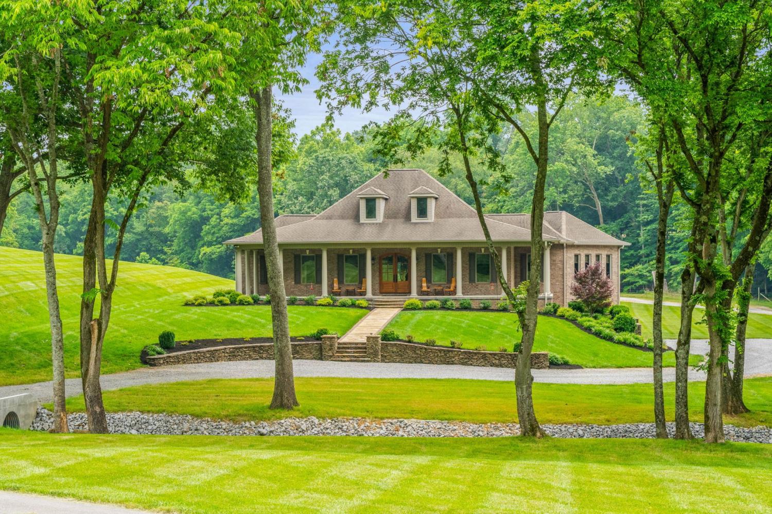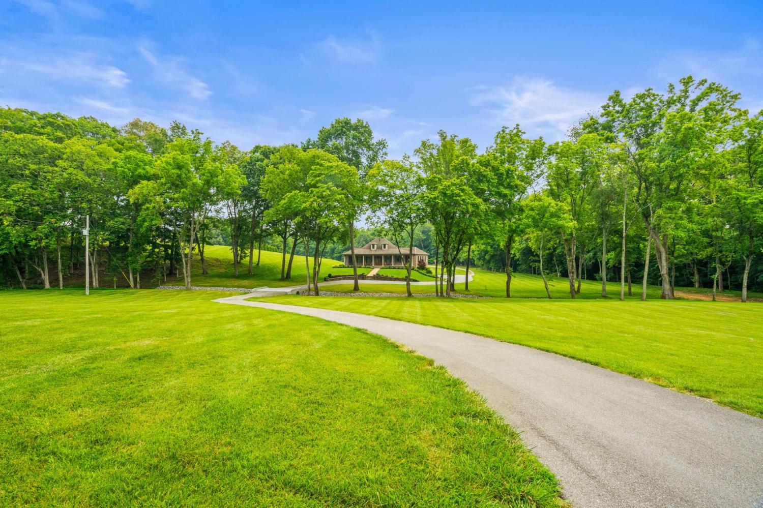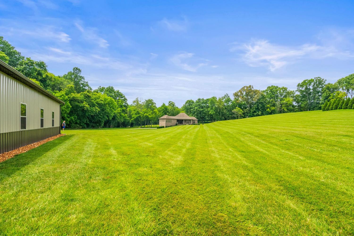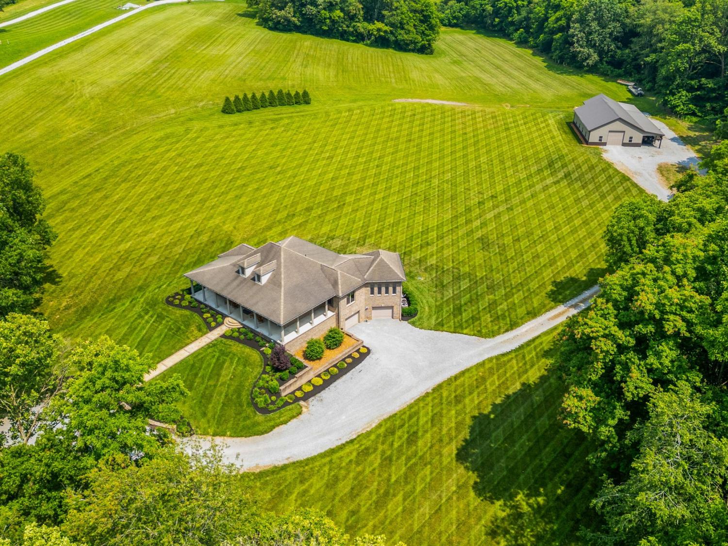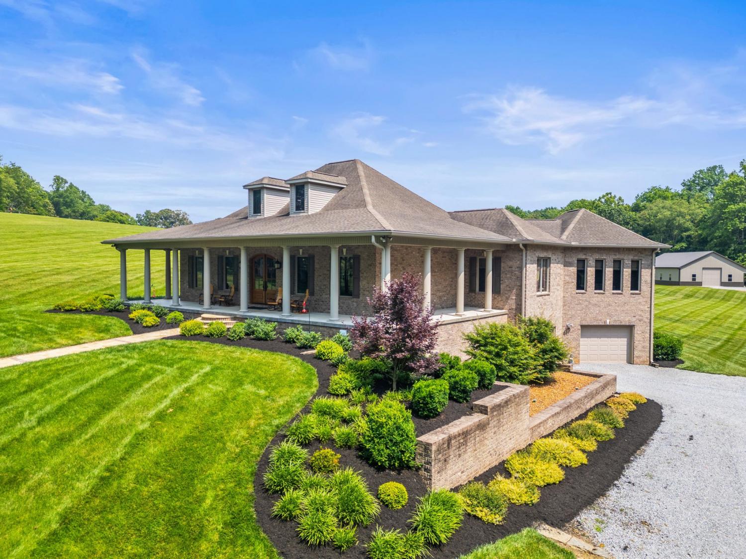 This beautiful custom home with timeless design has 12 acres of manicured privacy. The stunning all-brick estate with wrap around porch, huge columns and a set of solid mahogany front doors lead into an open concept that is warm and inviting. Home features a 9x18 foyer with barrel ceiling, chef's kitchen w/ss appliances, DCS gas range and double ovens, the solid maple cabinetry, granite counter tops w/stone back splash, Bosch dishwasher, walk-in pantry w/extra shelving for storage, great rm with stone fireplace, surround sound and custom built-in cabinets and lighted shelving, crown molding throughout tells you this house was all custom built. Heirloom qualities in this home are on full display, ceilings that are 10, 12 and 15 ft, 6 ft casement windows for natural light, custom black-out shades when needed, handmade white oak flooring, porcelain tile and natural stone tile, french doors leading out to patio from primary and living rms, landscaping 2 yrs old with irrigation. Basement with 10 ft ceilings, a flex room thats 17x27 (3rd bedroom) 2 separate garage doors with workshop between. All attached shelving and cabinets will remain. 56x90 bldg with 40x60 enclosed. This property could easily be converted into a mini farm and the building into a stable. LOCATION, LOCATION, LOCATION. This property is minutes off I-24W, 30 min. from Nashville and 20 min. from Clarksville.