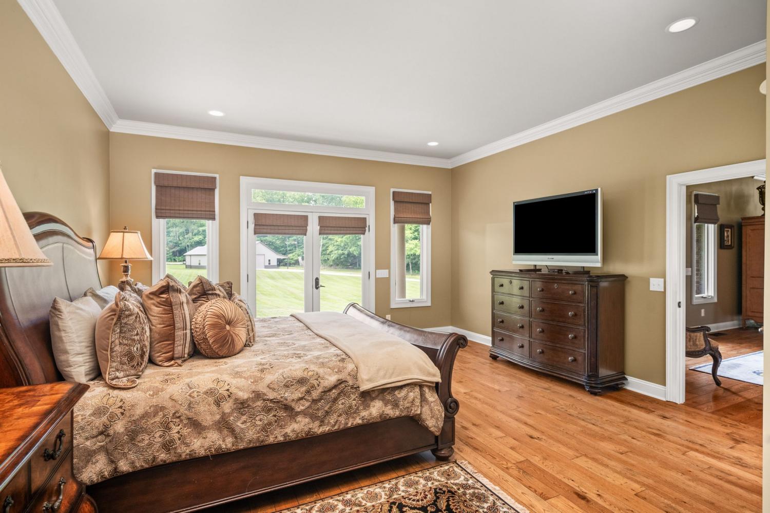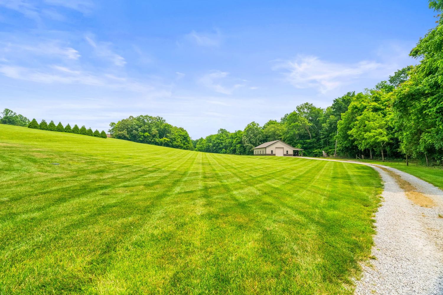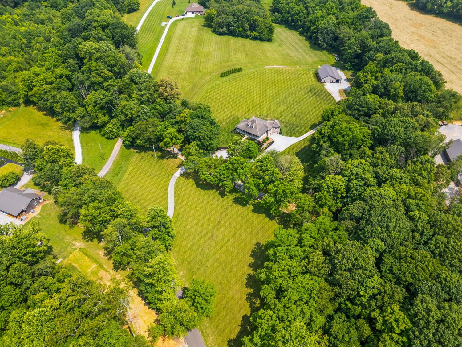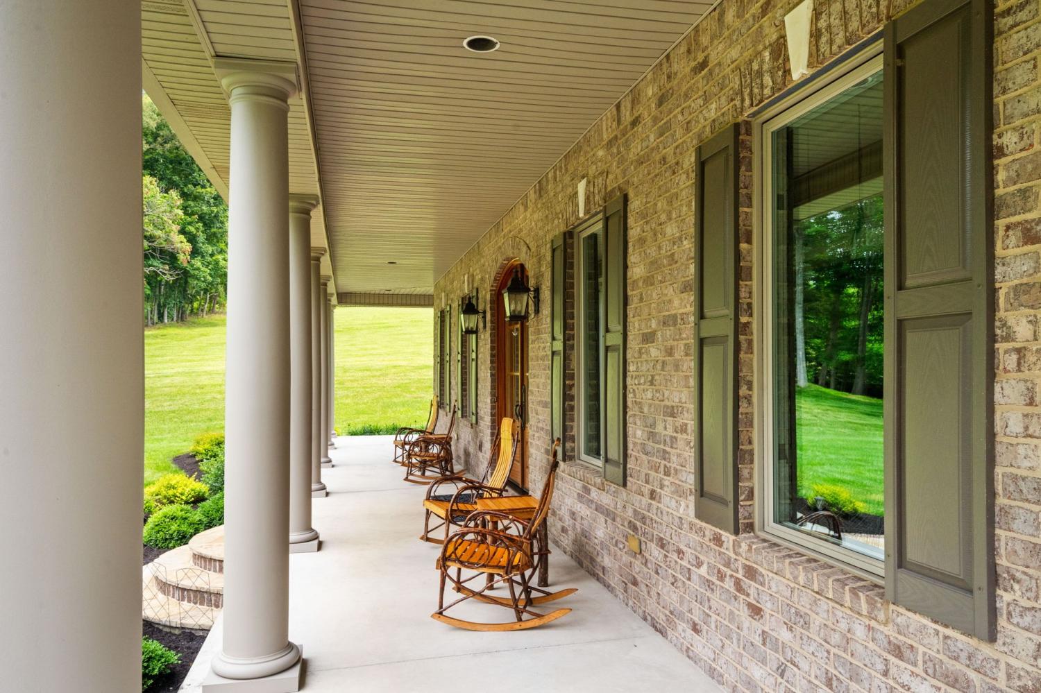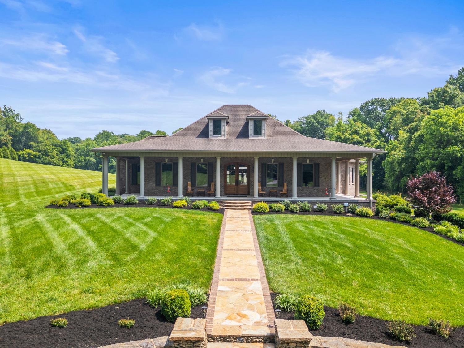 This beautiful custom home with timeless design has 12 acres of manicured privacy. The stunning all-brick estate with wrap around porch, huge columns and a set of solid mahogany front doors lead into an open concept that is warm and inviting. Home features a 9x18 foyer with barrel ceiling, chef's kitchen w/ss appliances, DCS gas range and double ovens, the solid maple cabinetry, granite counter tops w/stone back splash, Bosch dishwasher, walk-in pantry w/extra shelving for storage, great rm with stone fireplace, surround sound and custom built-in cabinets and lighted shelving, crown molding throughout tells you this house was all custom built. Heirloom qualities in this home are on full display, ceilings that are 10, 12 and 15 ft, 6 ft casement windows for natural light, custom black-out shades when needed, handmade white oak flooring, porcelain tile and natural stone tile, french doors leading out to patio from primary and living rms, landscaping 2 yrs old with irrigation. Basement with 10 ft ceilings, a flex room thats 17x27 (3rd bedroom) 2 separate garage doors with workshop between. All attached shelving and cabinets will remain. 56x90 bldg with 40x60 enclosed. This property could easily be converted into a mini farm and the building into a stable. LOCATION, LOCATION, LOCATION. This property is minutes off I-24W, 30 min. from Nashville and 20 min. from Clarksville.