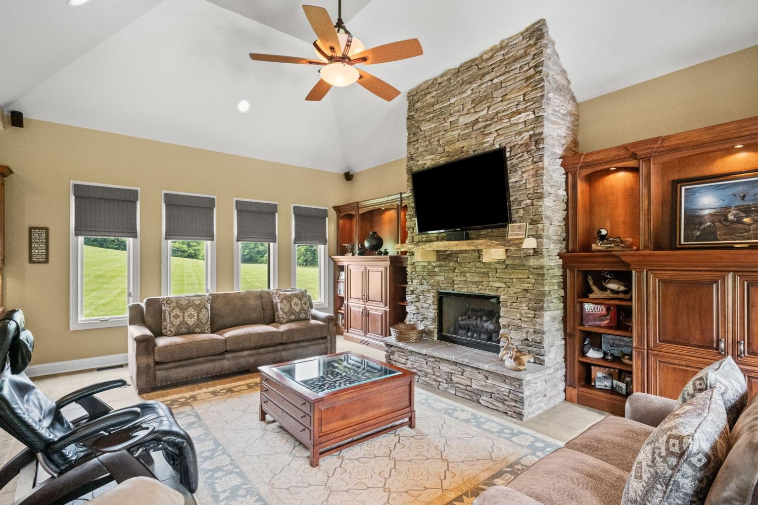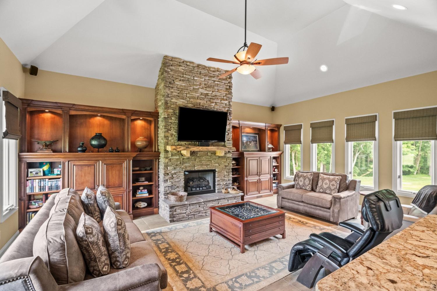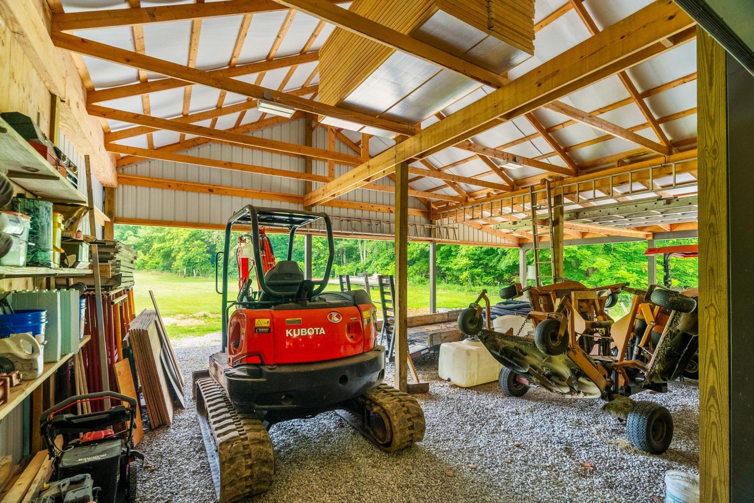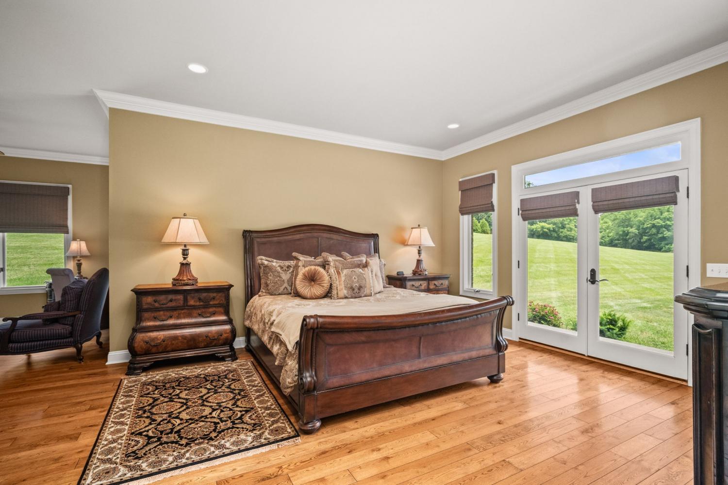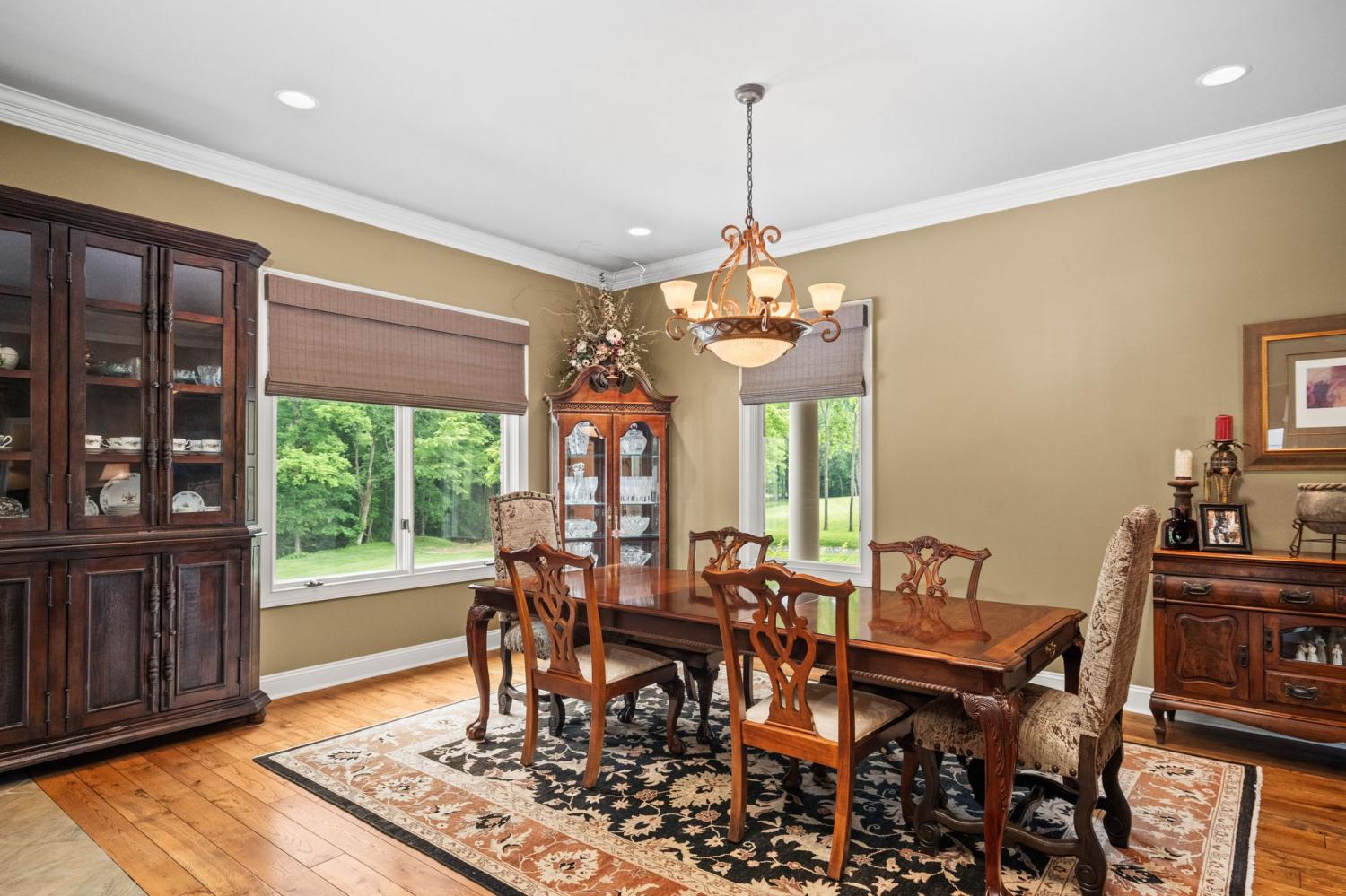 This beautiful custom home with timeless design has 12 acres of manicured privacy. The stunning all-brick estate with wrap around porch, huge columns and a set of solid mahogany front doors lead into an open concept that is warm and inviting. Home features a 9x18 foyer with barrel ceiling, chef's kitchen w/ss appliances, DCS gas range and double ovens, the solid maple cabinetry, granite counter tops w/stone back splash, Bosch dishwasher, walk-in pantry w/extra shelving for storage, great rm with stone fireplace, surround sound and custom built-in cabinets and lighted shelving, crown molding throughout tells you this house was all custom built. Heirloom qualities in this home are on full display, ceilings that are 10, 12 and 15 ft, 6 ft casement windows for natural light, custom black-out shades when needed, handmade white oak flooring, porcelain tile and natural stone tile, french doors leading out to patio from primary and living rms, landscaping 2 yrs old with irrigation. Basement with 10 ft ceilings, a flex room thats 17x27 (3rd bedroom) 2 separate garage doors with workshop between. All attached shelving and cabinets will remain. 56x90 bldg with 40x60 enclosed. This property could easily be converted into a mini farm and the building into a stable. LOCATION, LOCATION, LOCATION. This property is minutes off I-24W, 30 min. from Nashville and 20 min. from Clarksville.