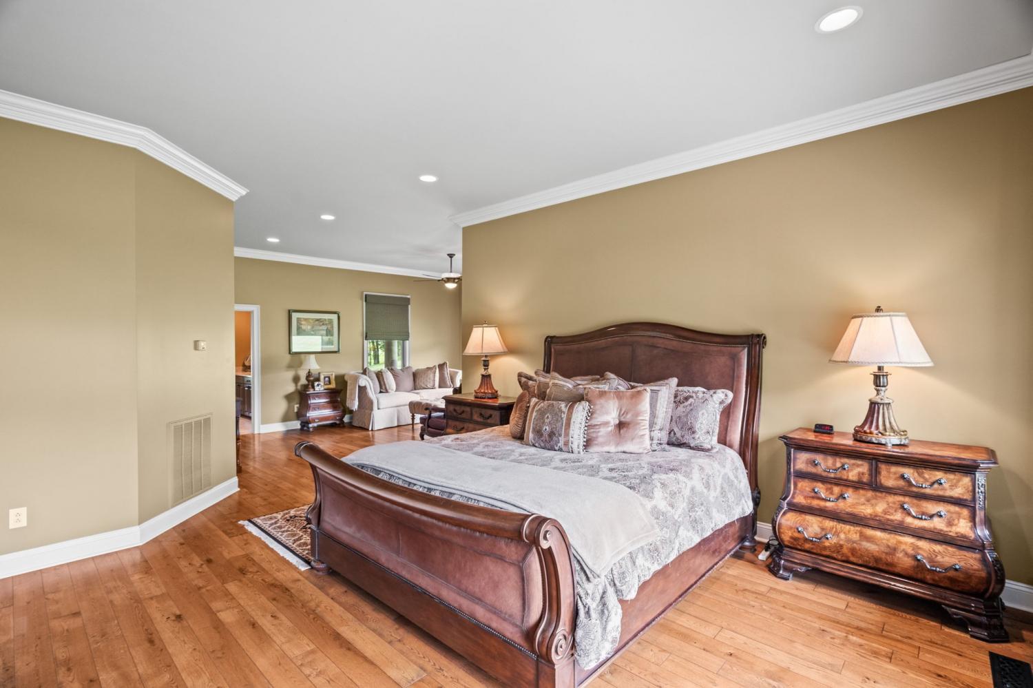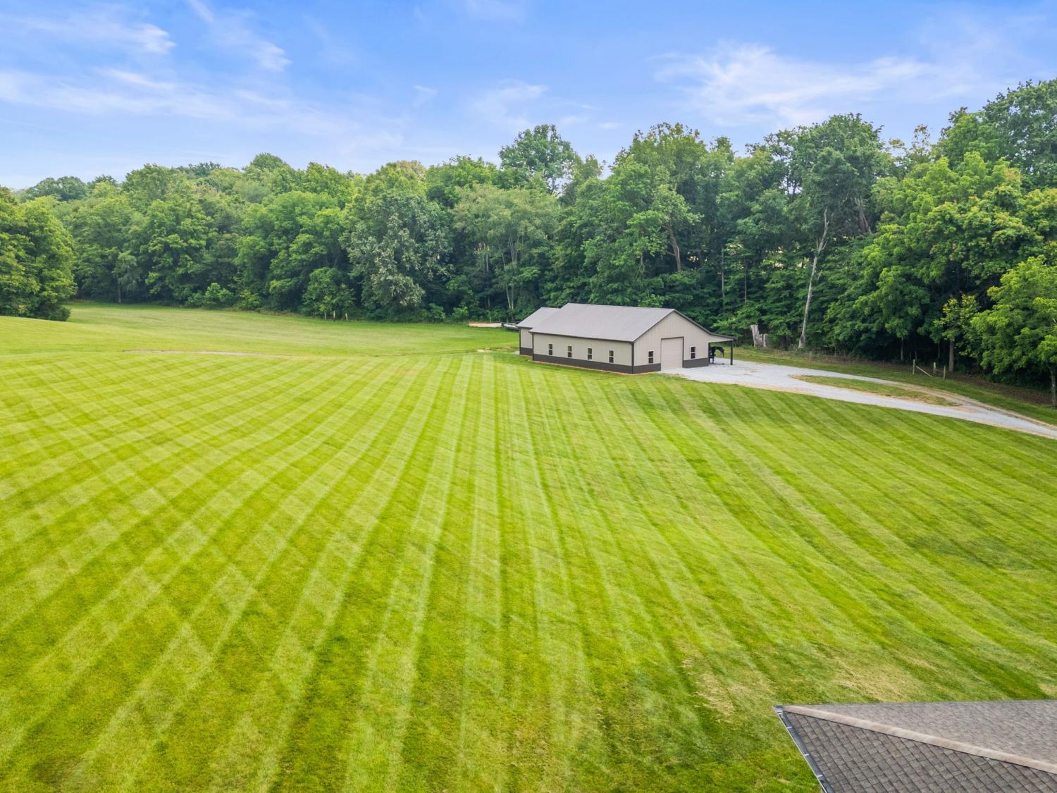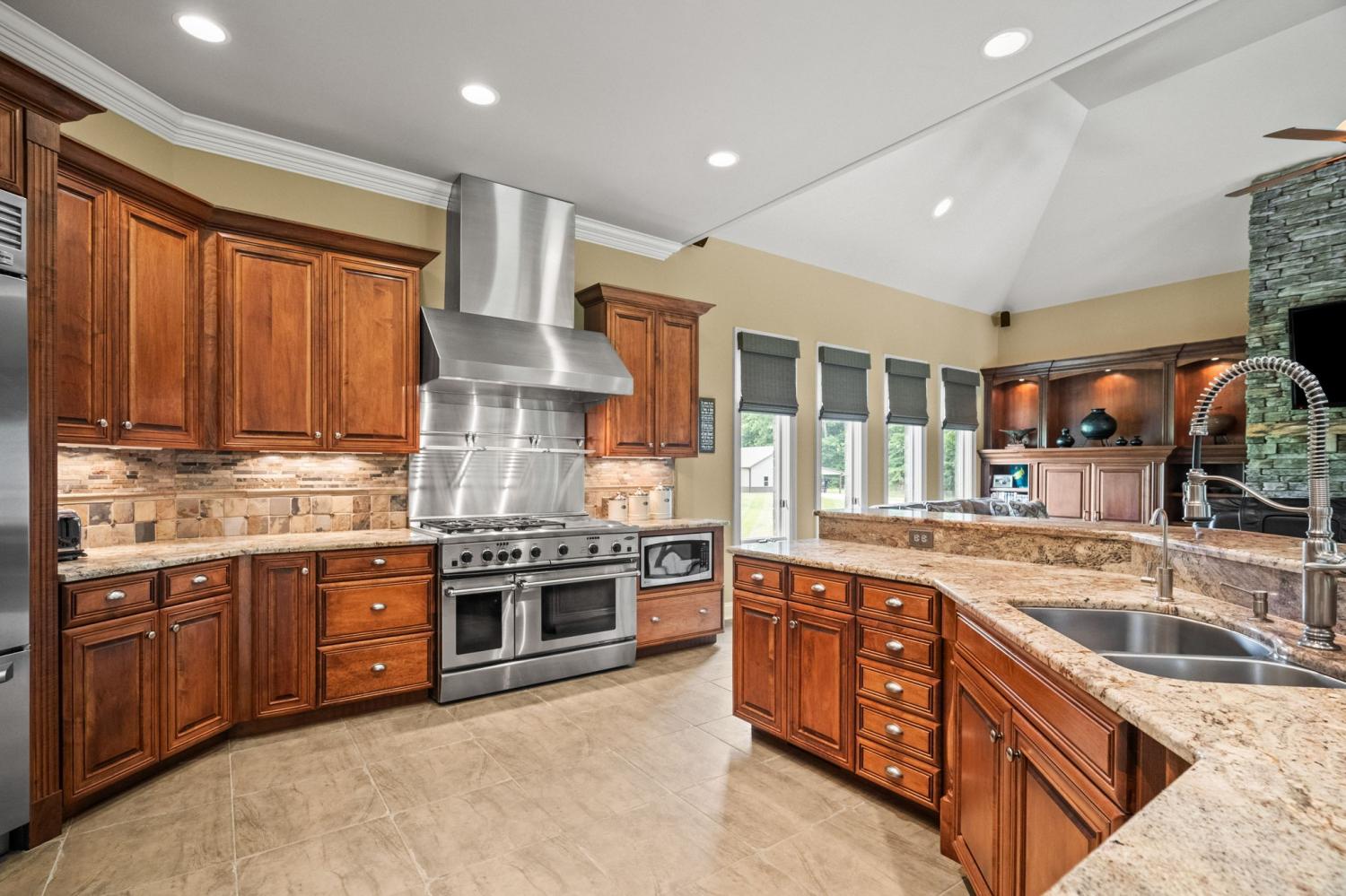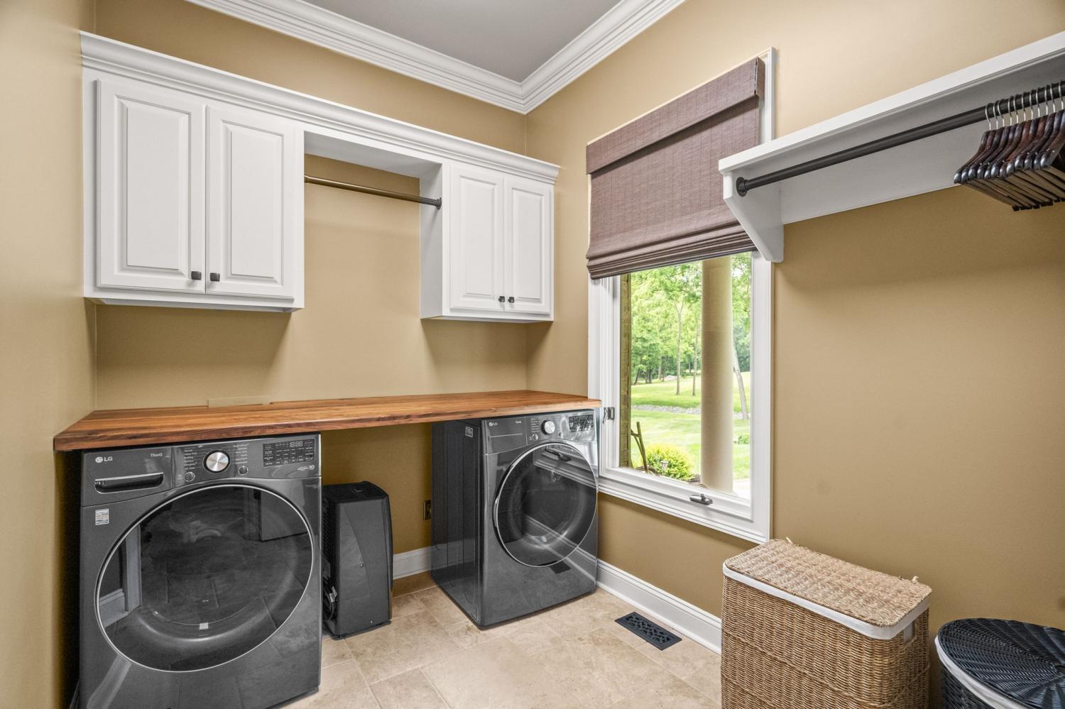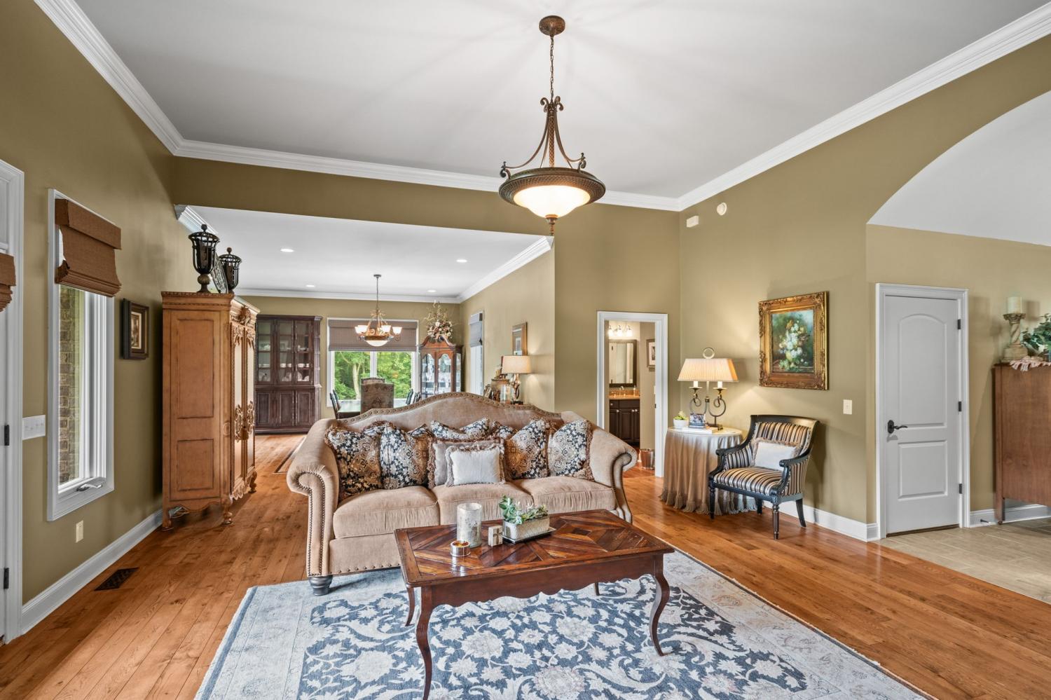 This beautiful custom home with timeless design has 12 acres of manicured privacy. The stunning all-brick estate with wrap around porch, huge columns and a set of solid mahogany front doors lead into an open concept that is warm and inviting. Home features a 9x18 foyer with barrel ceiling, chef's kitchen w/ss appliances, DCS gas range and double ovens, the solid maple cabinetry, granite counter tops w/stone back splash, Bosch dishwasher, walk-in pantry w/extra shelving for storage, great rm with stone fireplace, surround sound and custom built-in cabinets and lighted shelving, crown molding throughout tells you this house was all custom built. Heirloom qualities in this home are on full display, ceilings that are 10, 12 and 15 ft, 6 ft casement windows for natural light, custom black-out shades when needed, handmade white oak flooring, porcelain tile and natural stone tile, french doors leading out to patio from primary and living rms, landscaping 2 yrs old with irrigation. Basement with 10 ft ceilings, a flex room thats 17x27 (3rd bedroom) 2 separate garage doors with workshop between. All attached shelving and cabinets will remain. 56x90 bldg with 40x60 enclosed. This property could easily be converted into a mini farm and the building into a stable. LOCATION, LOCATION, LOCATION. This property is minutes off I-24W, 30 min. from Nashville and 20 min. from Clarksville.