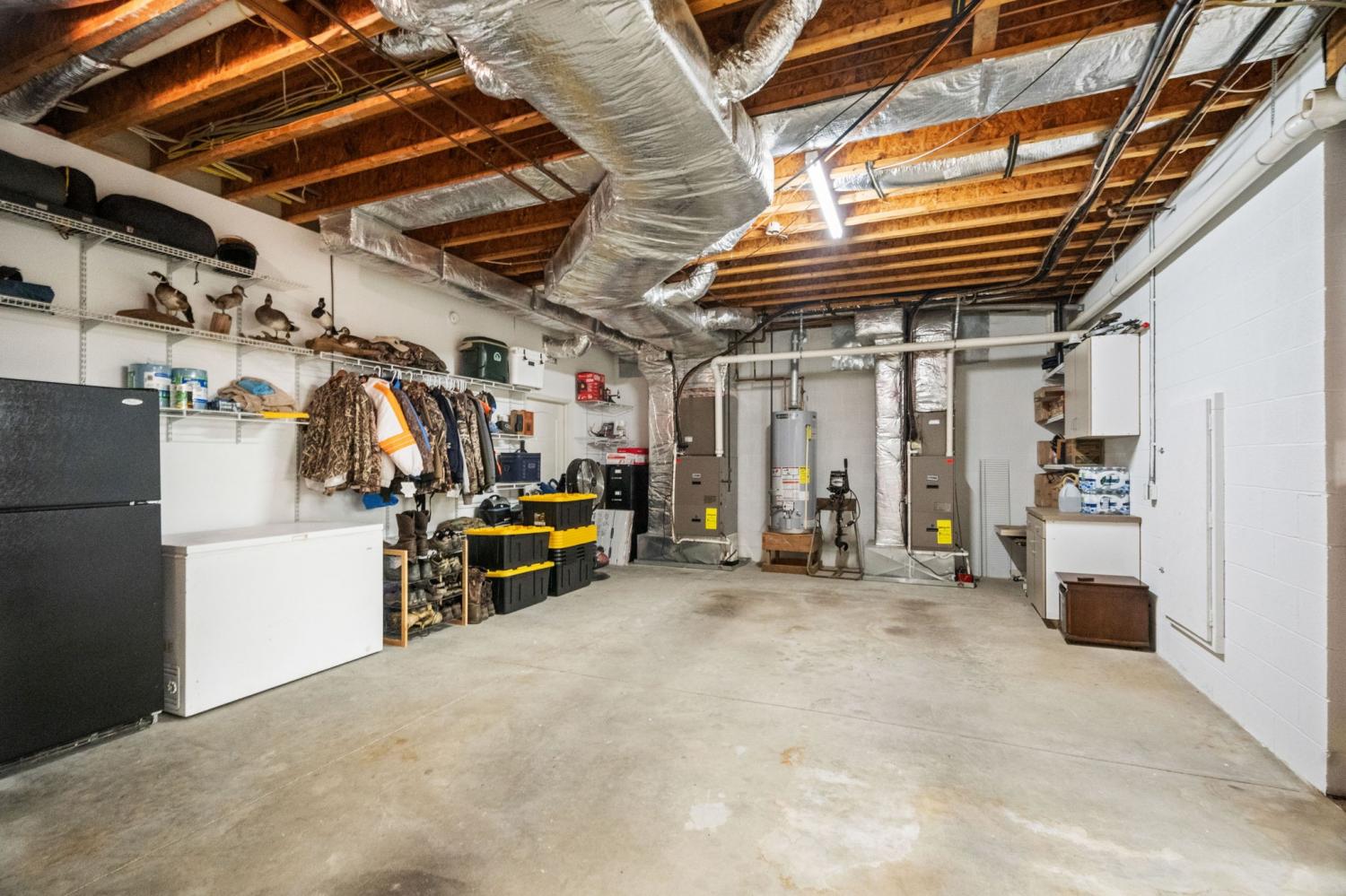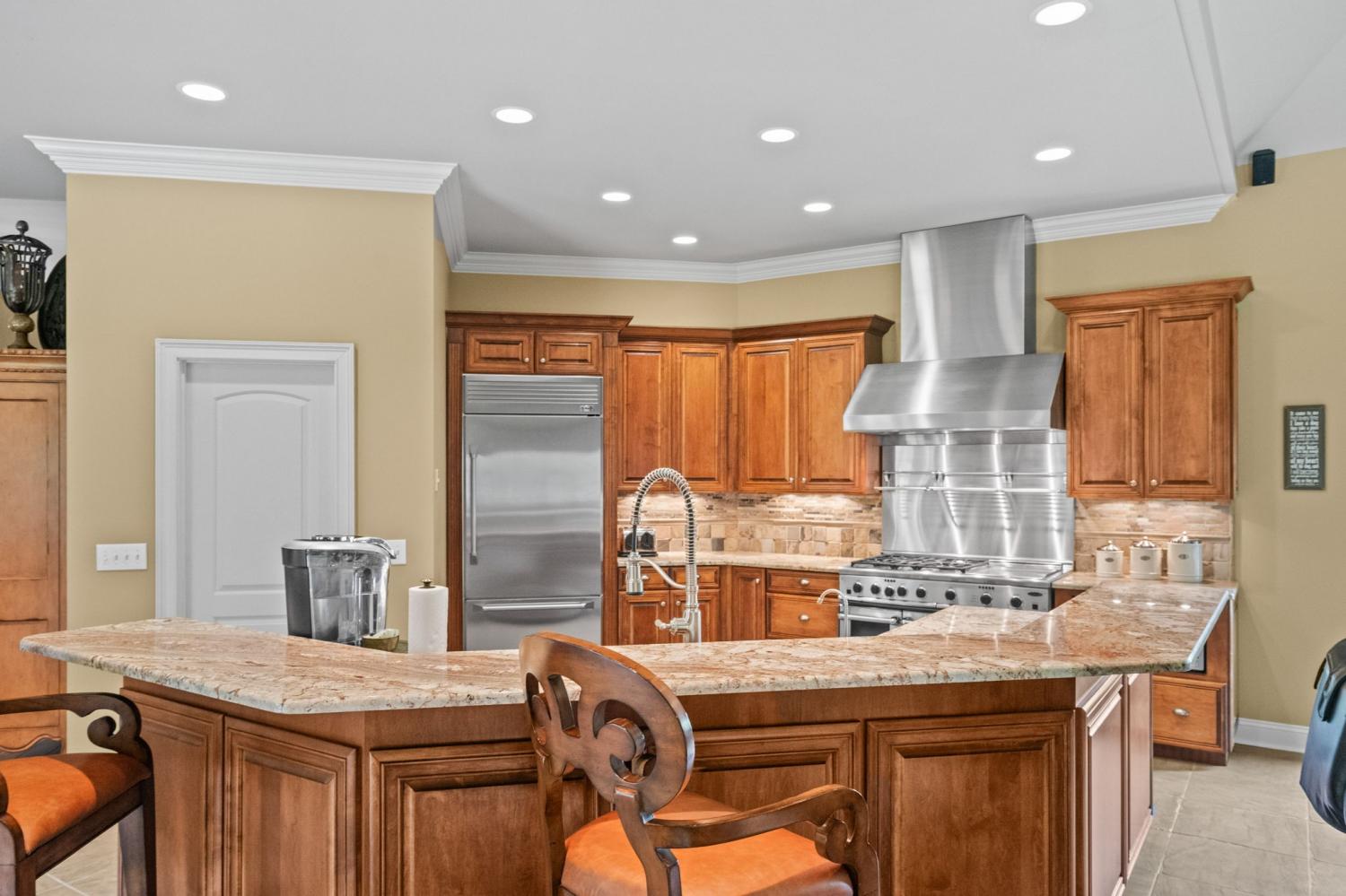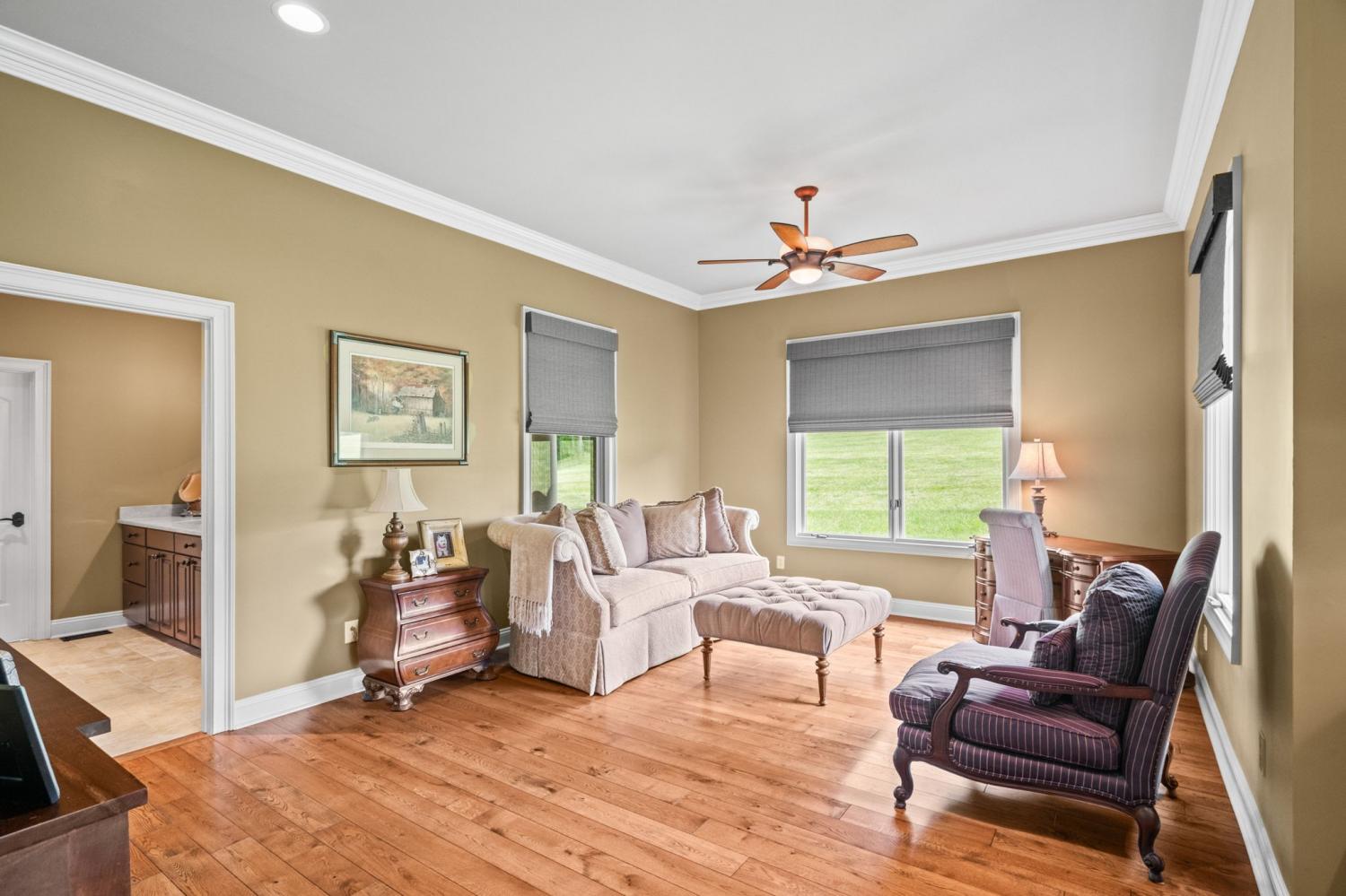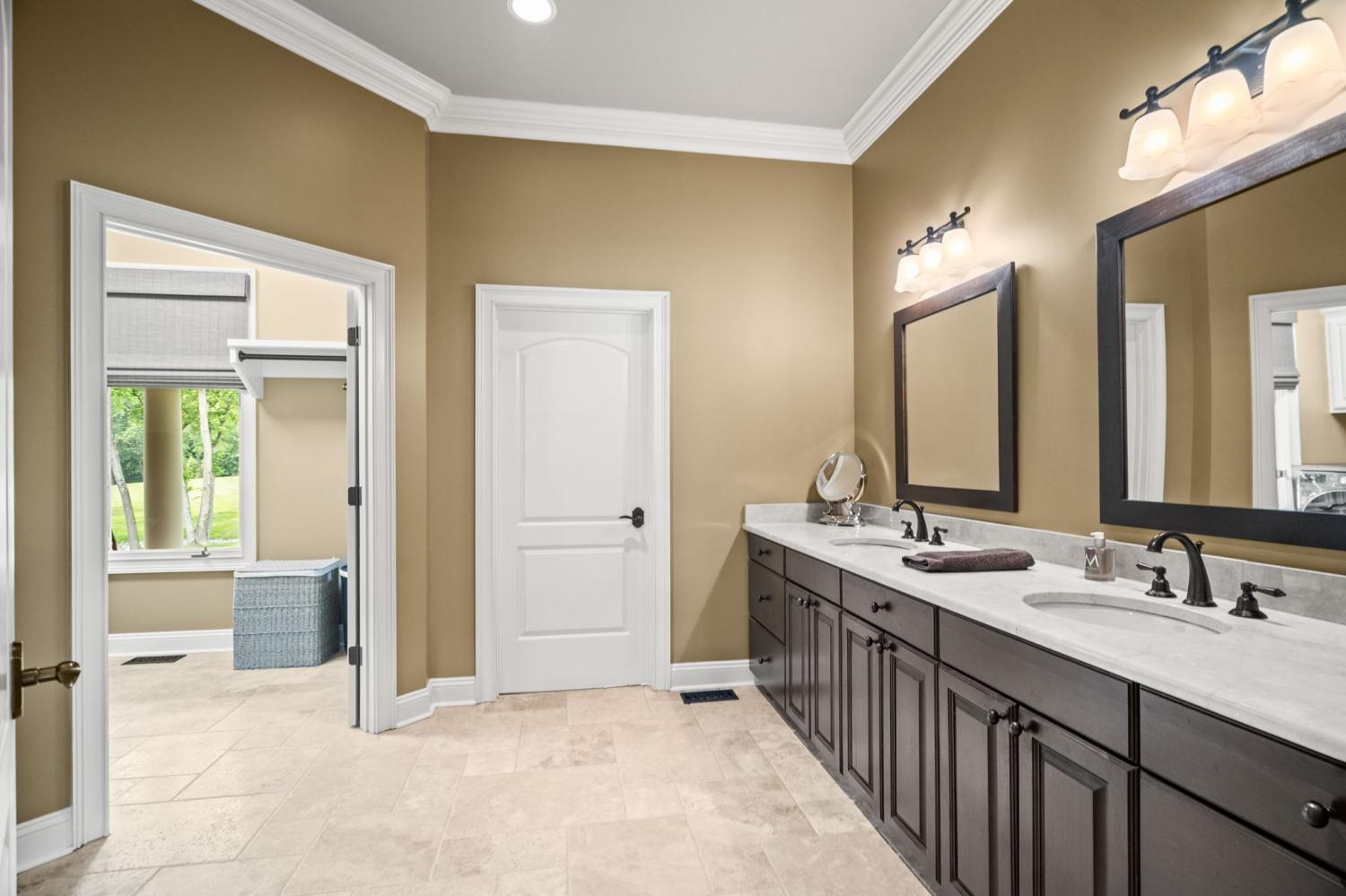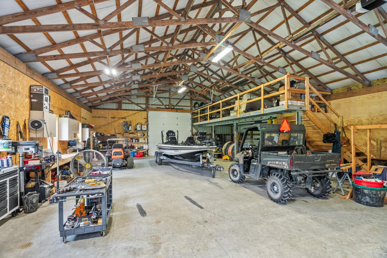 This beautiful custom home with timeless design has 12 acres of manicured privacy. The stunning all-brick estate with wrap around porch, huge columns and a set of solid mahogany front doors lead into an open concept that is warm and inviting. Home features a 9x18 foyer with barrel ceiling, chef's kitchen w/ss appliances, DCS gas range and double ovens, the solid maple cabinetry, granite counter tops w/stone back splash, Bosch dishwasher, walk-in pantry w/extra shelving for storage, great rm with stone fireplace, surround sound and custom built-in cabinets and lighted shelving, crown molding throughout tells you this house was all custom built. Heirloom qualities in this home are on full display, ceilings that are 10, 12 and 15 ft, 6 ft casement windows for natural light, custom black-out shades when needed, handmade white oak flooring, porcelain tile and natural stone tile, french doors leading out to patio from primary and living rms, landscaping 2 yrs old with irrigation. Basement with 10 ft ceilings, a flex room thats 17x27 (3rd bedroom) 2 separate garage doors with workshop between. All attached shelving and cabinets will remain. 56x90 bldg with 40x60 enclosed. This property could easily be converted into a mini farm and the building into a stable. LOCATION, LOCATION, LOCATION. This property is minutes off I-24W, 30 min. from Nashville and 20 min. from Clarksville.