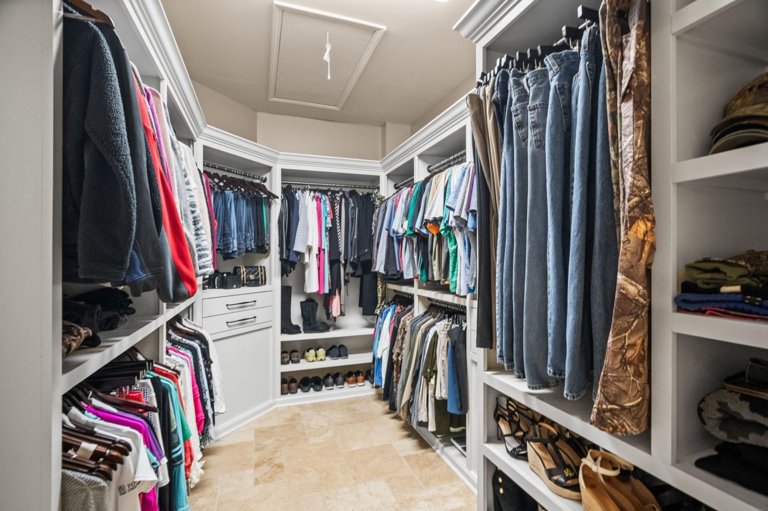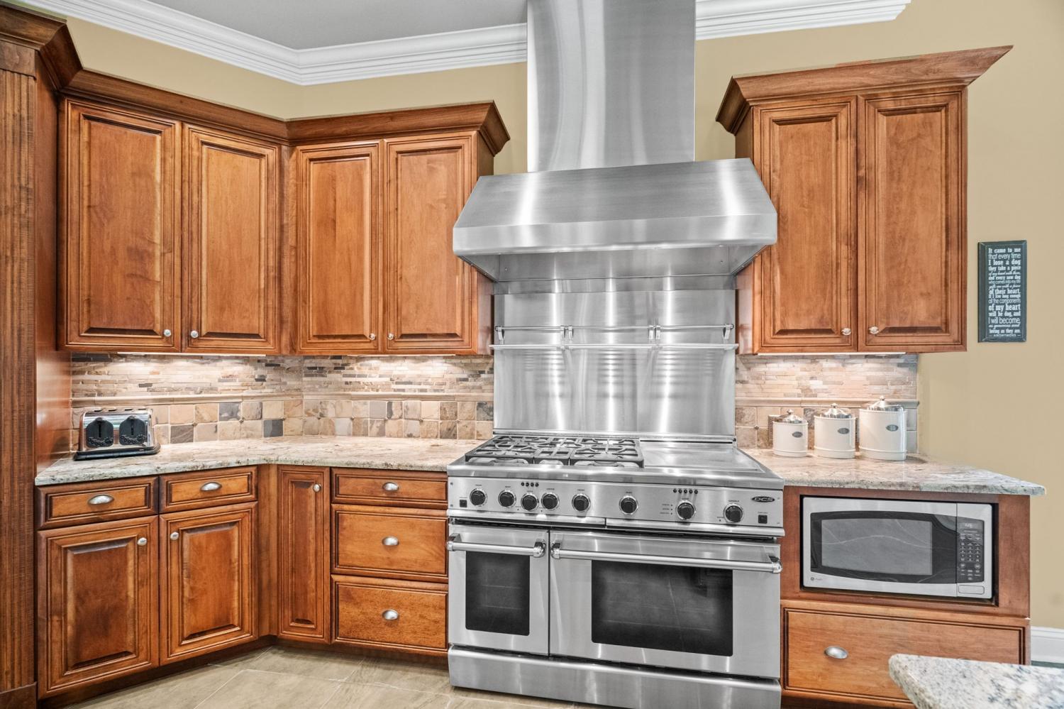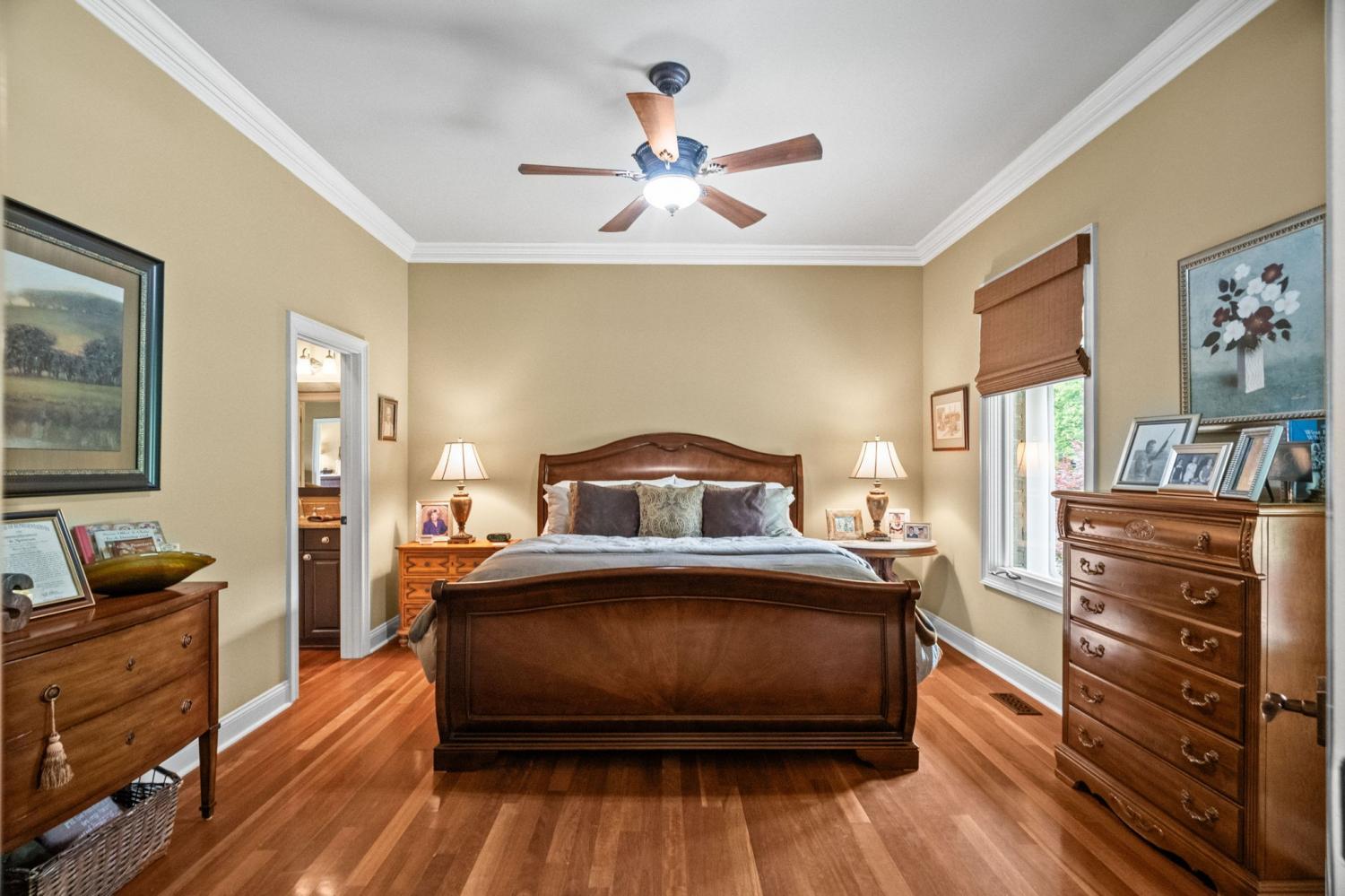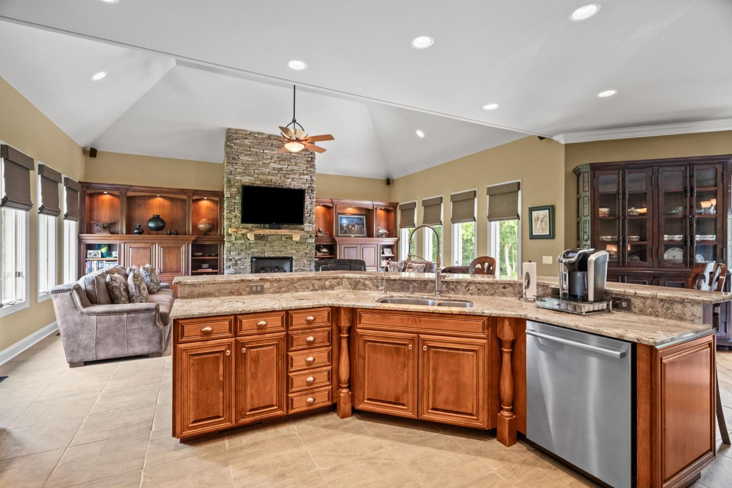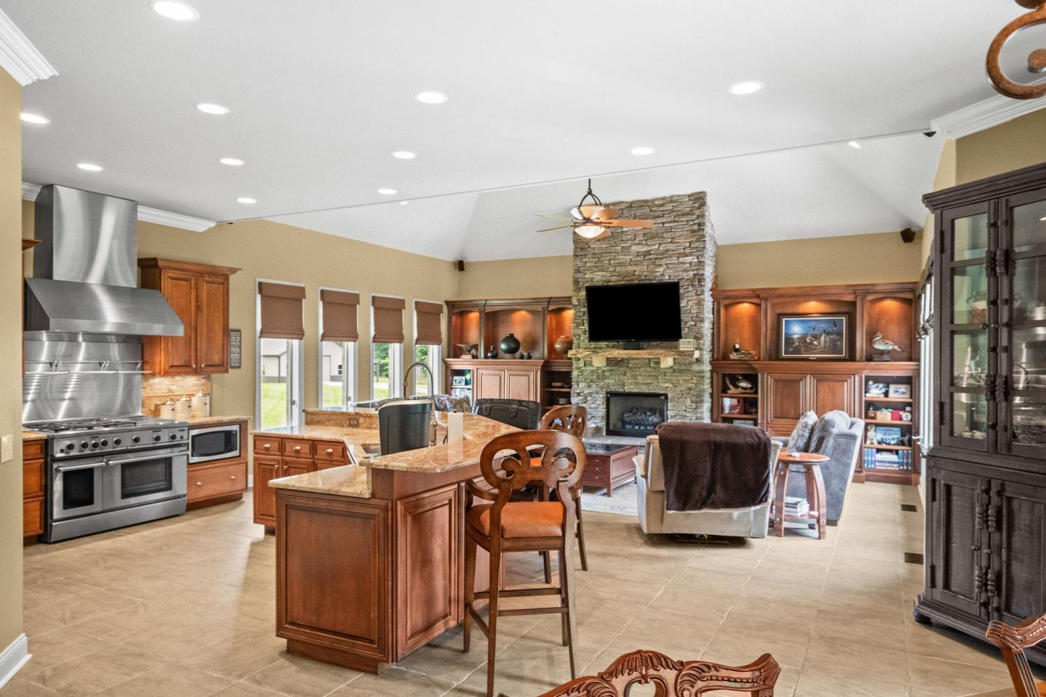 This beautiful custom home with timeless design has 12 acres of manicured privacy. The stunning all-brick estate with wrap around porch, huge columns and a set of solid mahogany front doors lead into an open concept that is warm and inviting. Home features a 9x18 foyer with barrel ceiling, chef's kitchen w/ss appliances, DCS gas range and double ovens, the solid maple cabinetry, granite counter tops w/stone back splash, Bosch dishwasher, walk-in pantry w/extra shelving for storage, great rm with stone fireplace, surround sound and custom built-in cabinets and lighted shelving, crown molding throughout tells you this house was all custom built. Heirloom qualities in this home are on full display, ceilings that are 10, 12 and 15 ft, 6 ft casement windows for natural light, custom black-out shades when needed, handmade white oak flooring, porcelain tile and natural stone tile, french doors leading out to patio from primary and living rms, landscaping 2 yrs old with irrigation. Basement with 10 ft ceilings, a flex room thats 17x27 (3rd bedroom) 2 separate garage doors with workshop between. All attached shelving and cabinets will remain. 56x90 bldg with 40x60 enclosed. This property could easily be converted into a mini farm and the building into a stable. LOCATION, LOCATION, LOCATION. This property is minutes off I-24W, 30 min. from Nashville and 20 min. from Clarksville.