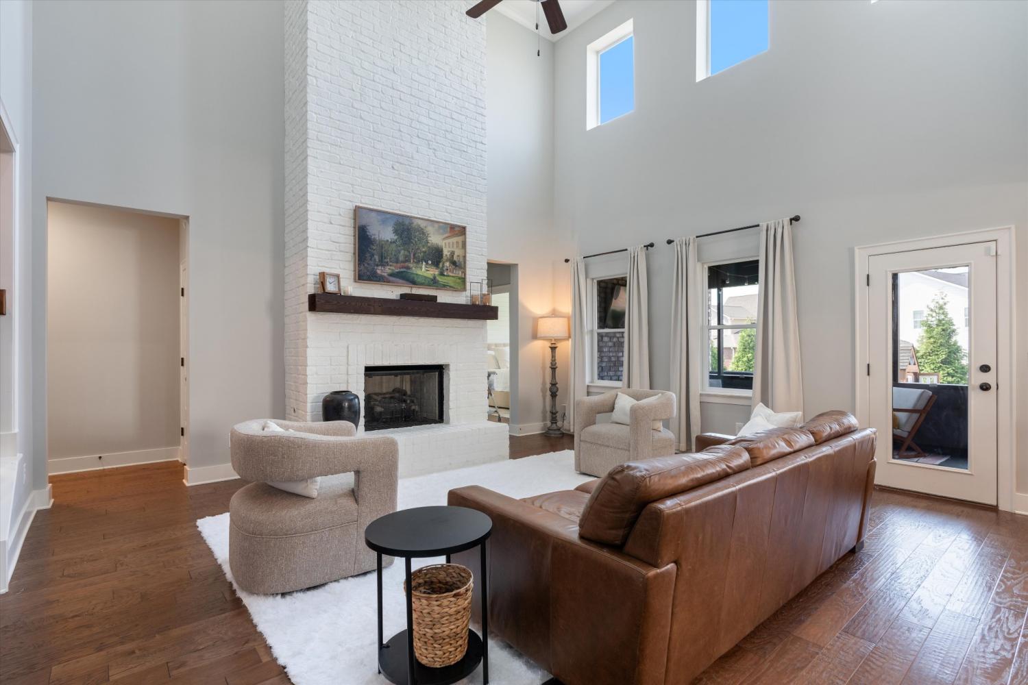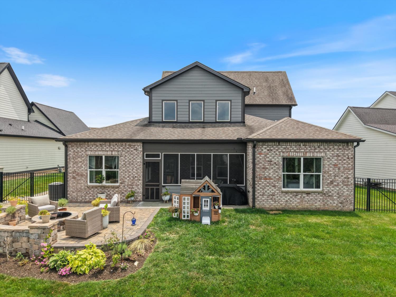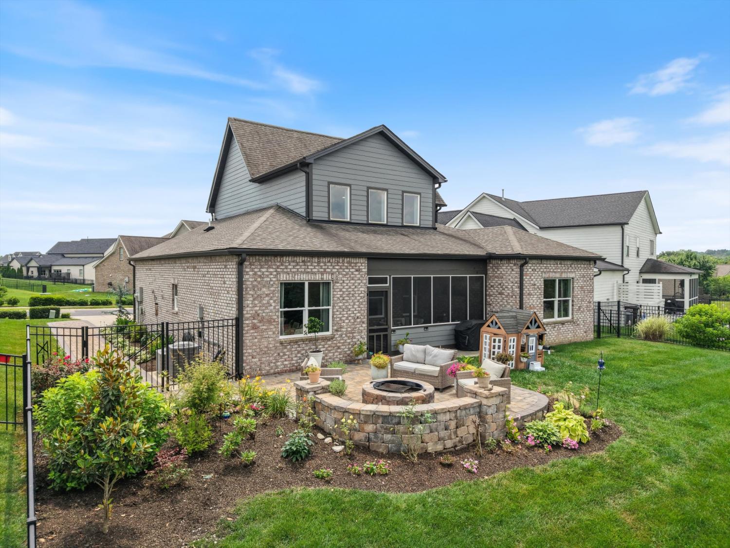 Stunning 4BR/3BA in Jackson Hills! This nearly 2,900 sq ft home blends timeless elegance with modern comfort in one of Mt. Juliet’s most desirable communities. Open-concept layout features soaring ceilings, hardwood floors, and a dramatic floor-to-ceiling brick fireplace. Gourmet kitchen boasts quartz countertops, SS appliances, custom backsplash, and a walk-in pantry. Flexible floorplan with 4 spacious bedrooms and designer upgrades throughout—shiplap, wainscoting, and accent walls add character and charm. Step outside to your private oasis with a screened porch, extended brick patio, built-in fire pit, and ambient lighting. Wraparound curb appeal and extra parking. Enjoy resort-style amenities: clubhouse, fitness center, pool, playgrounds, walking trails, and more. Located on a quiet, tree-lined street with underground utilities.