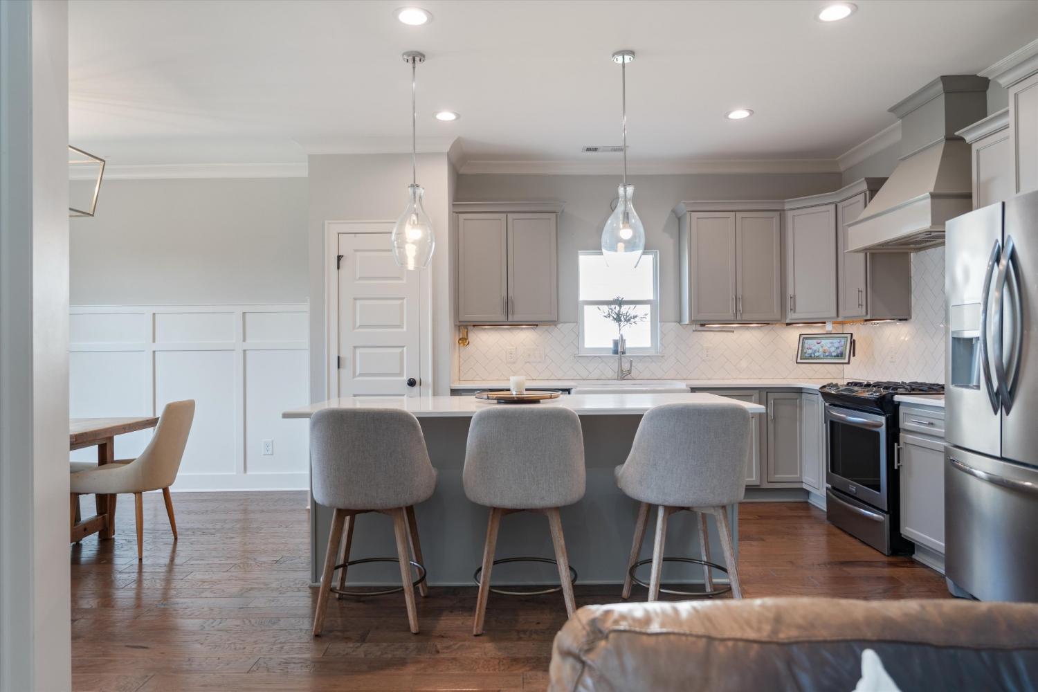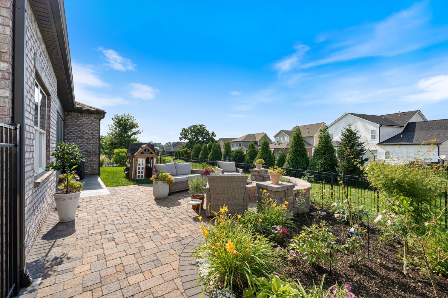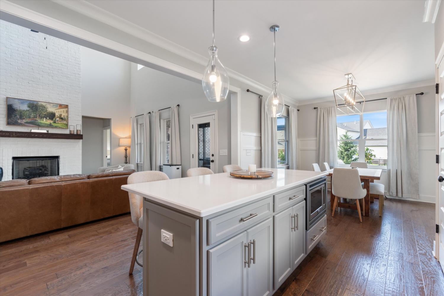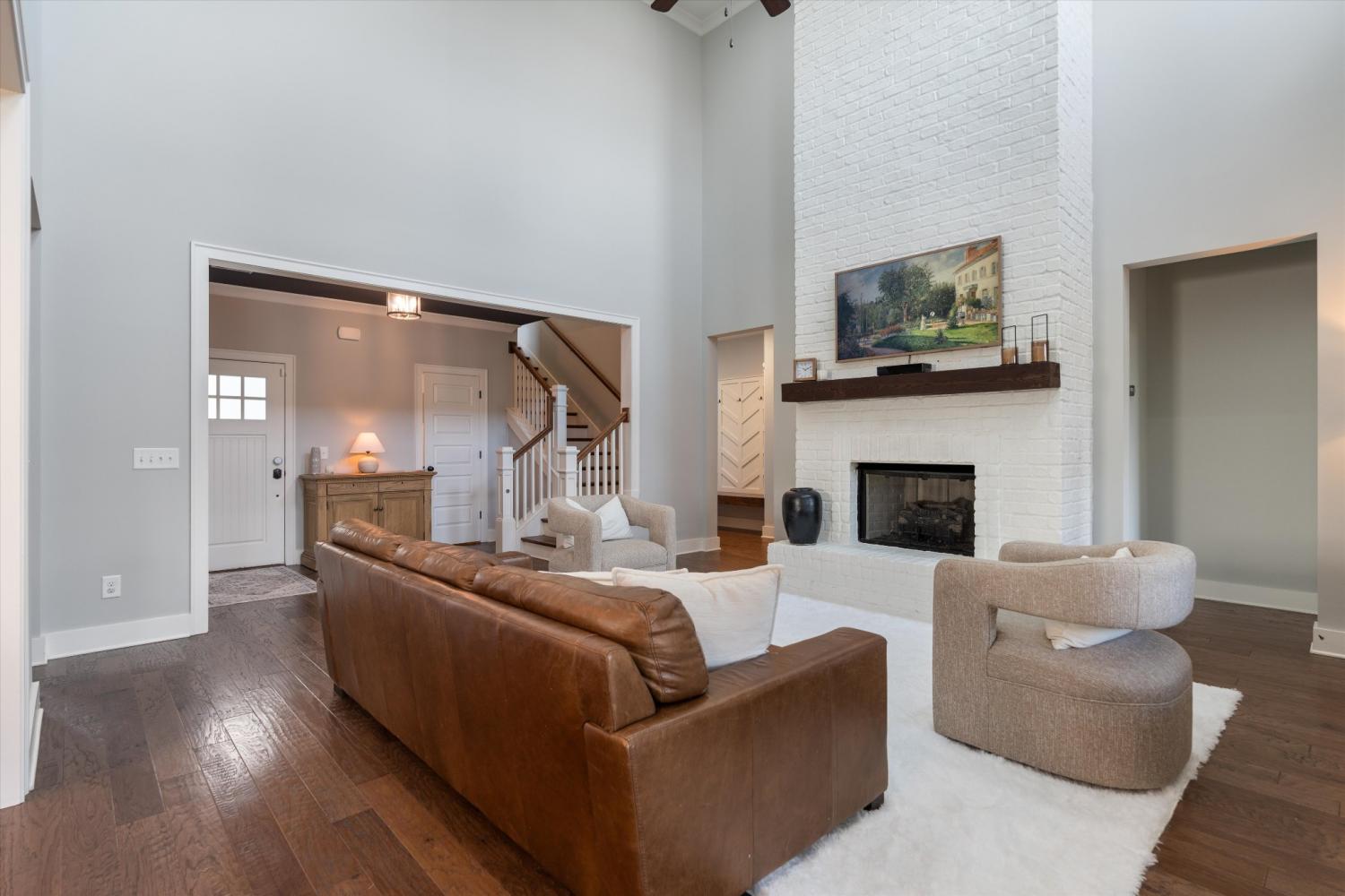 Stunning 4BR/3BA in Jackson Hills! This nearly 2,900 sq ft home blends timeless elegance with modern comfort in one of Mt. Juliet’s most desirable communities. Open-concept layout features soaring ceilings, hardwood floors, and a dramatic floor-to-ceiling brick fireplace. Gourmet kitchen boasts quartz countertops, SS appliances, custom backsplash, and a walk-in pantry. Flexible floorplan with 4 spacious bedrooms and designer upgrades throughout—shiplap, wainscoting, and accent walls add character and charm. Step outside to your private oasis with a screened porch, extended brick patio, built-in fire pit, and ambient lighting. Wraparound curb appeal and extra parking. Enjoy resort-style amenities: clubhouse, fitness center, pool, playgrounds, walking trails, and more. Located on a quiet, tree-lined street with underground utilities.