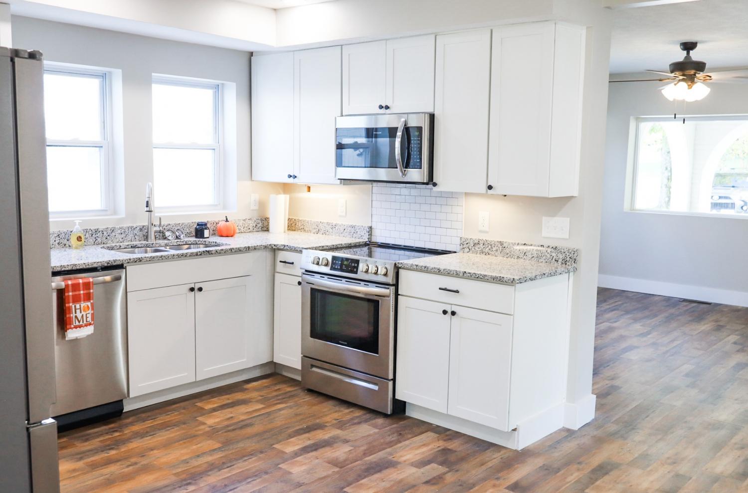 Talk about move-in ready. This vintage home has been completely remodeled and is ready for a new owner. Built in1946 it still has some of the charm of the older homes and the updates of a brand new home. There are 2 bedrooms on the main level with a large living room, kitchen/dining area, extra large pantry and storage room that could be an office or hobby room. Downstairs is an extra large utility room that leads to the 1 car garage. The upstairs has a really large bedroom and another full bath. The covered front porch has the archways that give it that curb appeal. The lot is level with a deck on the back. The driveway is concrete and the outside is painted brick. This is a must see home! Call today for an appointment to view.