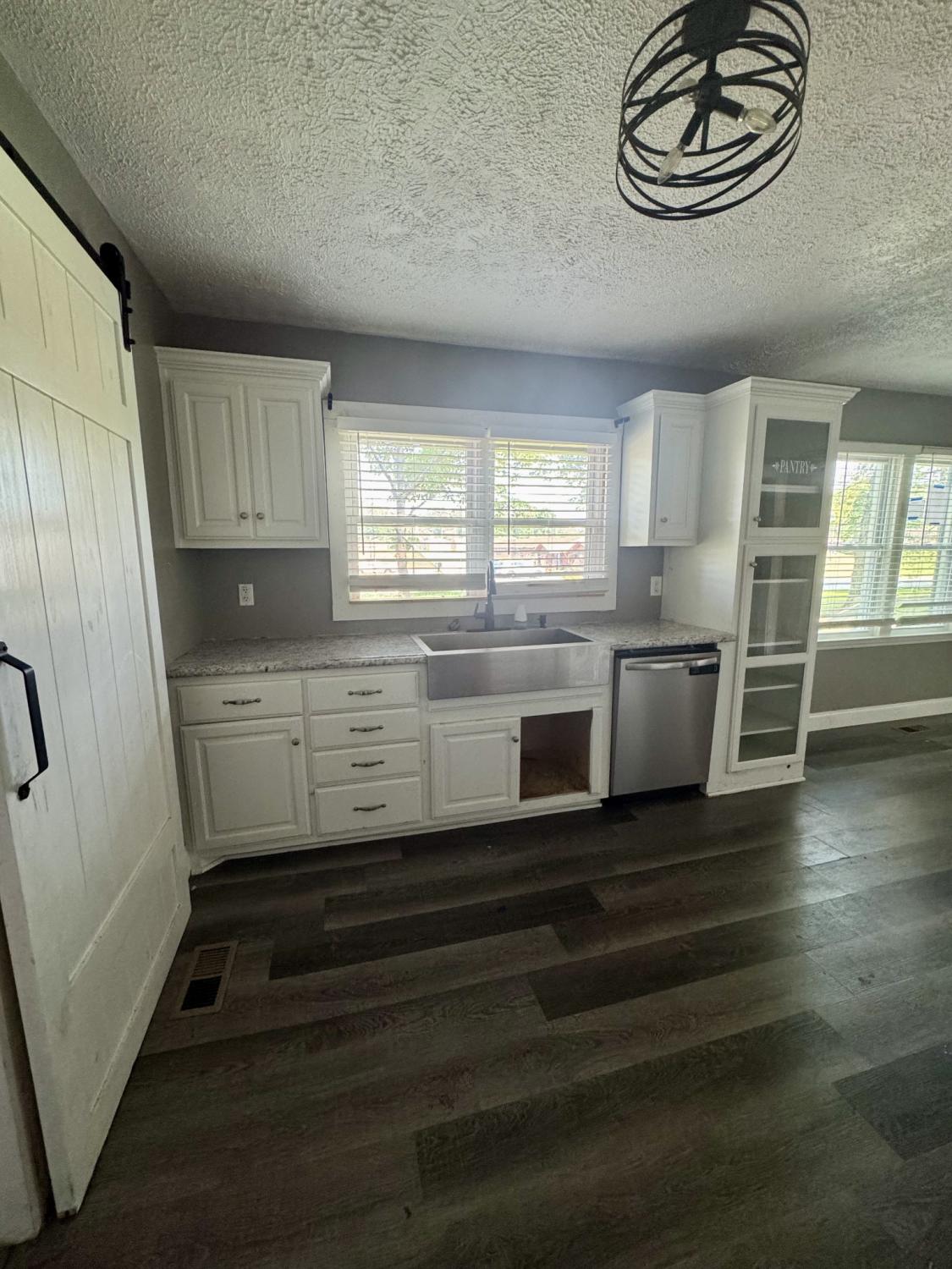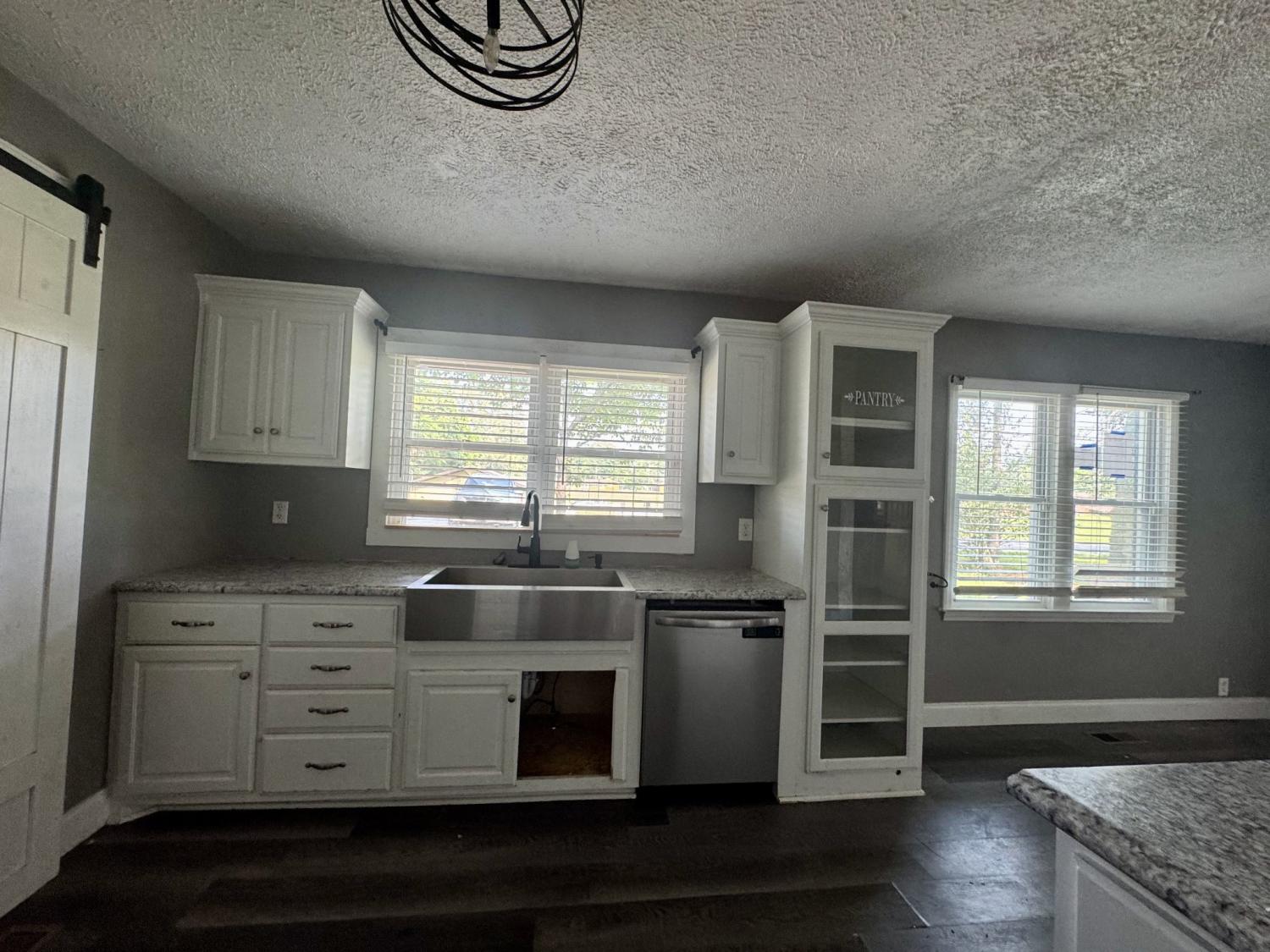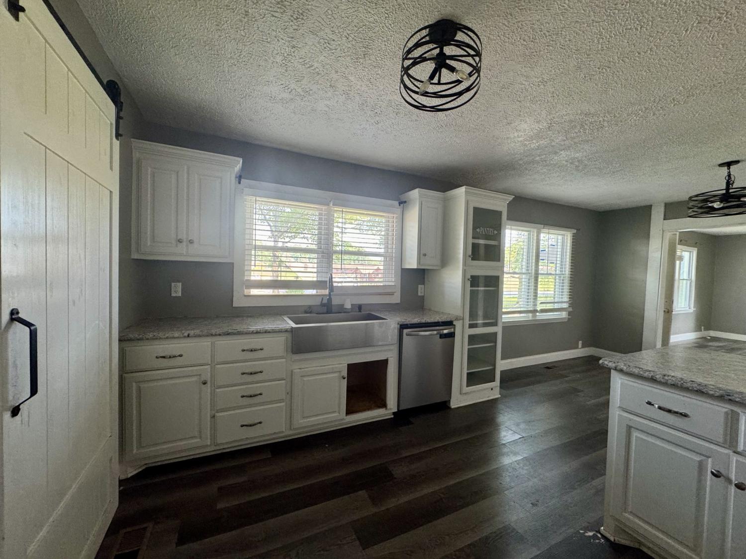 3 bedroom and 2 baths priced to sell. This home needs some TLC but comes with custom kitchen cabinets and dishwasher. LVP gray flooring, carpet in bedrooms, and all new lighting. Primary bedroom and primary bath has modern barn door concept. Newer hot water heater, newer windows, and a concrete drive. This lot has a large backyard with shade trees with room for outdoor enjoyment.