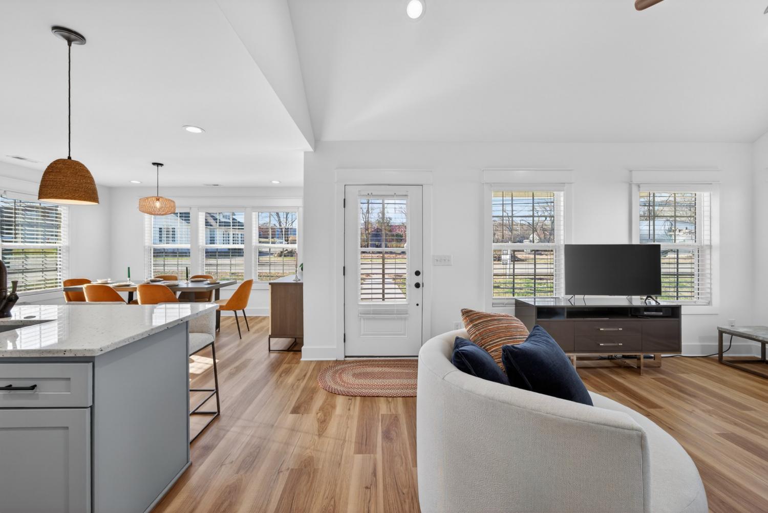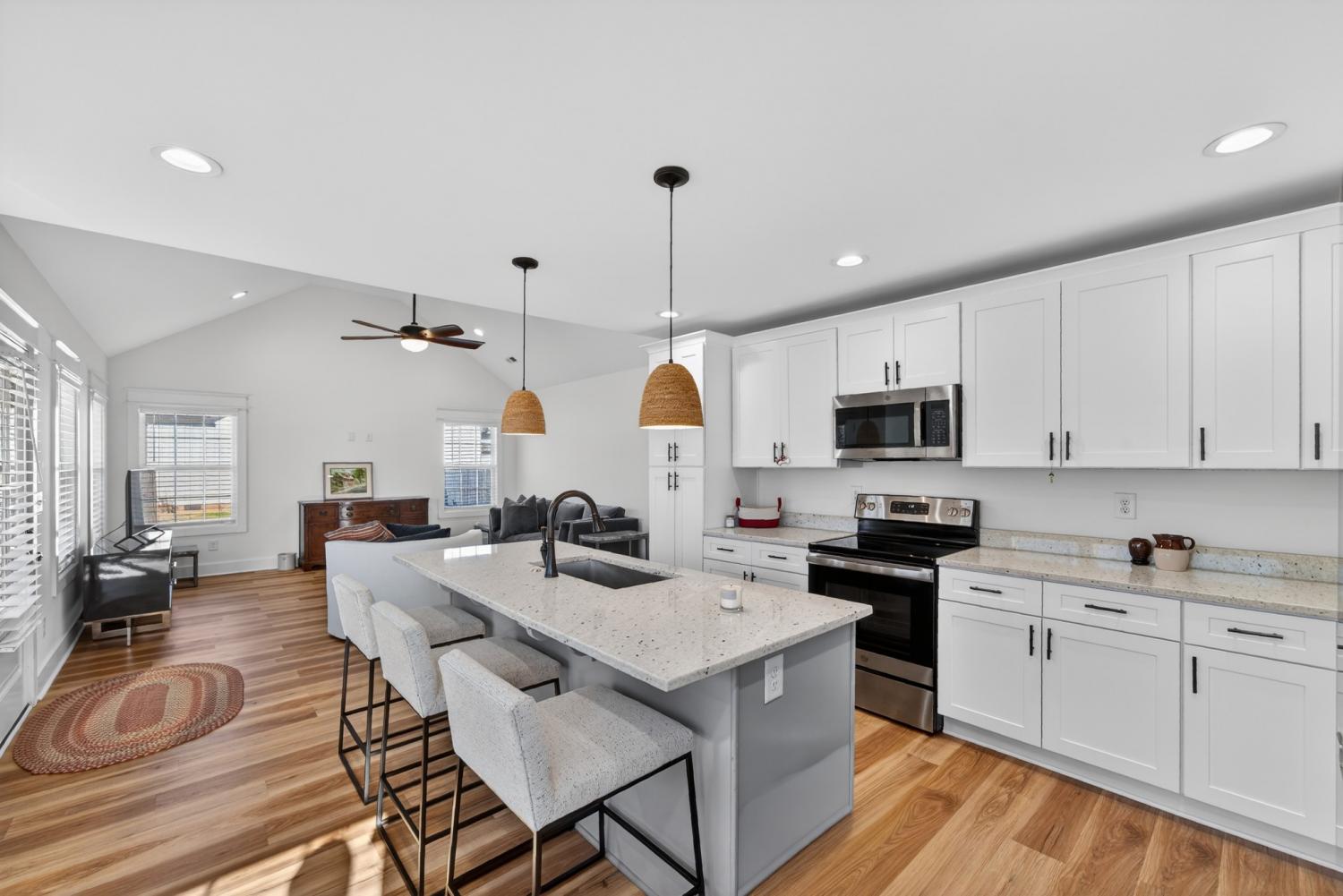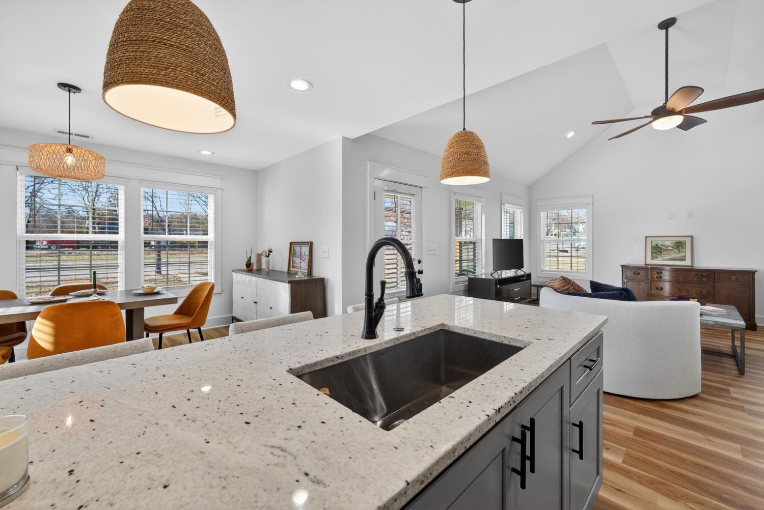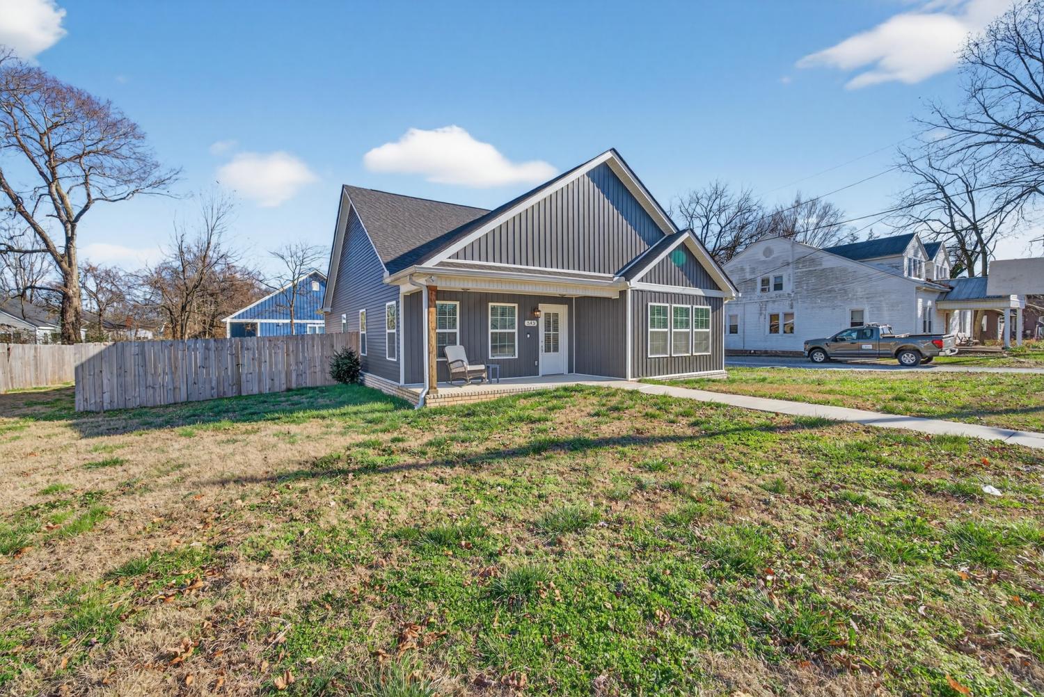 Welcome to this impressive one-story, beautifully crafted residence offering convenience and curb appeal - perfect for family living and entertaining alike! This home is thoughtfully designed and every room is bright and cheery. This 3 year old open-concept modern home offers 1500 square feet of living space and sits on a flat 1/3 acre corner lot. The front entrance opens to a spacious great room flooded with natural light and features beautiful vaulted ceilings creating a warm and inviting atmosphere. The large kitchen is any cook’s dream, complete with loads of storage space, GE appliances, granite countertops, and an oversized granite island. The sunlit dining area easily fits a table for 6 or 8 with room for your own buffet or sideboard. The master bedroom showcases trey ceilings, an oversized walk-in closet and an en-suite with a large walk-in shower and double sinks in a granite countertop. Two generously sized additional bedrooms (or office space) are just across the hall as well as a full 2nd bath. The home offers LVP flooring and recessed lighting throughout. Outdoors offers a front and back porch and a large, private, fenced-in backyard perfect for cookouts, fire pits and a pool. Take a 5 minute walk to the quaint downtown of Lewisberg for shopping, restaurants and services. Highway I65 is 8 minutes away, Franklin and Nashville a 40 or 50 minute drive north. This home is move-in ready and awaiting your personal touch - we’d love to show it to you! #saywhen