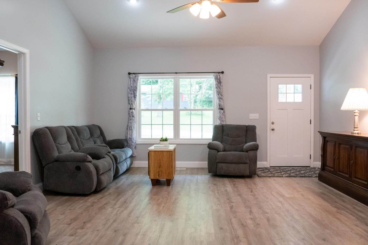 Priced to sell! Meticulously maintained, pristine one-level home built in 2023 and sparingly used as a second residence. It feels and looks brand new and is move-in ready! The dishwasher has never been used! The living area's cathedral ceiling creates an airy, yet warm ambiance. The adjacent dining space is large to accommodate your guests for gatherings. The modern kitchen dazzles with sleek white shaker cabinets, stainless steel appliances, and generous counter space, seamlessly connected to a convenient prep/pantry area and a laundry with a sink. The primary suite offers a spacious bedroom and bath with a double-sink vanity and walk-in closet. Two additional bedrooms boast ample space and sizable, lighted closets and a hall bath servicing both. A tall, expansive crawl space with a partially finished floor provides abundant storage. The back offers a deck overlooking the big backyard. Nestled in a vibrant golf course community, this home is just 0.2 miles from the clubhouse, nearby is a hospital, Dale Hollow Lake and state parks are close. Enjoy the charming small-town atmosphere, or head to Cookeville to shop, dine, and more. Cookeville offers a regional hospital/speciality doctors, and is home to Tennessee Tech...it's less than 20 minutes away, and has access to I-40 for further travel.
