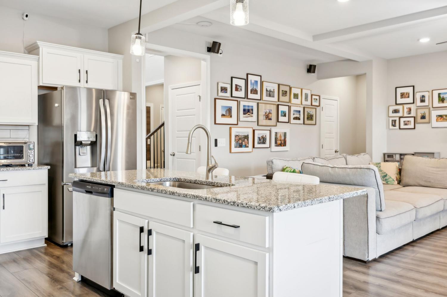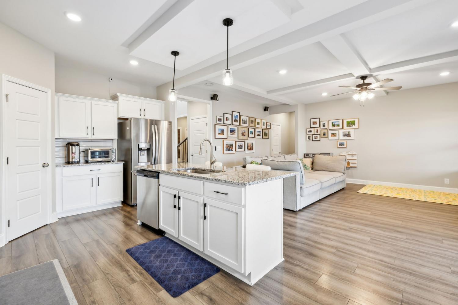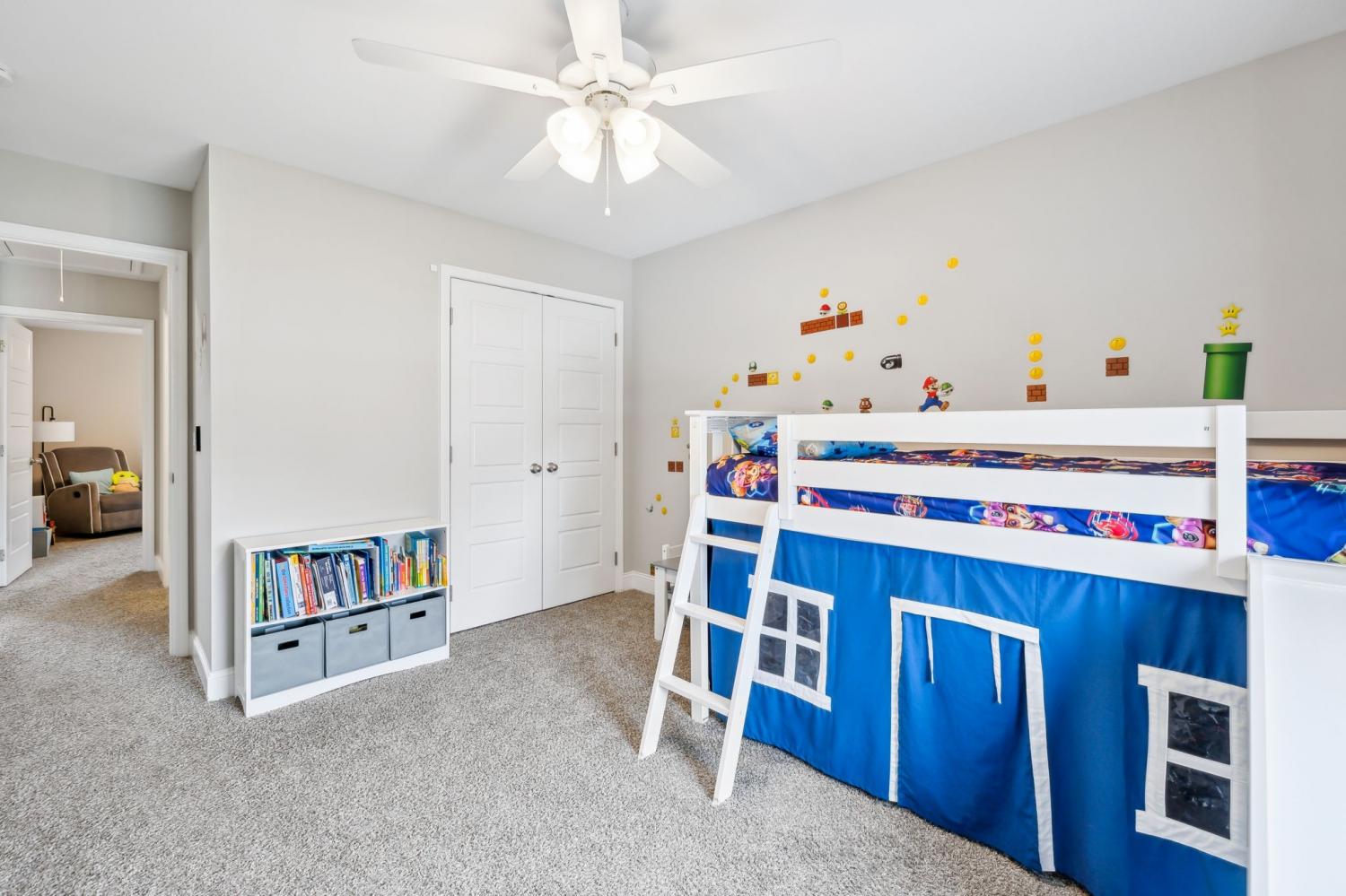 Better than new! Welcome to this meticulously maintained home that blends comfort & smart living. Designed for convenience & functionality, this 4-bedroom, 3-bath property in the Kirkwood school district is less than two miles from I-24. Set in a quiet neighborhood with walking paths, two ponds, & a playground, this home has so much to offer. The covered front porch radiates curb appeal. Step inside to an open-concept layout centered around a spacious living area with gas fireplace. The kitchen is fully equipped with granite countertops, stainless steel appliances, tile backsplash, soft-close cabinetry, & a large island — the perfect setup, whether you're cooking dinner or hosting friends. The primary suite is located on the main floor & features a walk-in closet, double vanities, & a beautifully tiled shower. A second bedroom is also located on the main level, ideal for guests, a home office, or multi-generational living. Upstairs, you'll find two more bedrooms, a bonus room, & a full bath — plenty of space for family or visitors. Out back, relax on the custom-built screened & covered patio that overlooks a privacy-fenced backyard — a great space for grilling, entertaining, or just unwinding. The RainBird irrigation system ensures a beautiful, lush lawn. This move-in-ready home combines thoughtful design, smart upgrades, & quality craftsmanship. Schedule a private showing & see it for yourself. VA assumable