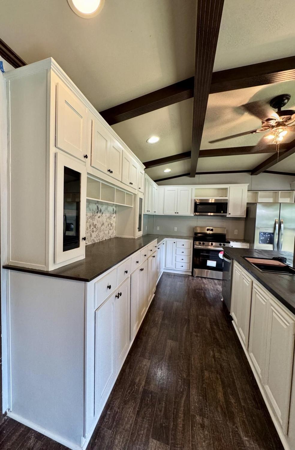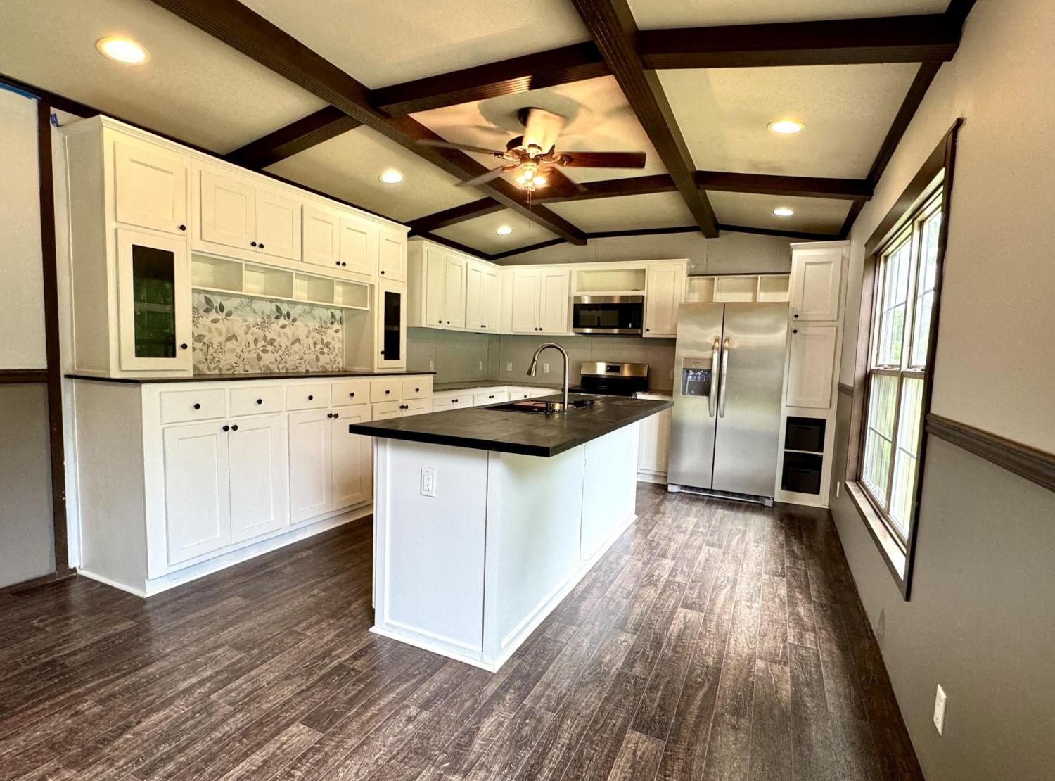 Back on the Market at NO fault of the Seller!! Welcome to this beautifully renovated 4-bed, 2 bath manufactured home offering 1,980 sq. ft. of comfortable living space on 3.25 level & open fenced-in acres w/ 12 ft gate for easy access to the barn. This home has been thoughtfully updated to blend modern comfort w/ rustic charm with new stainless steel appliances, new roof w/ 6 in. gutters, new HVAC. Inside is a spacious living space w/ built-ins, fresh paint, & a bright kitchen w/ ample cabinetry & a center island perfect for entertaining. The oversized master features a spacious walk-in closet with dressing area & built-in shelving. A spa-like en-suite master bath features a soaking tub & separate shower as well as a custom vanity. Outside, you'll fall in love w/ the wide-open space & possibilities! The impressive 50 x175 barn is already outfitted w/ electric & water connections. The barn offers exceptional functionality w/10 individual stalls equipped w/ water spigots for convenience & additional stalls in the rear section. A dedicated tack room provides secure storage for saddles, bridles, & gear, while a tie stall area w/ a sink & water heater makes grooming, hoof care, & tacking up safe & efficient. There's a climate controlled workspace —perfect for home-based business, hobby space, or comfortable office setup and an open area perfect for a workshop. Septic was fully inspected, pumped & new access w/ routing station installed. Whether you're dreaming of homesteading, a mini-farm, or just room to roam, this property delivers! Don't miss your chance to enjoy peaceful, spacious country living. Some images show APPROXIMATED boundary lines. Buyer to verify any info deemed important.