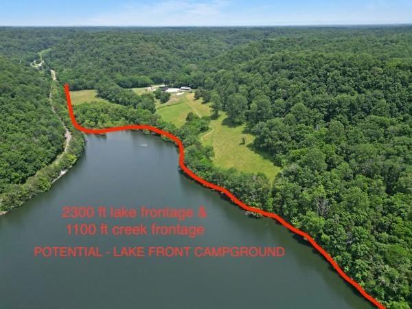 2300 feet NORMANDY LAKE FRONTAGE ;1100 ft CREEK FRONTAGE. No dock but very easy access to the unbelievable amount of lake frontage. There is no other Normandy Lake land with this much easy access lake frontage. No climbing down a mountain to get to the lake. Lots of potential for family and friend activities on the lake. Swim, fish, kayak, canoe, paddle boat, or just simply enjoy the afternoons floating on a tube right from your own shoreline. Or launch your ski boat or fishing boat at one of the two boat ramps less than 3 miles from your property. The property has a newly built 40 x 60 equipment storage building for all play toys (boats, horse trailers, ATV’s and even lots of a room for a huge travel trailer). This unique retreat, 50+/- acres surrounded by the tranquil waters of Normandy Lake and 50+/-acres of TVA (Tennessee Valley Authority) private land provides total seclusion and privacy for this beautiful paradise.Total seclusion!! Total privacy!! This gorgeous property has a beautifully decorated and modern 2 bd, 2 bath guest cottage (960 sq. ft with 720 sq. ft of covered porch with a wood burning stoned fireplace). Custom cabinets, granite countertops, granite surround gas log fireplace in living room. Miles of ATV, horseback riding, and hiking trails wind through the acreage and continue onto adjoining TVA land - a paradise for hunters and outdoor enthusiasts! The four stall horse barn is set up for the equestrian lover with lots of fenced and cross fenced pasture land for the horses. There are no restrictions so you may choose to have cattle.Great property for the investor!! Air B&B the guest cottage or live in it while you’re building your dream home. Several great building sites for your dream home in pasture land only 200’ from the lake. Mature trees with lots of marketable timber. No restrictions! Greenbelt. 1 hr. from Nashville Parcel ID # 070 008.00(23.42acres) & Parcel ID# 070 008.03(26.2 acres) are being sold together for total of 49.62 acres.