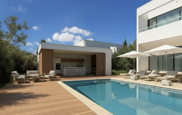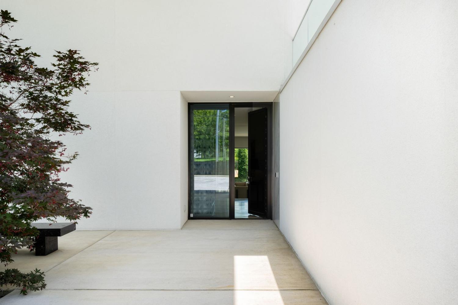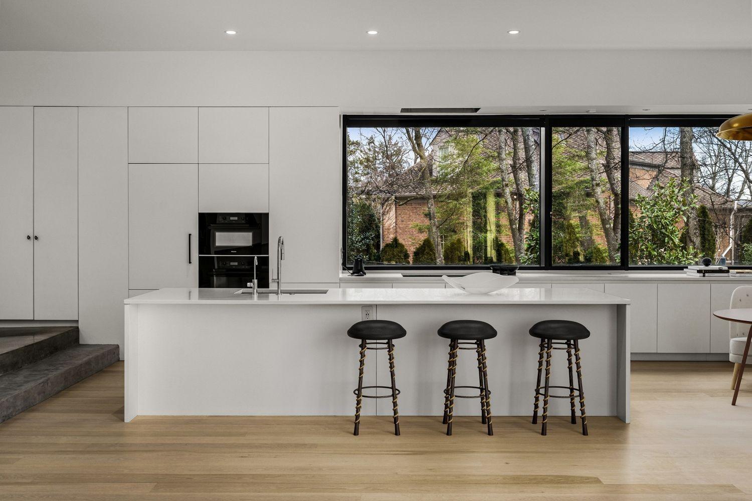 Designed by internationally recognized architect Alexandros Darsinos, this striking residence is a seamless fusion of modern design and natural beauty. Soaring glass walls and expansive picture windows invite sunlight to dance across the interiors, creating a dynamic atmosphere that shifts with the day. Inside, the open-concept floor plan is thoughtfully layered with light, airy tones and warm natural wood—elements that soften and balance the minimalist concrete exterior. The result is a home that feels both refined and welcoming. Upstairs, a dramatic skylight illuminates a serene lounge and three tranquil bedrooms, each designed as a private retreat. Recent upgrades by the homeowner include custom drapery, California Closets in all three bedrooms and the garage, and a reimagined kitchen with upgraded cabinets, pull-out drawers, and built-in organizers—enhancing both form and function. Step outside and discover a private oasis. The pool, framed by lush greenery and mature trees, offers the perfect blend of seclusion and relaxation. A partially covered patio extends the living space outdoors, ideal for hosting gatherings or enjoying quiet moments surrounded by nature. This residence is more than a home—it’s a living work of art, meticulously designed to inspire and crafted to delight.