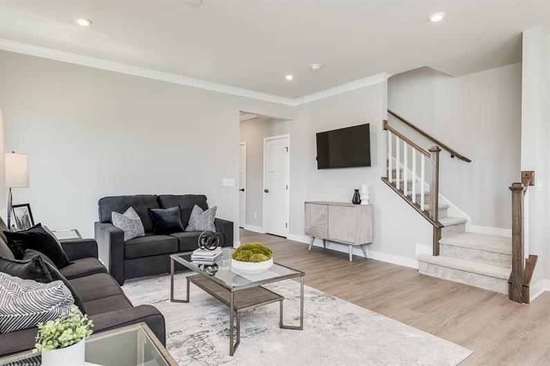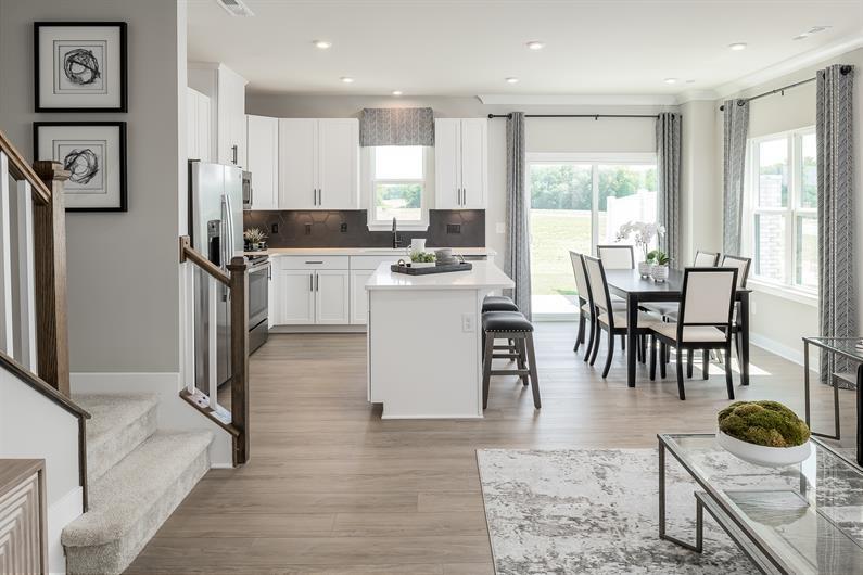 The Odessa: Spacious 2-story townhome featuring 3 bedrooms, 2.5 bathrooms, and a 1-car garage. The open-concept main level includes a fully equipped kitchen with an island. Upstairs, the oversized owner's suite boasts a massive walk-in closet and private en suite bath with double bowl vanity and walk-in shower. Two additional bedrooms, a full bathroom, and a laundry room with included washer and dryer complete the second floor.
