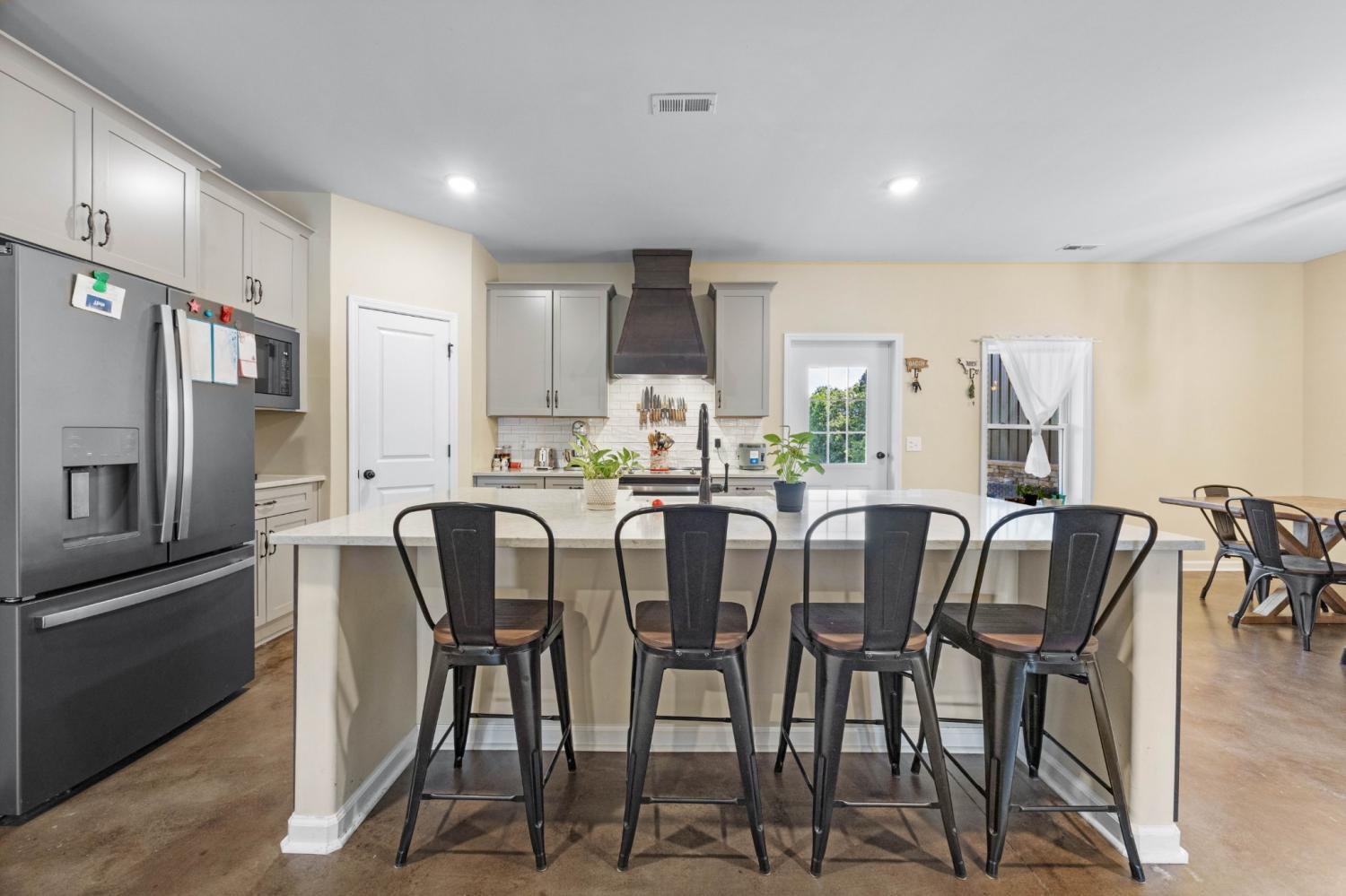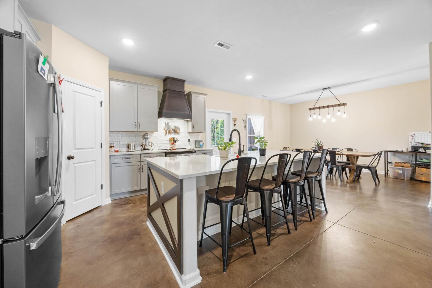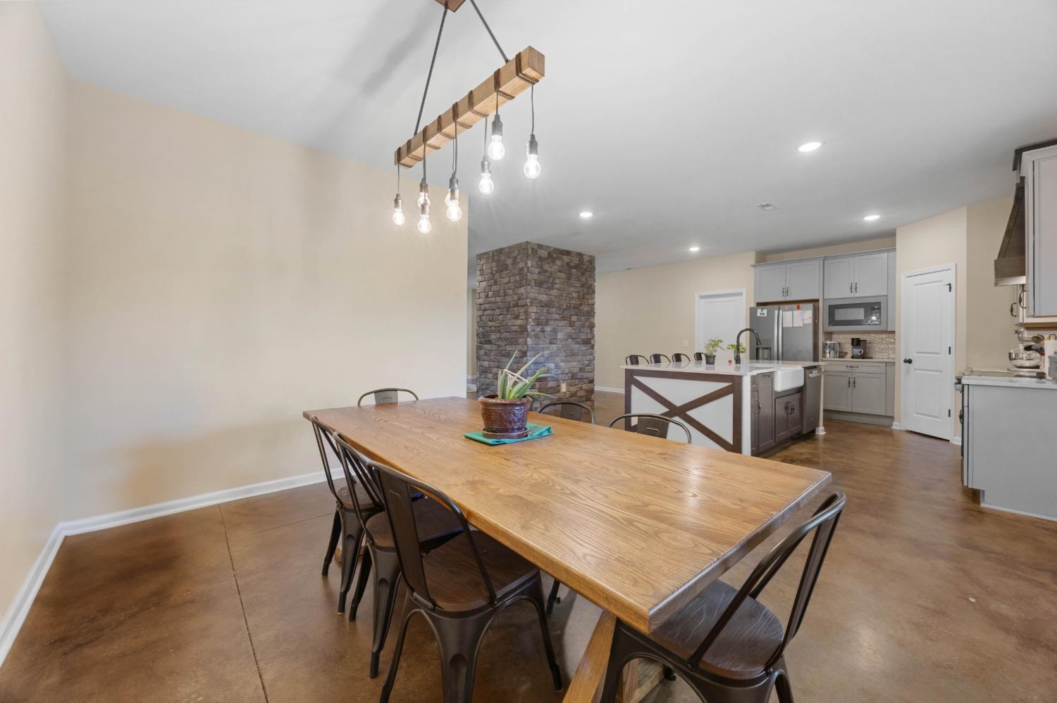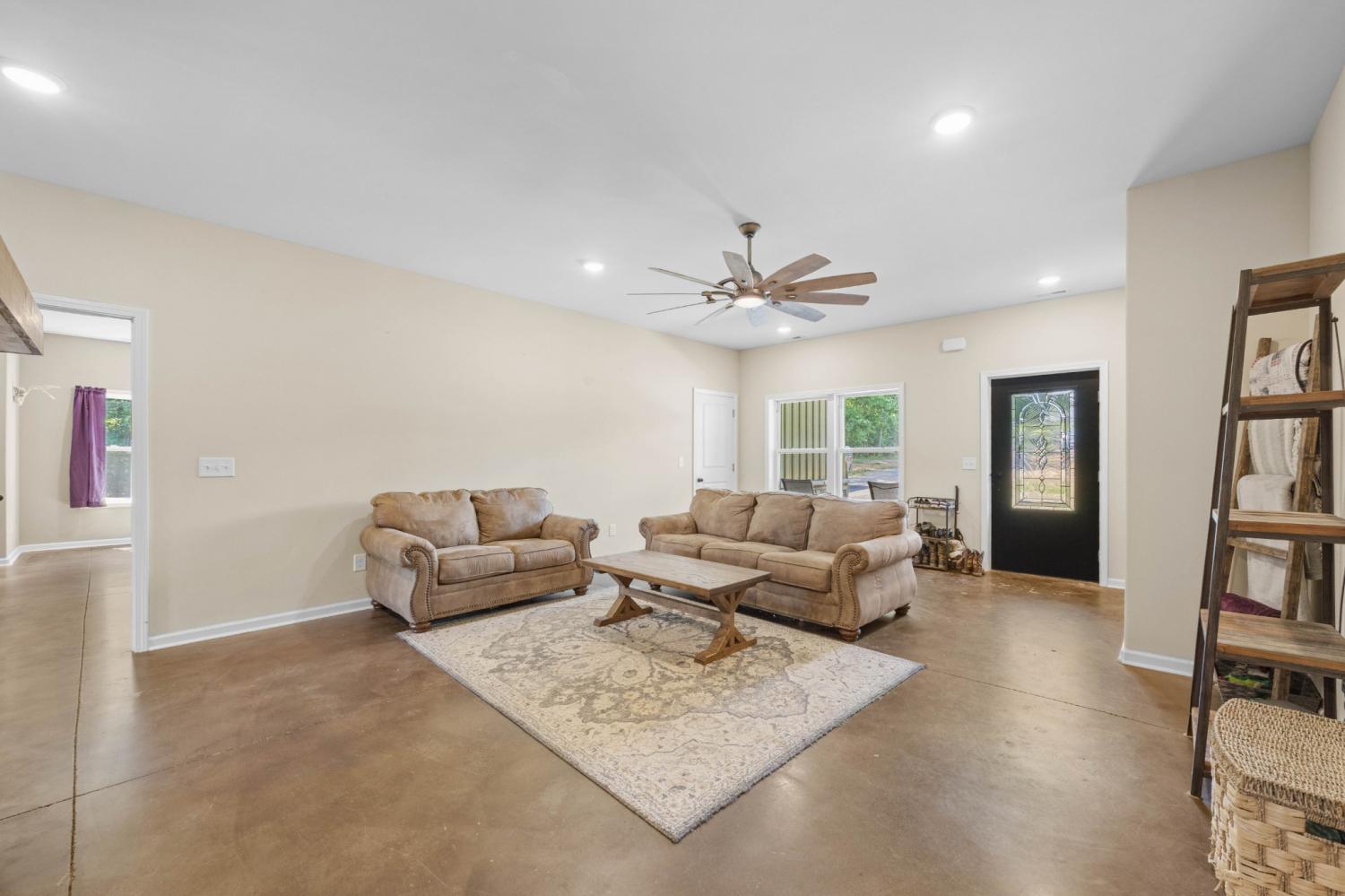 Welcome home to your own slice of paradise!! This 2 year old barndominium home sits on 2 acres, of the almost 17 acre property, with 7 acres of pasture with cross fence. There is a 120x130 ft area ready to build a shop/garage. 8 acres of woods perfect for hunting with tree stand included. There is a garden place set up already with great quality soil, to start your homesteading journey! With 1000 foot driveway, and large front & back porches, you are sure to love the amazing views this property has to offer with no light pollution! With 3 areas of protected greenbelt space, you don't have to worry about neighbors being too close. Home is equipped with storm shelter /safe room and a wood burning stove for secondary heat source for those cold winters. All bedrooms are oversized and laundry room has plenty of cabinet storage as well as a folding table. The beautiful kitchen offers an oversized island workspace, as well as 2 separate walk in pantries. Well on property has 5 year warranty and roof and shell of home have a 40 year warranty, What a perfect place to bring your family and your animals and start your homesteading journey!!