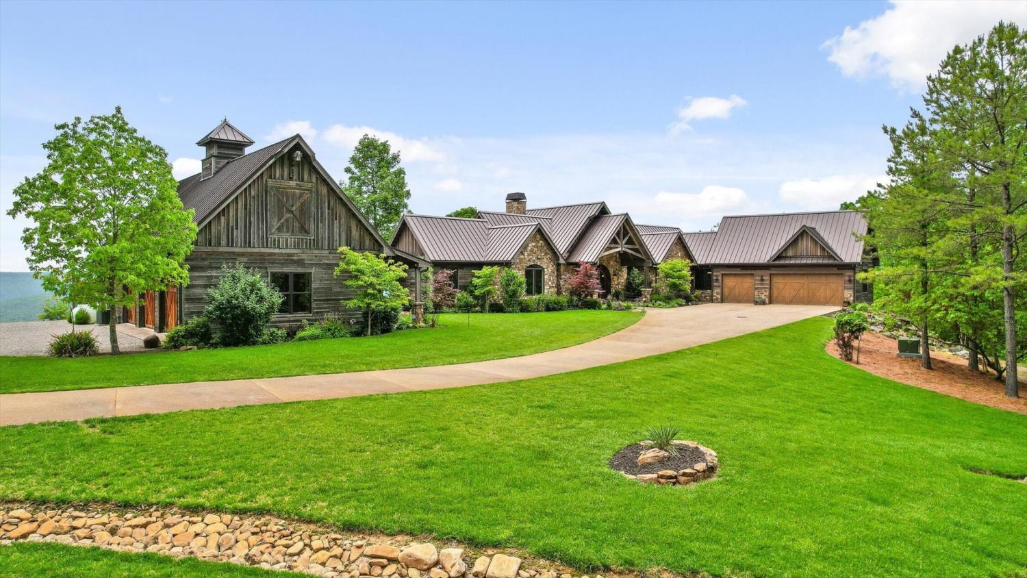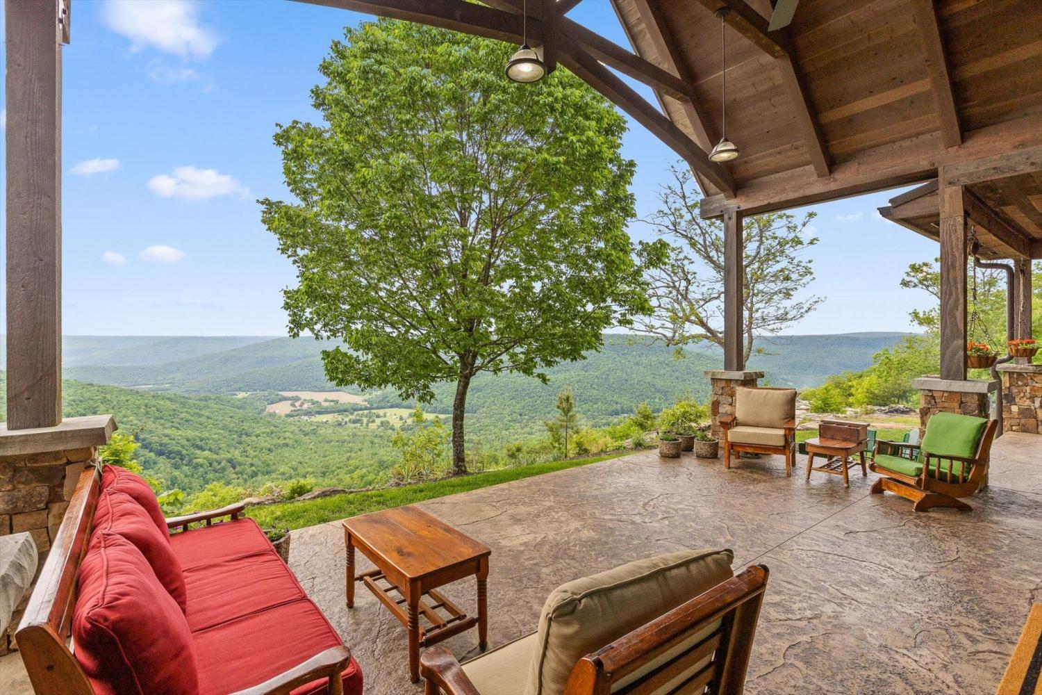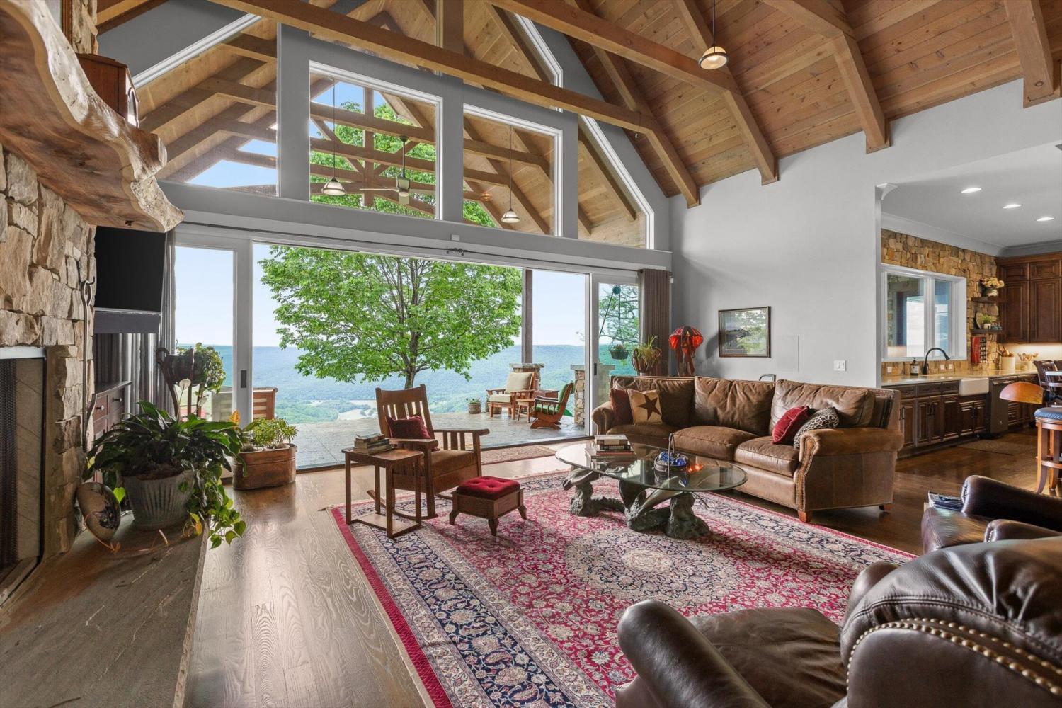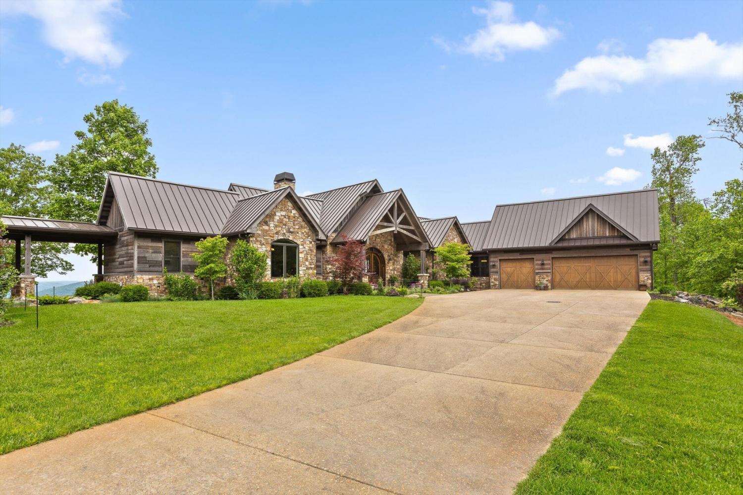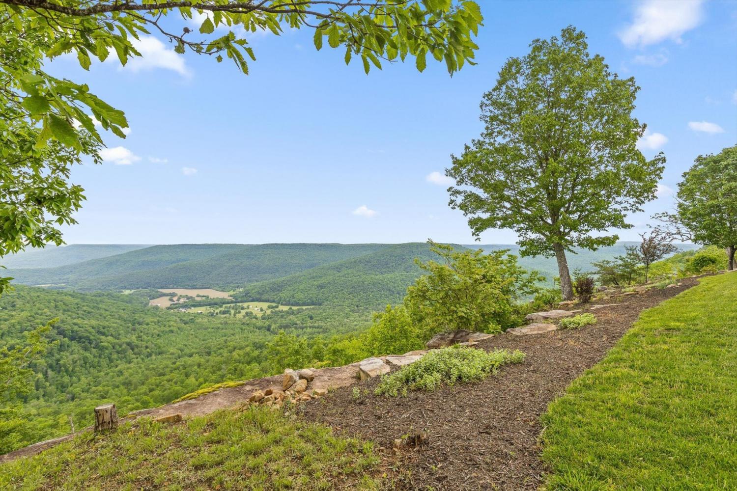 Welcome to 6835 Jasper Highlands Blvd—an extraordinary 11.39-acre bluff-front estate in the prestigious Jasper Highlands community. This single-level, nearly 3,000 SF custom home was thoughtfully designed to capture panoramic views and offer luxurious, private living in a gated setting. The interior features soaring cathedral ceilings, walls of windows, (talk about natural light), and an open-concept layout ideal for entertaining and everyday comfort. The great room is anchored by a custom fireplace and built-ins, flowing into a formal dining area and gourmet kitchen with quartz countertops, stainless appliances, walk-in pantry, and large island. The spacious primary suite includes dual walk-in closets and a spa-style bath with double vanities. Two guest bedrooms share a Jack & Jill bath, and a separate office or library provides flexible space. Additional highlights include a large utility/mud/craft room and 3.5 total bathrooms. Step outside to take in the stunning bluff-top views from the 1,250 SF stamped concrete patio—perfect for outdoor dining and watching the sunset. The oversized 3-car garage includes attic storage, and the adjacent 4-bay garage barn adds versatility with one fully conditioned bay/workshop, full bath, storage lofts, and two stamped concrete porches—one perched right on the bluff. Check out the outdoor shower! It adds convenience for outside showering before entering the house. The gently rolling acreage includes access to private trails and a waterfall beneath a charming stone bridge. Also included: 48kW generator, dual wells, (utility water available at street level).1,000-gal propane tank, encapsulated crawl space, extensive landscaping, and a full security system. This is a rare opportunity to own a private, amenity-rich retreat in one of Tennessee's premier gated communities. Jasper Highlands offers gated security, community trails, clubhouse, pool, fitness center, tennis/pickleball courts, and a mountaintop restaurant.
