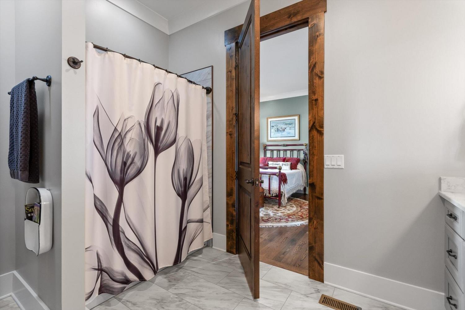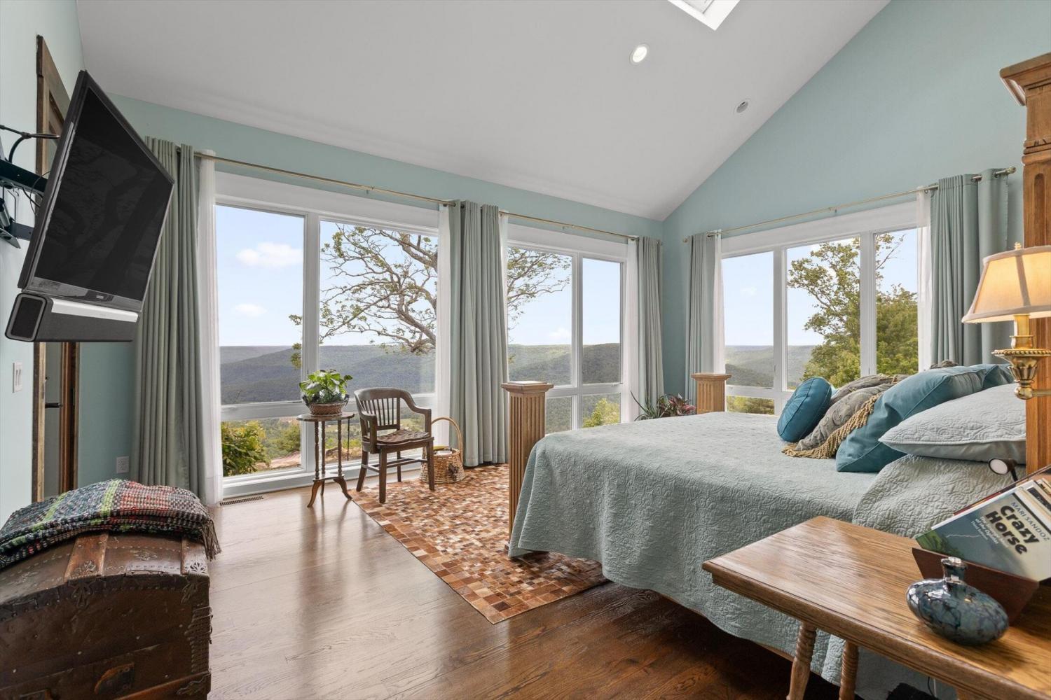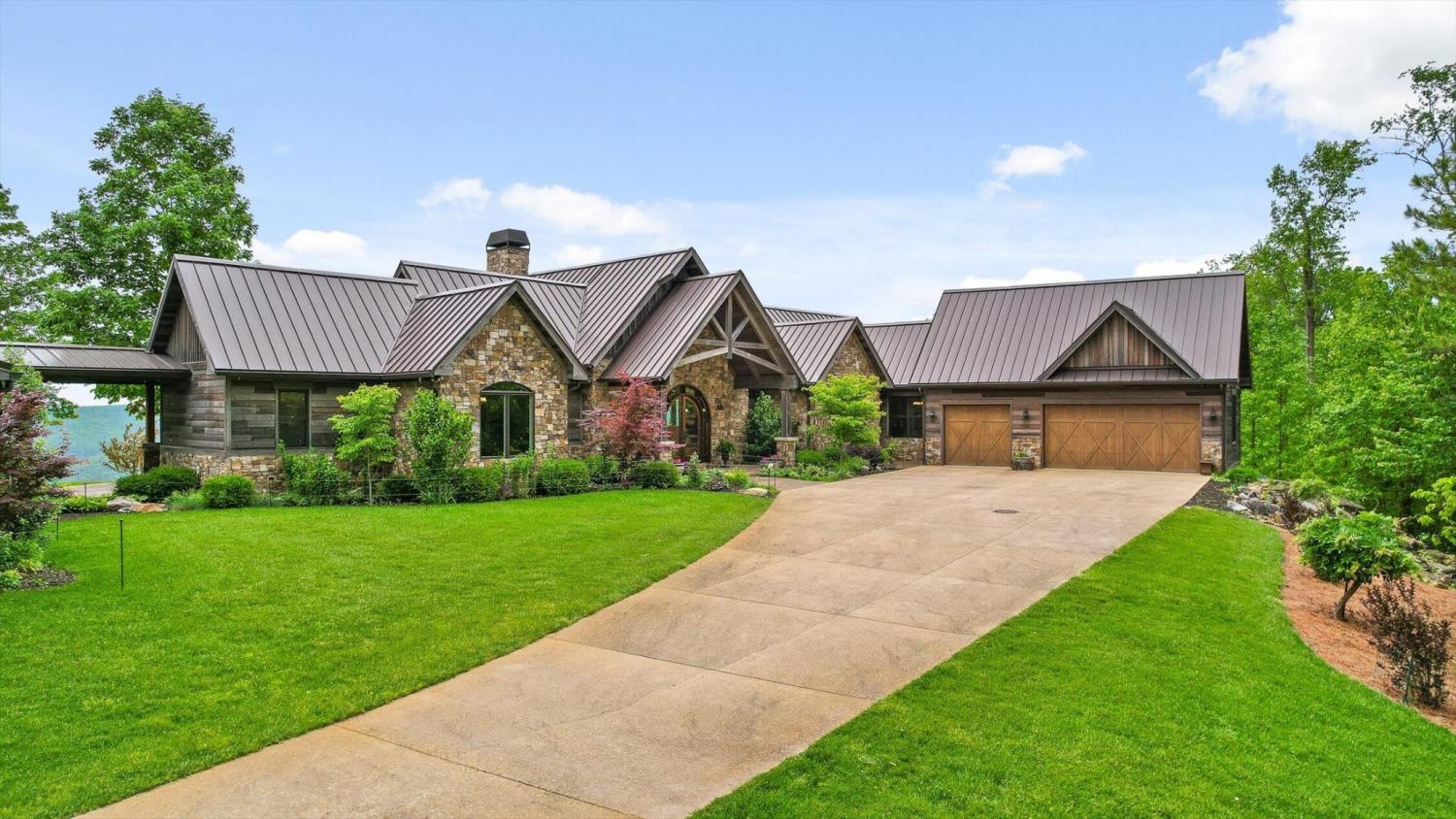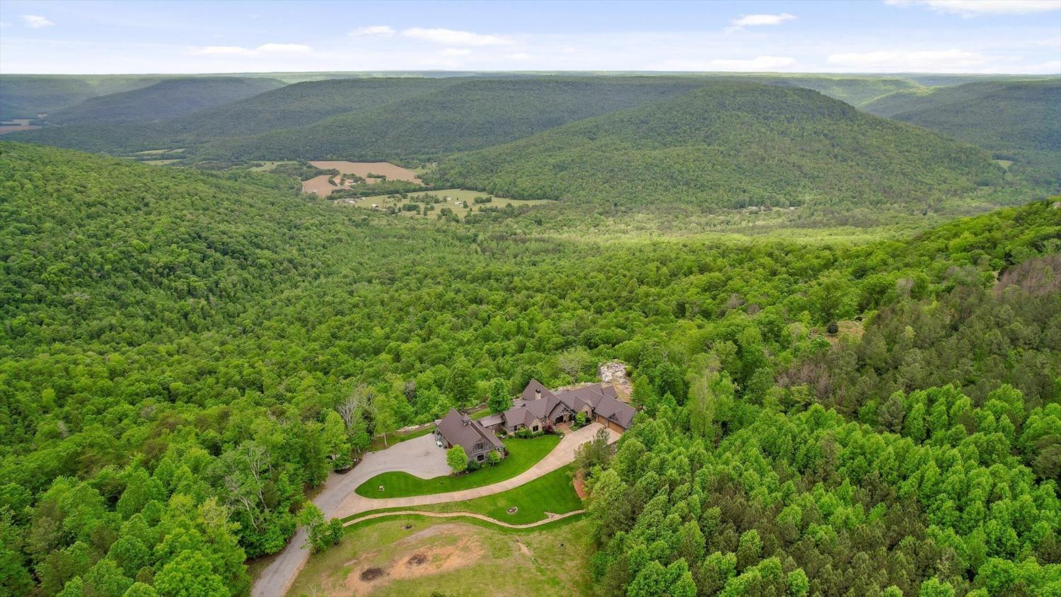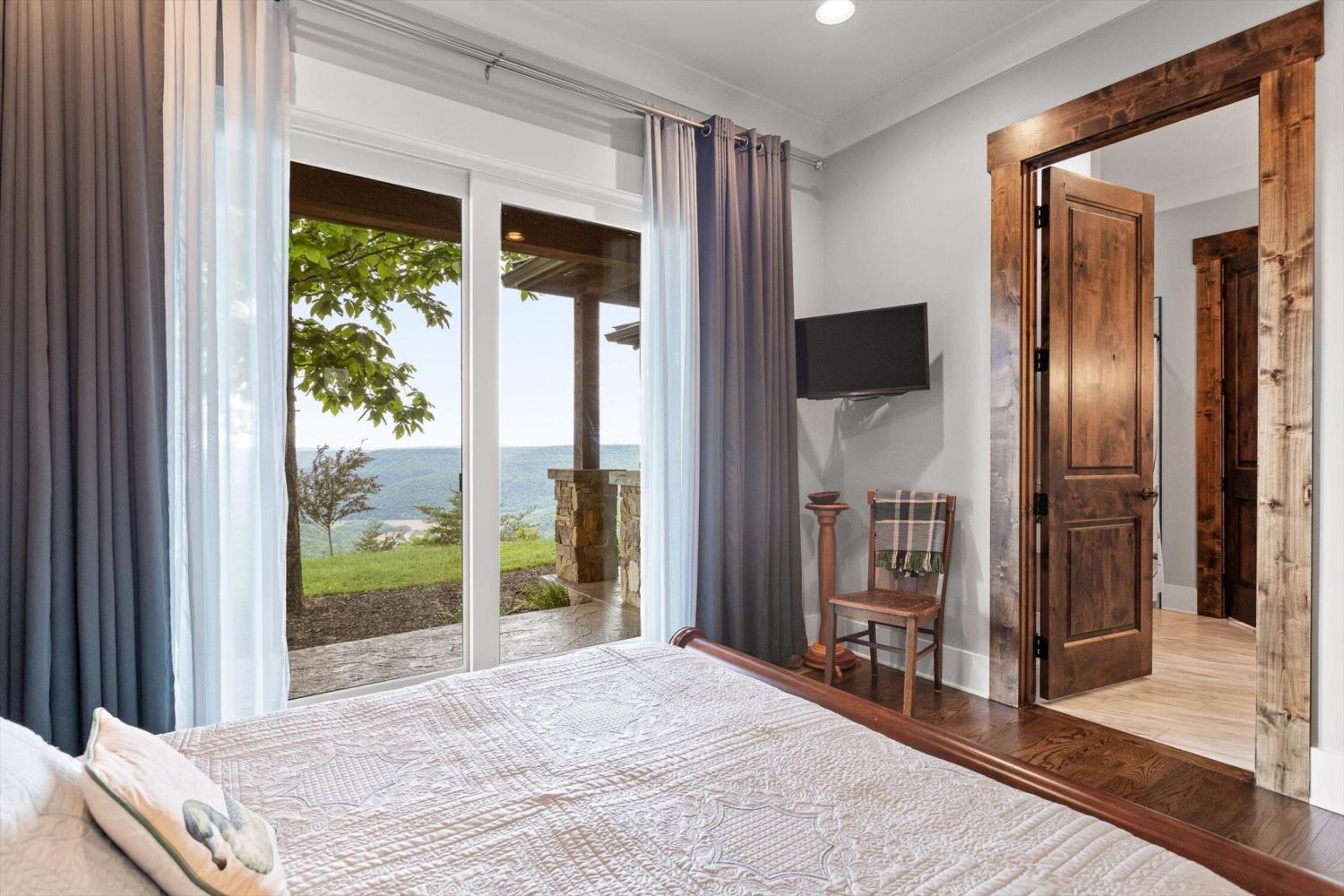 Welcome to 6835 Jasper Highlands Blvd—an extraordinary 11.39-acre bluff-front estate in the prestigious Jasper Highlands community. This single-level, nearly 3,000 SF custom home was thoughtfully designed to capture panoramic views and offer luxurious, private living in a gated setting. The interior features soaring cathedral ceilings, walls of windows, (talk about natural light), and an open-concept layout ideal for entertaining and everyday comfort. The great room is anchored by a custom fireplace and built-ins, flowing into a formal dining area and gourmet kitchen with quartz countertops, stainless appliances, walk-in pantry, and large island. The spacious primary suite includes dual walk-in closets and a spa-style bath with double vanities. Two guest bedrooms share a Jack & Jill bath, and a separate office or library provides flexible space. Additional highlights include a large utility/mud/craft room and 3.5 total bathrooms. Step outside to take in the stunning bluff-top views from the 1,250 SF stamped concrete patio—perfect for outdoor dining and watching the sunset. The oversized 3-car garage includes attic storage, and the adjacent 4-bay garage barn adds versatility with one fully conditioned bay/workshop, full bath, storage lofts, and two stamped concrete porches—one perched right on the bluff. Check out the outdoor shower! It adds convenience for outside showering before entering the house. The gently rolling acreage includes access to private trails and a waterfall beneath a charming stone bridge. Also included: 48kW generator, dual wells, (utility water available at street level).1,000-gal propane tank, encapsulated crawl space, extensive landscaping, and a full security system. This is a rare opportunity to own a private, amenity-rich retreat in one of Tennessee's premier gated communities. Jasper Highlands offers gated security, community trails, clubhouse, pool, fitness center, tennis/pickleball courts, and a mountaintop restaurant.