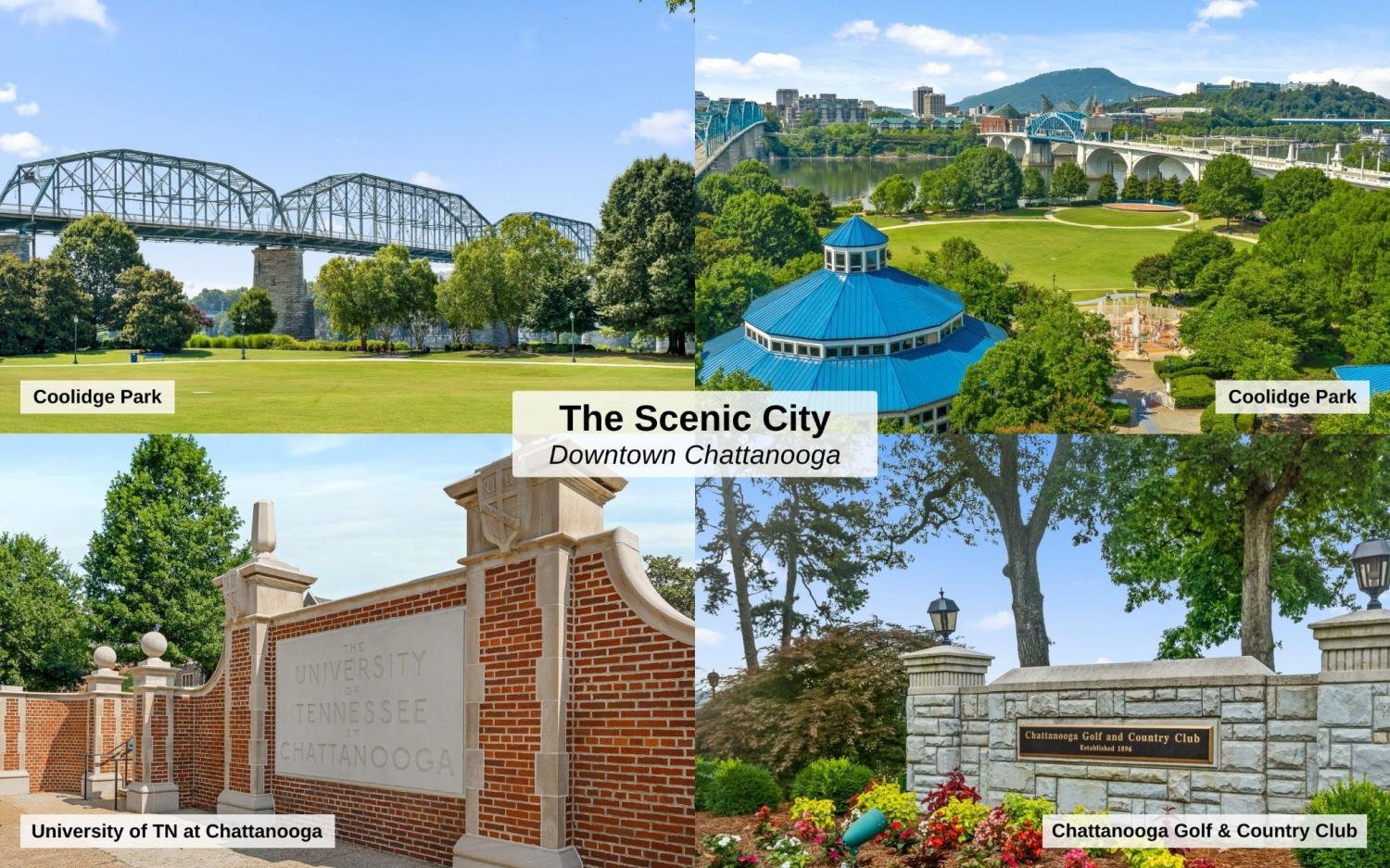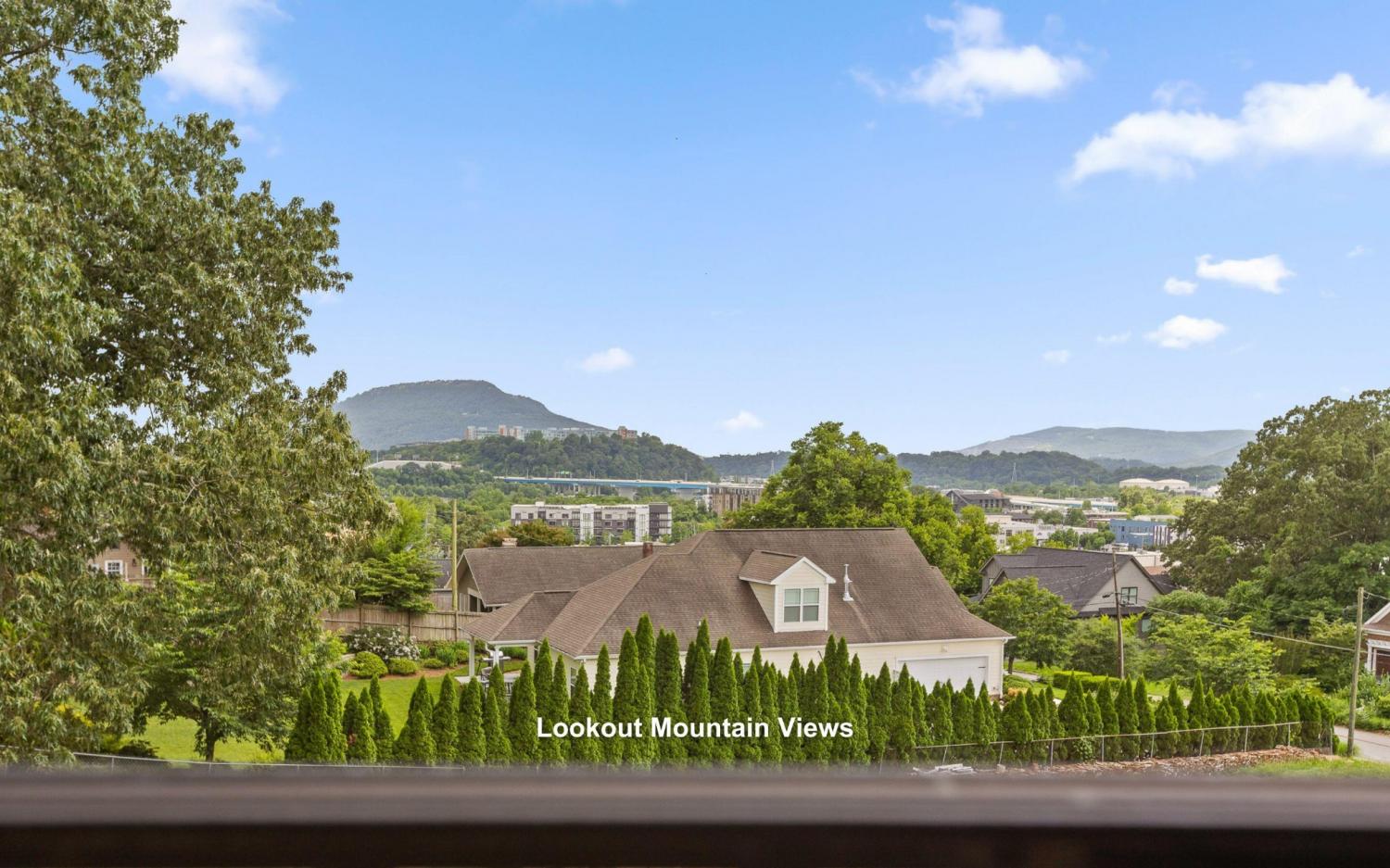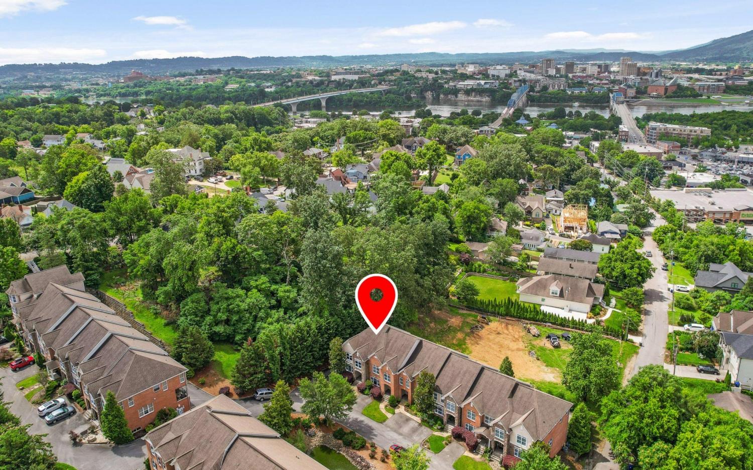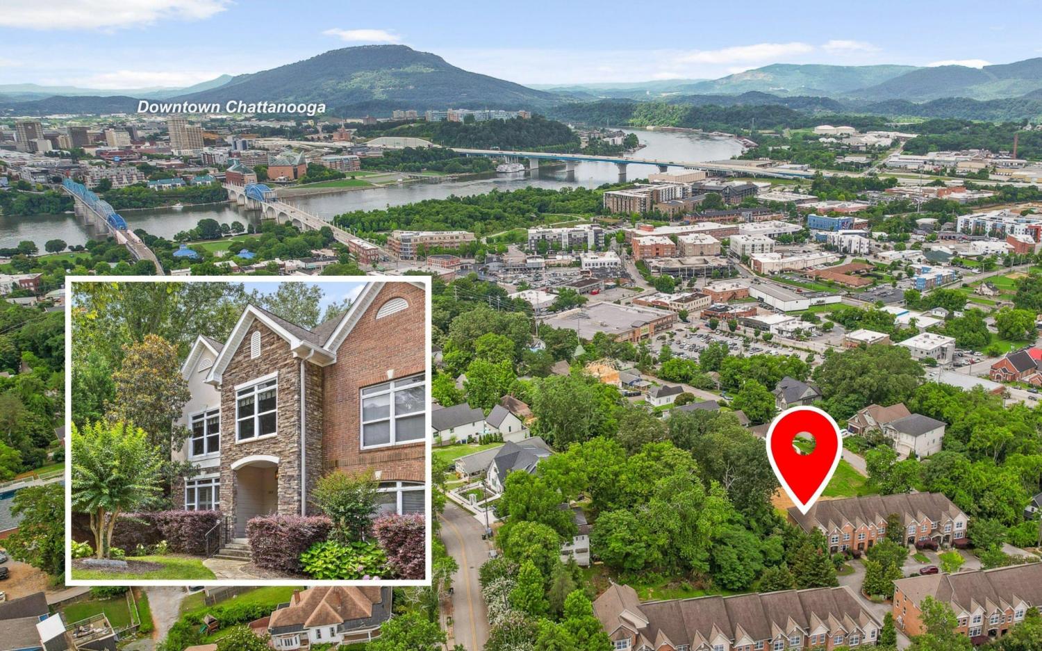 In-town living at its finest: 4 bedroom NORTH SHORE condo with stunning views and walkabilty to local dining and shopping! Zoned for award-winning Normal Park Schools, this end unit is situated in the desirable North View community. Lookout Mountain VIEWS, 4 BEDROOMS, and 3.5 baths. Beautiful curb appeal, landscaping, and front patio welcome you inside with hardwood floors, window shutters, built-in bookshelves, FIREPLACE, and arched doorways for charm and sophistication. STUNNING KITCHEN impresses with stainless appliances and granite countertops. The Living and Dining rooms host enviable natural light and a COVERED BALCONY for morning coffee. Convenient powder room completes the main level. The primary suite upstairs features vaulted ceilings, balcony views, walk-in closet with built-ins, and a luxurious ensuite bath with glass brick window, double vanity, tiled shower, and soaking tub. 2 additional bedrooms, full bath, and laundry room are also found upstairs. Downstairs, find an additional private bedroom, bathroom, and walk-in closet! This 2-level condo includes a 2-car GARAGE plus an additional PARKING SPOT in front of your unit, and a dedicated lawn space. The boutique North View community features 2 elegant water fountains that create an idyllic, resort feeling. Unbeatable CONVENIENCE less than 5 minutes from Frazier Avenue, Coolidge Park, Walnut Street Bridge, Renaissance Park, Publix, Whole Foods, and vibrant local dining and shopping. 1 turn off Forest Ave and 2 turns from Frazier Ave, the location is walkable to Coolidge Park, the iconic Walnut Street Bridge, and the Tennessee River. Experience low maintenance, quiet, in-town living at 224 Shady Ridge Lane!