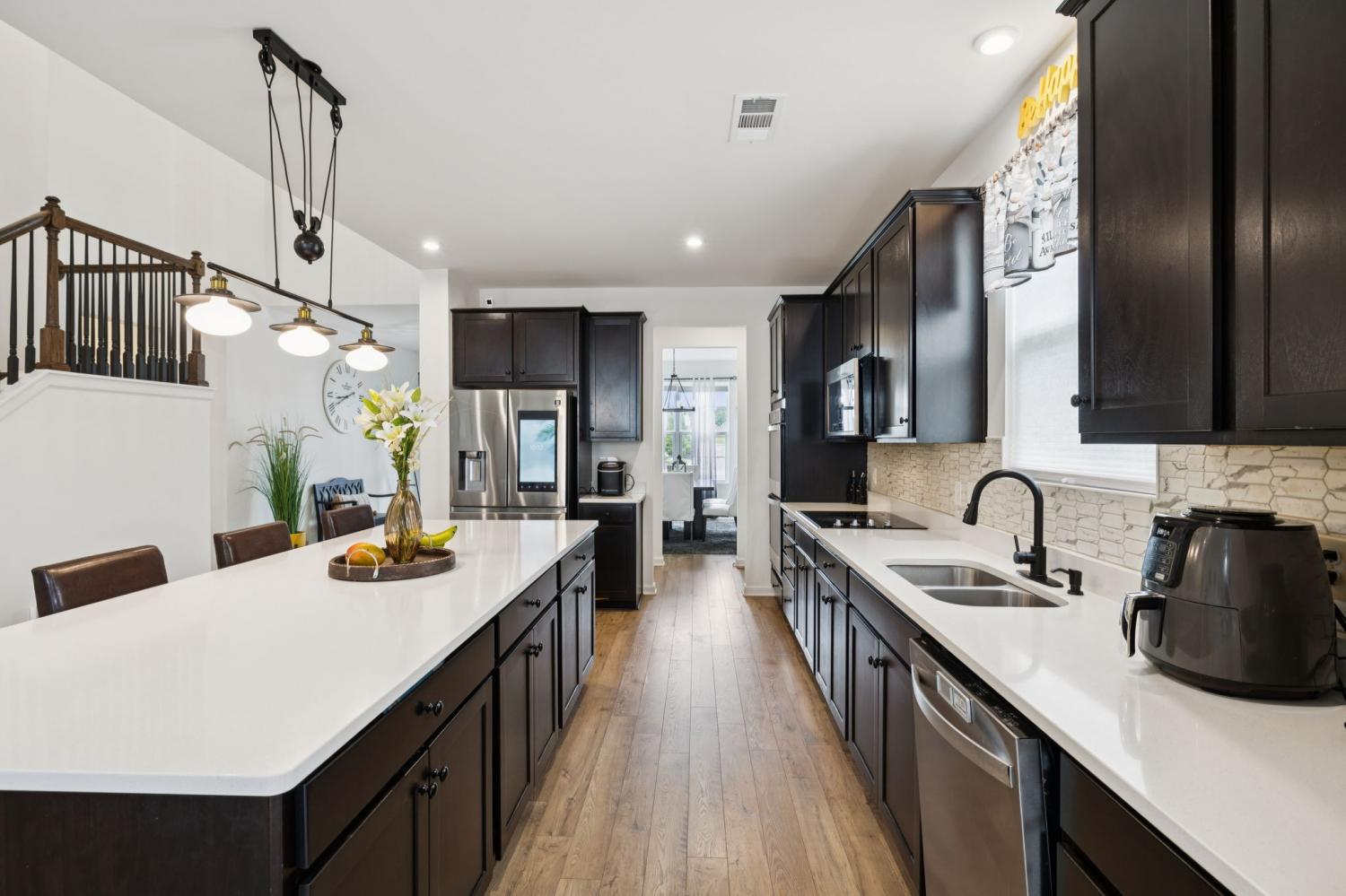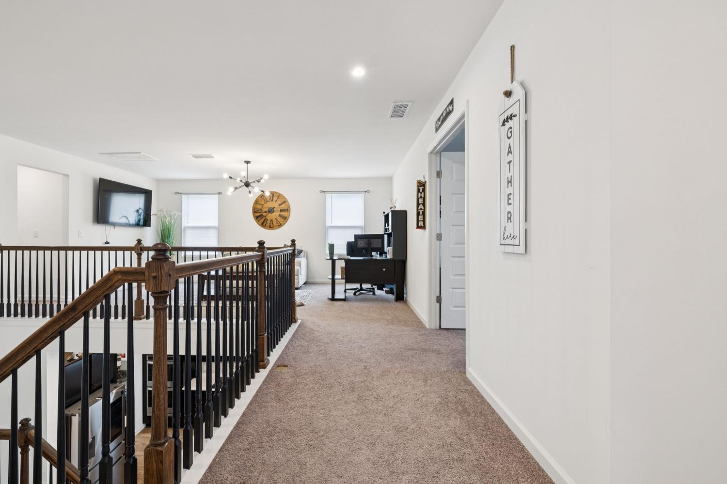 NEW PRICE!! Welcome to your dream home in one of Murfreesboro’s best neighborhoods - this like-new 5-BEDROOM, 3.5-bath stunner perfectly blends luxury and everyday comfort. From the moment you step through the welcoming foyer, you’ll be captivated by the soaring vaulted ceilings, abundant natural light, luxury vinyl plank flooring, and the seamless open-concept layout that connects the living, kitchen, and breakfast areas - ideal for entertaining or relaxing with loved ones. The gourmet kitchen boasts an oversized island with bar seating, sleek quartz countertops, double ovens, stainless steel appliances, rich espresso cabinetry, and a designer tile backsplash that ties it all together. Whether hosting a dinner party in the formal dining room or enjoying casual meals in the breakfast nook, you’ll love the versatility this home provides. The main-level primary suite is a tranquil retreat with a spa-style ensuite featuring a custom tile shower, double vanity, and walk-in closet with built-ins. Upstairs offers room to grow with 4 spacious bedrooms, 2 large full baths, a loft, and a big bonus room - perfect for a media space, playroom, or home office. Step out back to your private screened-in patio overlooking a fully fenced yard - perfect for pets, gardening, and summer evenings under the stars. Located minutes from Hwy 231 and Hwy 96, schools, shopping, dining, parks, and green spaces - Homes like this in Murfreesboro don’t last long - schedule your private tour today and fall in love!