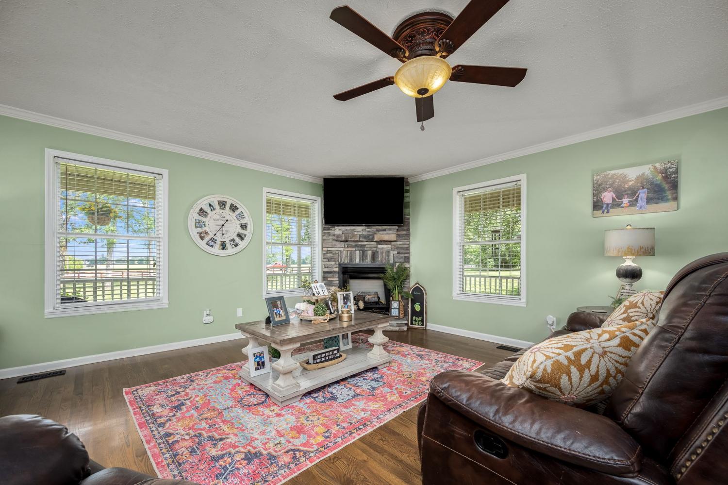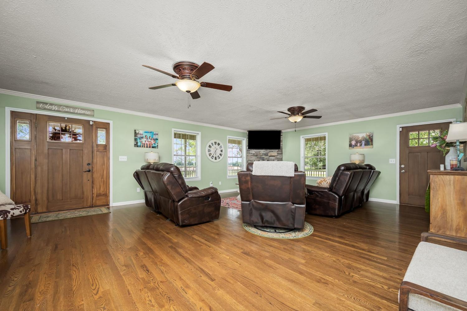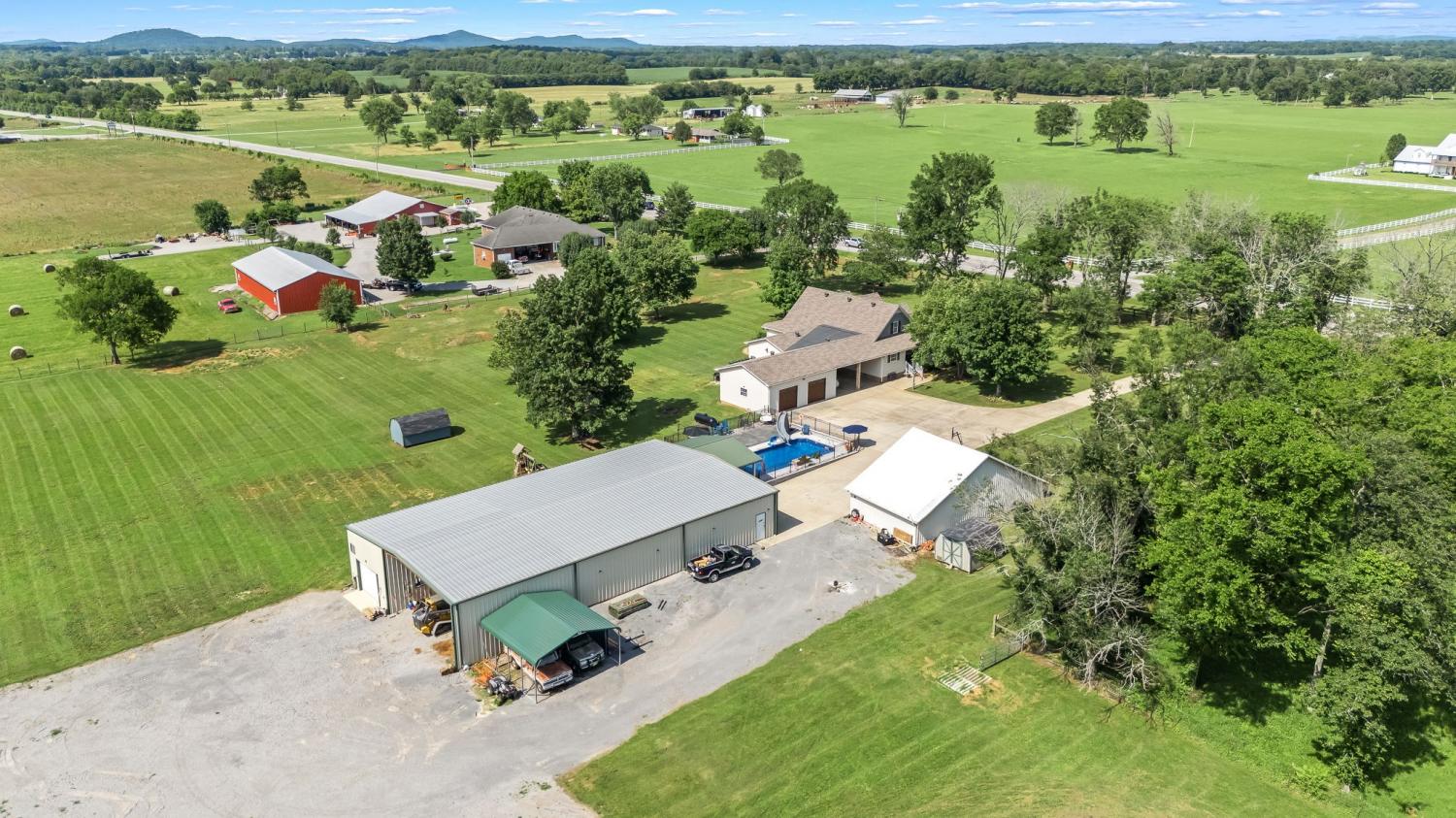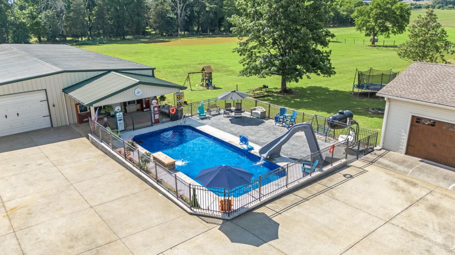 Looking for country living in the heart of Bedford County? This gorgeous property has features that will meet the whole family's needs. Interior features include 3 bedrooms, 2.5 bathrooms, an office, a large kitchen, an oversized owner's suite, and a cozy living room with a gas fireplace. Outside you will find a rocking chair front porch, an attached 2 car carport, an attached 2 car garage, a newly installed 16x32 inground pool, a pool room with bathroom attached to the 50x90 shop, and a 30x50 barn with garage doors. This property has a gated entrance, a fully fenced yard, and a fully stocked pond to give you the whole country seclusion feeling.