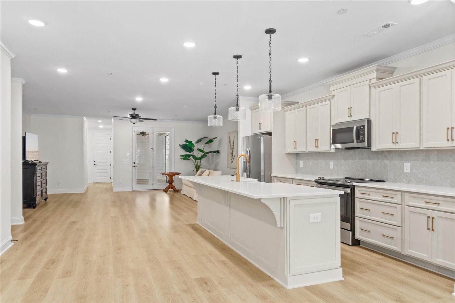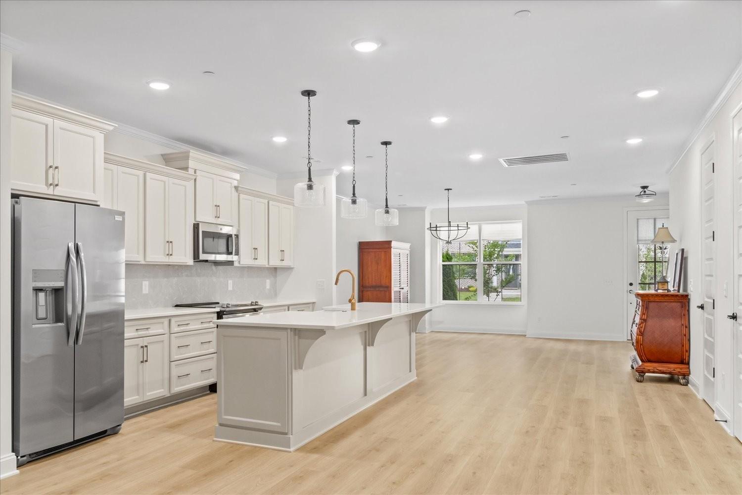 Set in the rolling country side of the popular community of Canterbury, this like new 2024 townhouse offers a modern farmhouse esthetic with a spacious, open, light filled floorplan. The fabulous kitchen is a chef's delight with quartz countertops, a 10 foot kitchen island, tiled backsplash, designer fixtures, and as an added bonus, an adjacent wet bar with beverage fridge! The dinning room is big enough for a family size table and hutch. The living room could easily accommodate two seating areas, and the private covered patio offers yet another. A half bath and generous built-in drop zone complete the first floor. Upstairs you will find a very spacious master bedroom and a gorgeous master bath, with quartz counters, designer fixtures, a tiled shower with frameless glass, separate toilet room and the walk in closet. Also upstairs there are two additional bedrooms with walk-in closets another designer bathroom with tiled tub/shower combo. A tiled laundry room completes the upstairs. A generous 1.5 car garage with attic storage, is accessed from the rear alley. The community HOA includes all lawn maintenance, two pools, playgrounds, sidewalks and more. BUYER AND/OR BUYERS AGENT TO VERIFY ALL INFO - INFO NOT VERIFIED BY LISTING AGENT. LIMITED SERVICE LISTING - CONTACT SELLER DIRECTLY FOR ALL SHOWINGS/INQUIRIES. SELLER TO BE MAIN POINT OF CONTACT.
