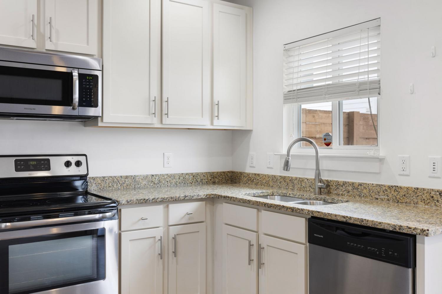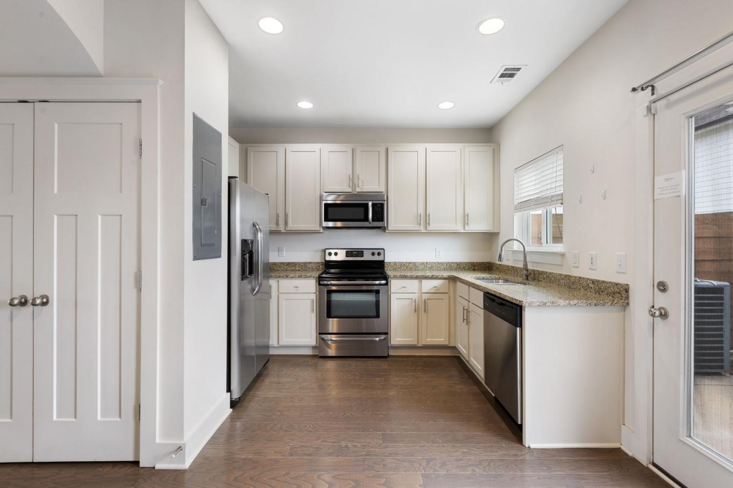 Two bedroom townhome with very spacious living areas. It is well maintained with an open kitchen format connecting to the main living space. It comes with an enclosed courtyard with room for gardening and enjoying the outdoor space. Off the courtyard is easy access to a communal grass covered space. The complex is welcoming and comes with pool access for those hot summer days. The neighborhood is walkable with easy access to nearby restaurants, bars, and activities in the Nations.
