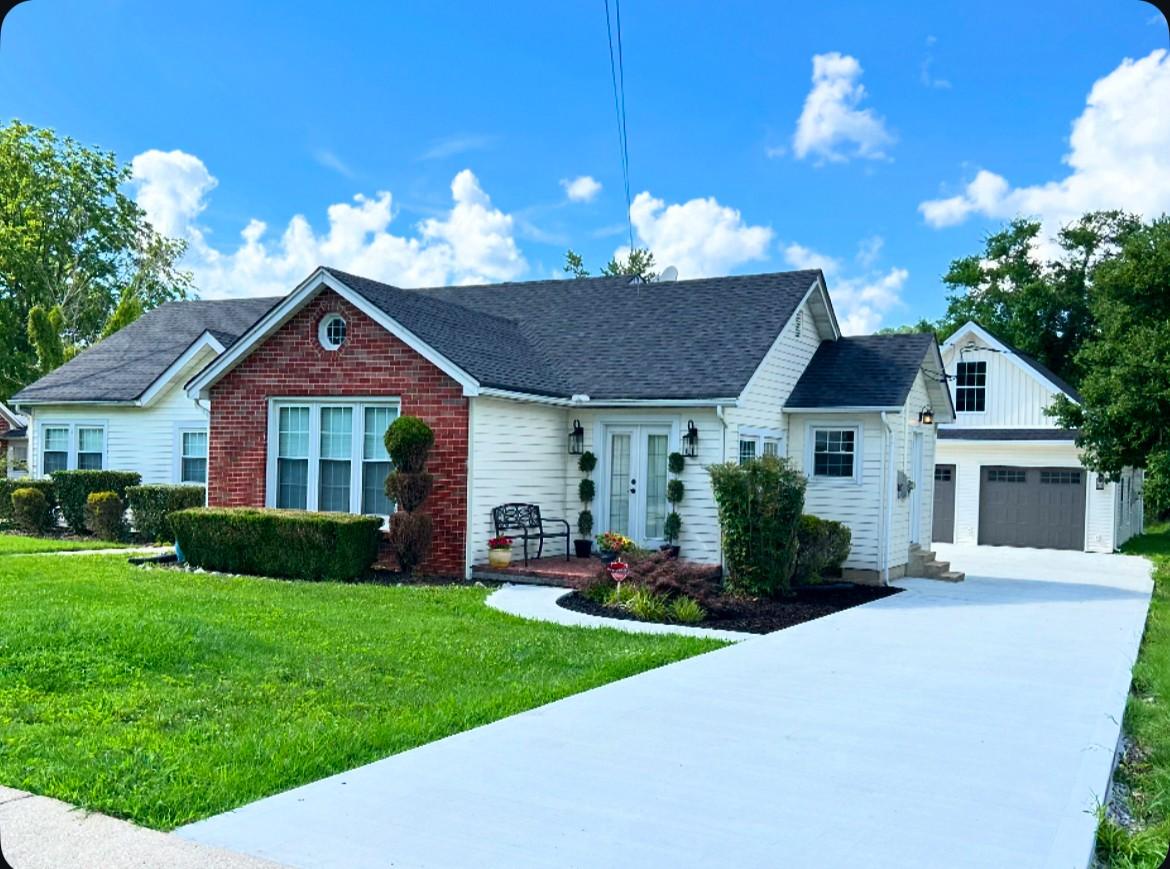 Charming Home with Dream Garage & Outdoor Oasis! Welcome home to this beautifully maintained 3-bedroom, 2-bath home featuring original hardwood floors and a cozy gas log fireplace for those perfect evenings in. The kitchen is warm and inviting, thoughtfully arranged and fully equipped with all appliances included—ready for your next family meal or gathering. The master bedroom offers a peaceful retreat with its own private bath and a spacious walk-in closet. Step outside to a brand new concrete driveway with a convenient turnaround, leading to a detached garage that’s so much more than just storage! This fully functional garage includes a full bathroom, bedroom, and an unfinished upstairs with endless potential—think guest suite, home office, or game room. You’ll also enjoy the covered outdoor space featuring a stunning stone fireplace—ideal for relaxing or entertaining with loved ones. The fenced-in backyard provides a safe and private space for children, pets, or peaceful outdoor living. This property has it all—comfort, character, and space to grow. Schedule a showing with me today!