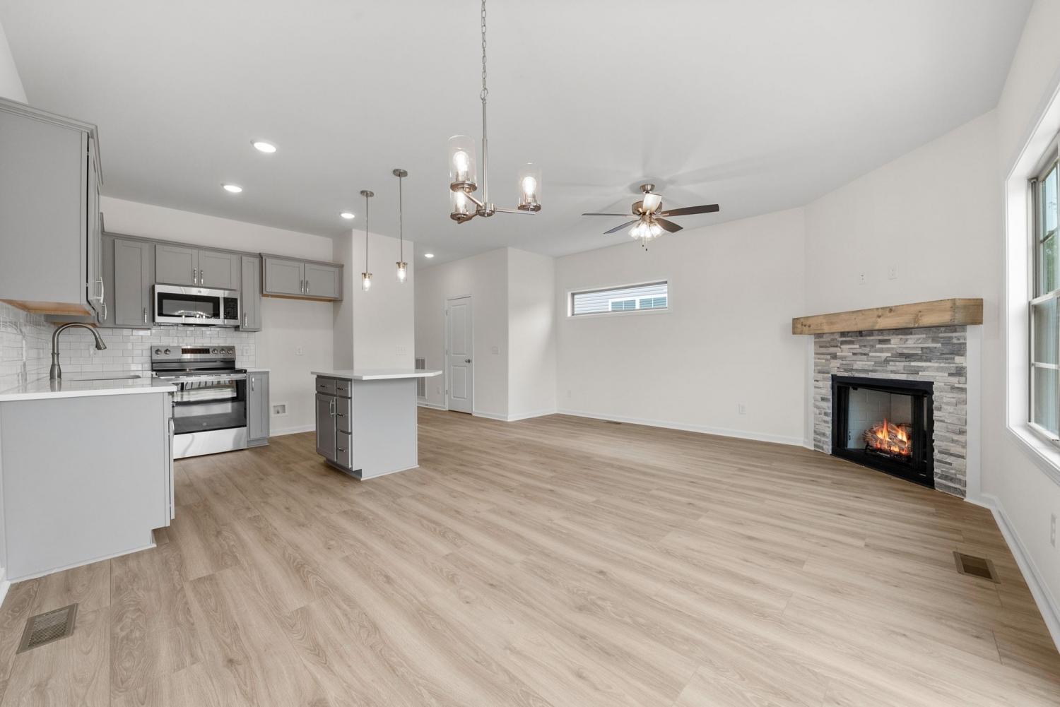 NO HOA! NEW Construction Wonderful Stylish Living Room with a Cozy Corner Fireplace Prewired for TV mount. The Open Concept flows into a Big kitchen and dining area. The kitchen is equipped with quartz countertops, Floating Shelves over Kitchen Sink. Quartz Countertop island with bar seating and additional cabinet space. Featuring stainless steel appliances. Backyard deck perfect for easy living and entertaining. 4 Bedrooms upstairs including Primary Suite is a Luxury, featuring a walk-in closet, private bath for ultimate comfort. Laundry closet upstairs for convenient living. 1 Car garage with remote garage door opener and concrete driveway. 4 Bedrooms 2.5 Baths Covered Front Porch