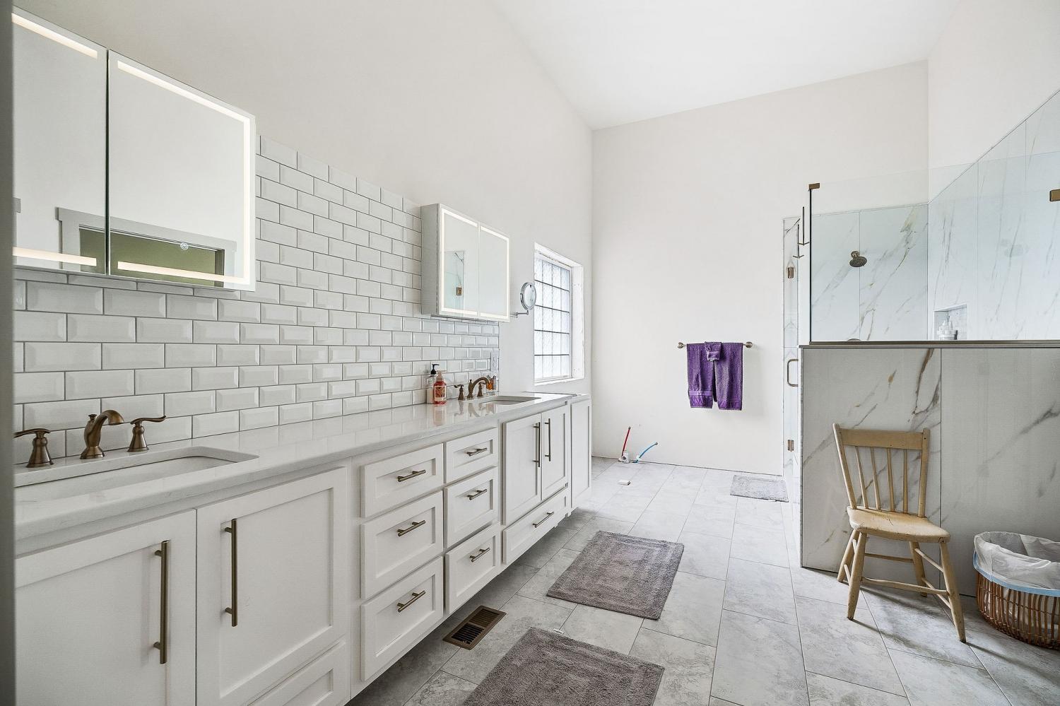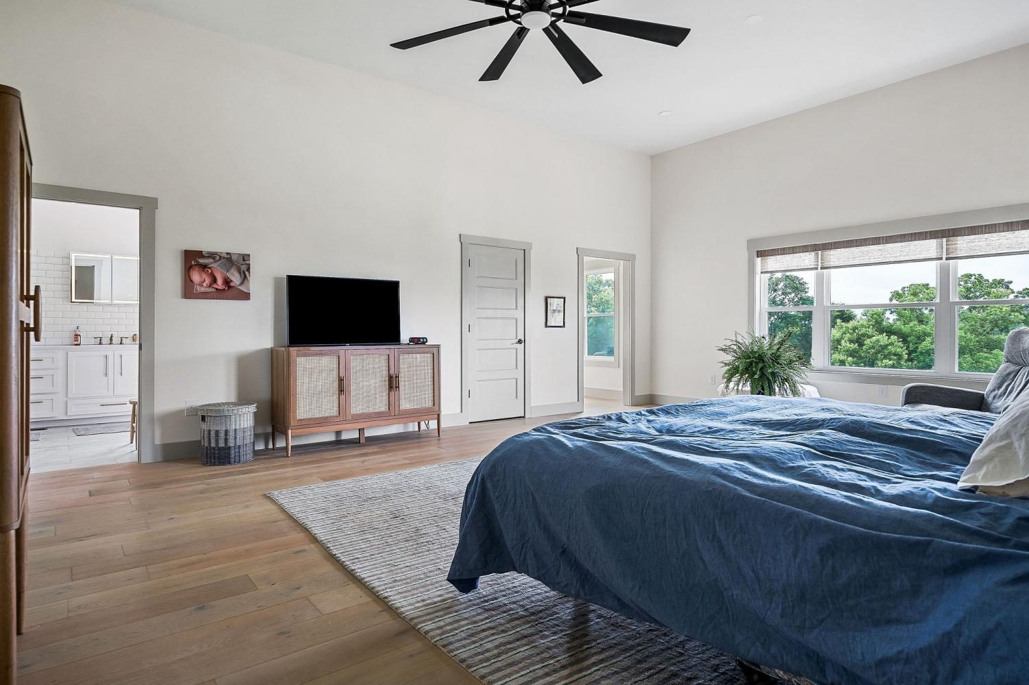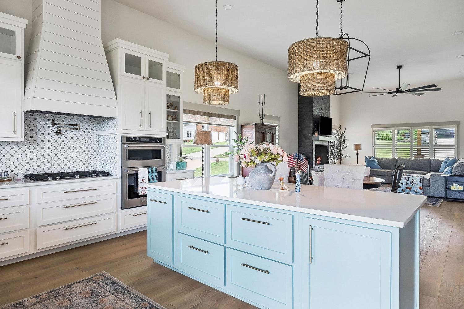 Customed designed and upgraded through out this spacious home was just completed and minimumly lived in! A rare find with over 4,000 finished square feet on the main level. Open floor plan with 12 foot ceilings throughout the main level. Plantation shutters adorn the front windows. A grand modern gas fireplace is floor to ceiling. All Stainless appliances, center island , tiled back splash, gas stove top. Walk in pantry. Main level primary suite is tremendous in space with loads of natural lighting. Covered back deck connecting primary suite and kitchen. A bath with tiled glass incased shower. Plumbed for the bath of your choice tall double vanities , with oversized walk in closet! Second floor offers 2 additional bedrooms and additional unfinished attic space. The basement boast 2900 unfinished space including a mechanical room. 2 car garage. And Additional RV or Boat Storage bay. The walk out basement door is next to the finished private quarters with over 1,100 additional finished square feet 2 rooms , a full bath , and living area plumbed for a kitchenette! Making it the perfect multigenerational living home!