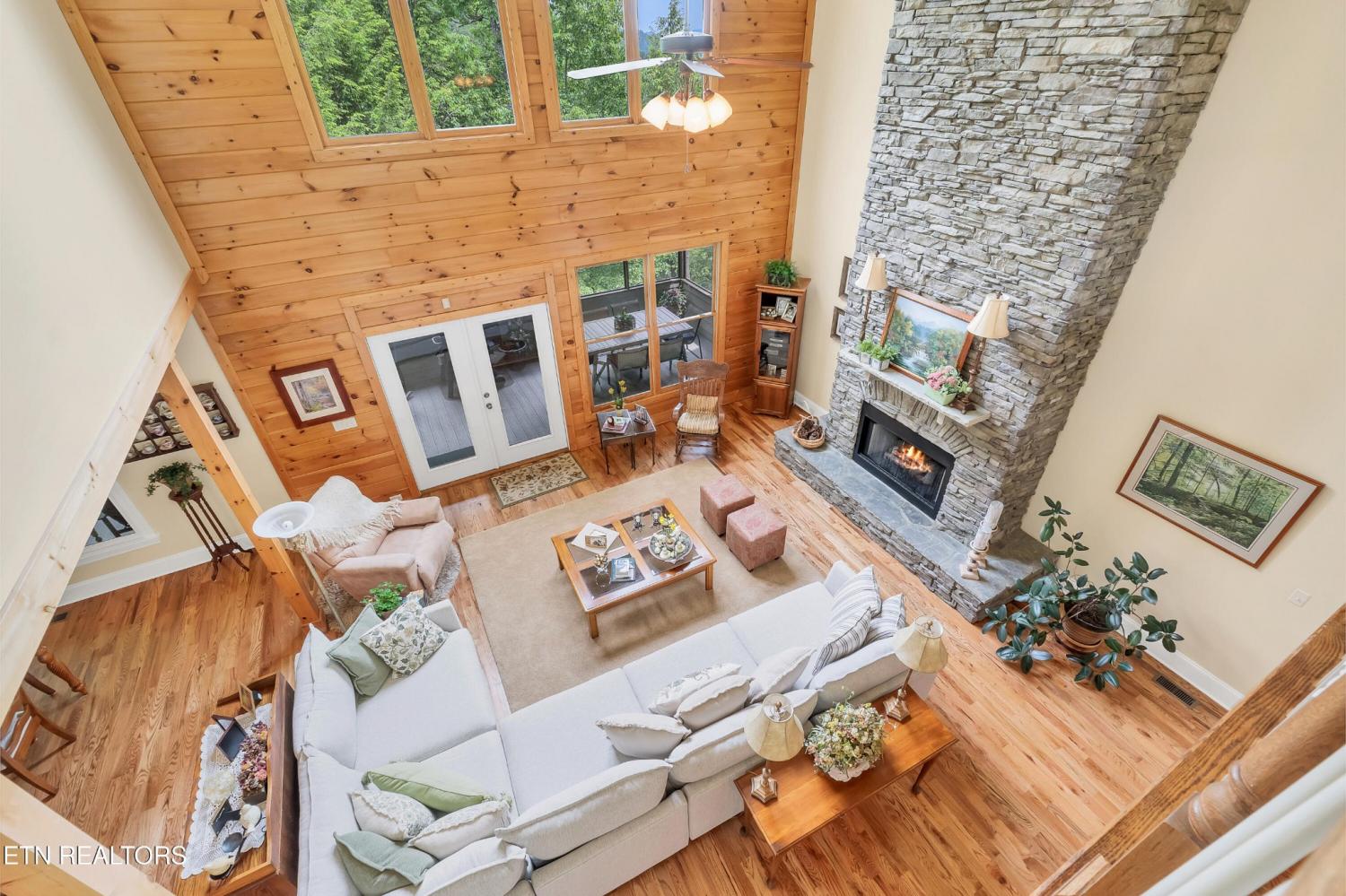 Hwy. 321 toward Townsend. Right on Old Tuckaleechee Rd. Right on Laurel Valley Rd. Upon entering through the ''Main'' Gate of Laurel Valley. Continue straight. At the yield sign of Country Club and Laurel Rd turn left. Turn Right On Hawk View Drive. Home will be the 6th house on the right. (Directly across from Blueberry Lane)