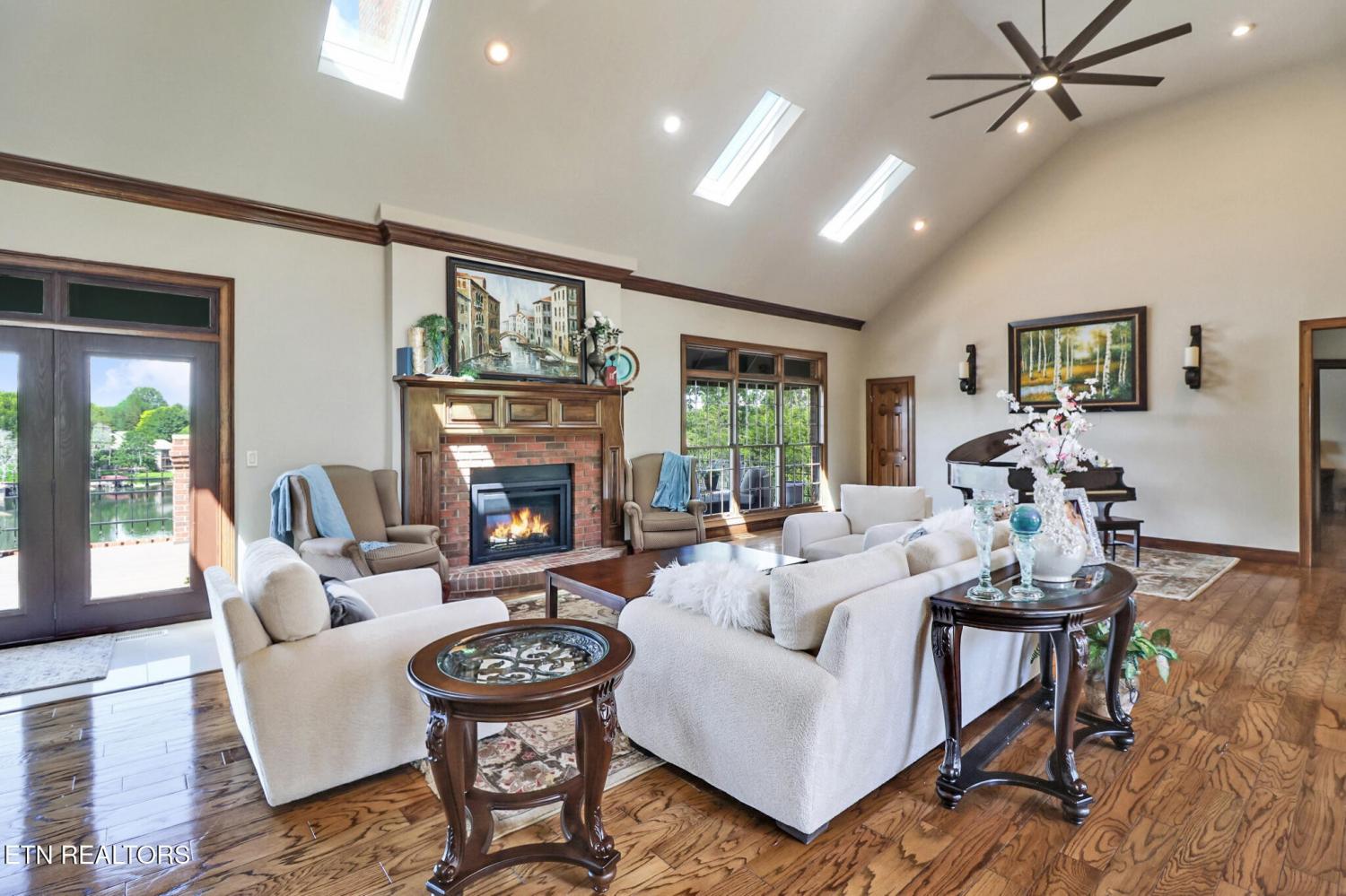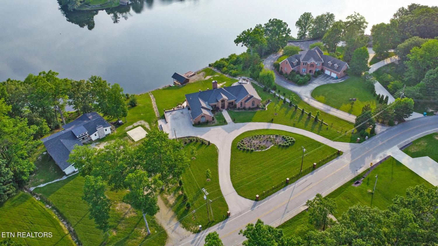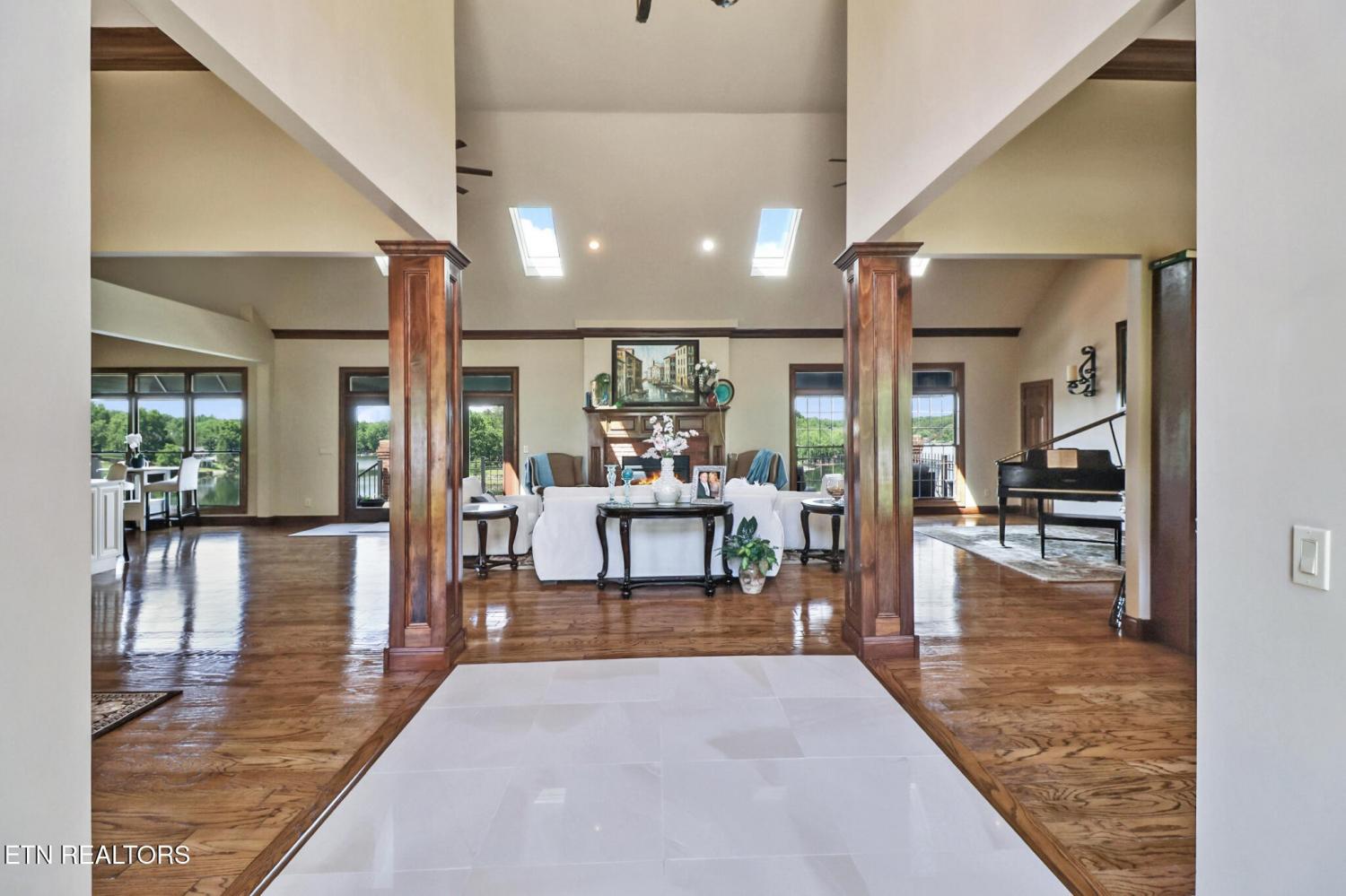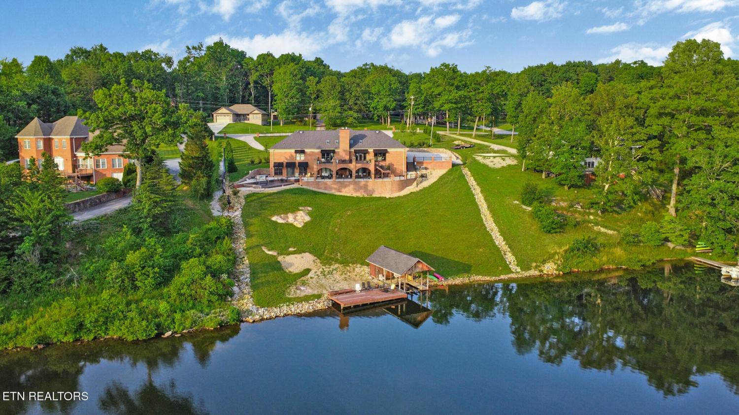 Discover Unmatched Lakefront Living in Crossville, TN—Welcome to 1042 Holiday Drive, a fully renovated, nearly 8,000 sq ft luxury estate on the tranquil shores of private Holiday Lake in the prestigious Holiday Hills subdivision. This all-brick residence has been meticulously updated inside and out, blending timeless architectural elegance with modern features, upscale finishes, and sweeping lake views. It's truly one of the most distinguished waterfront homes on the Cumberland Plateau. From the moment you step into the grand marble-tiled foyer, you're greeted by soaring vaulted ceilings, walls of windows, and rich hardwood floors that draw you into a sunlit, open-concept main level. The chef's kitchen boasts quartz countertops, hardwood cabinetry, stainless steel appliances, and a generous island—perfectly situated to overlook the lake while entertaining or relaxing. An elegant formal dining room and private office or library add functionality and charm to the space. The main level lives like a private residence, with a luxurious primary suite featuring tray ceilings, a walk-in closet, and a spa-style bath with tile shower, dual vanities, and a soaking tub. Two additional spacious bedrooms, a guest bath, a half bath, and a well-appointed laundry room complete this level. This home offers two essentially separate residences—ideal for multi-generational living, hosting guests, or future rental potential. The walk-out lower level features a private exterior entry and a complete second living space, including a full kitchen with gas range, refrigerator, microwave, dishwasher, a second laundry room, den, oversized rec room with fireplace and wet bar, and a fitness room with a refreshment station. This private lower residence adds exceptional versatility to an already expansive floor plan. Step outside to enjoy professionally landscaped grounds, accent lighting, and multiple outdoor living spaces.