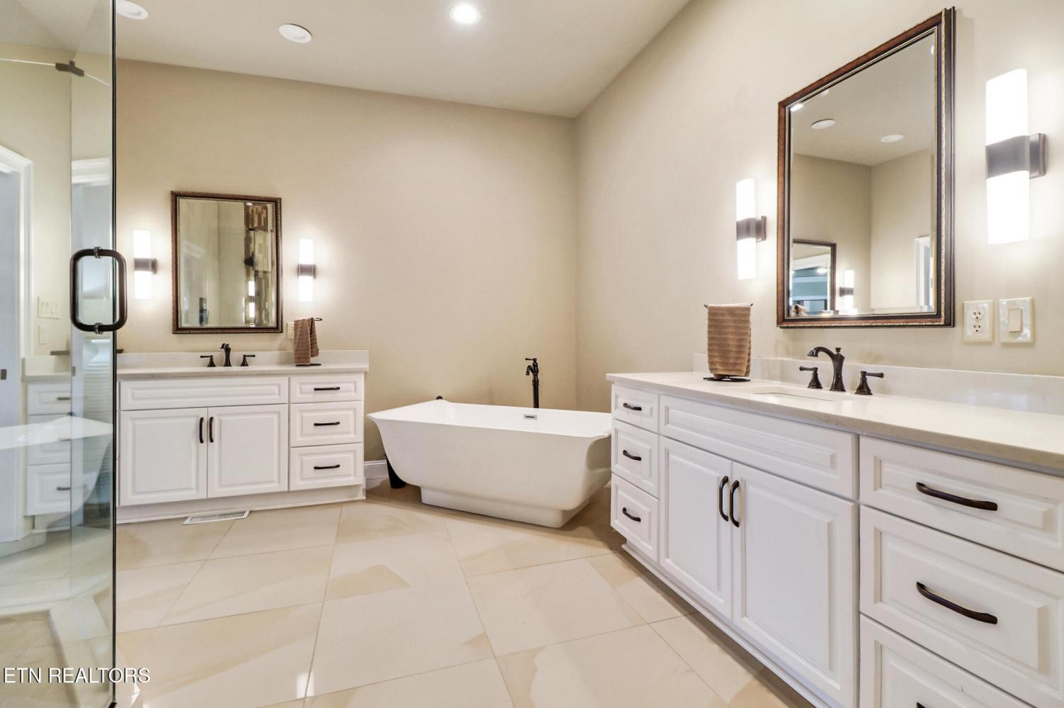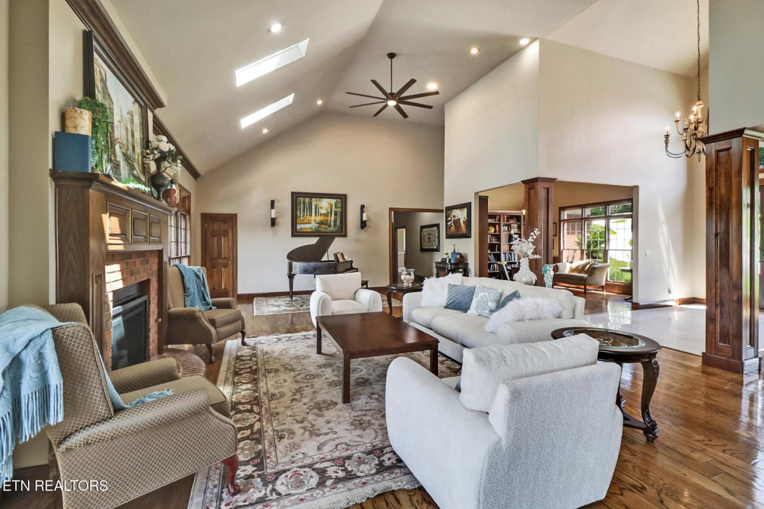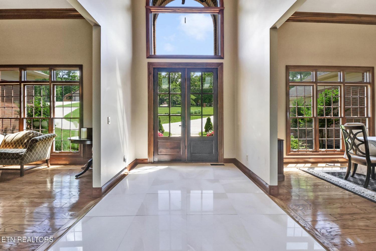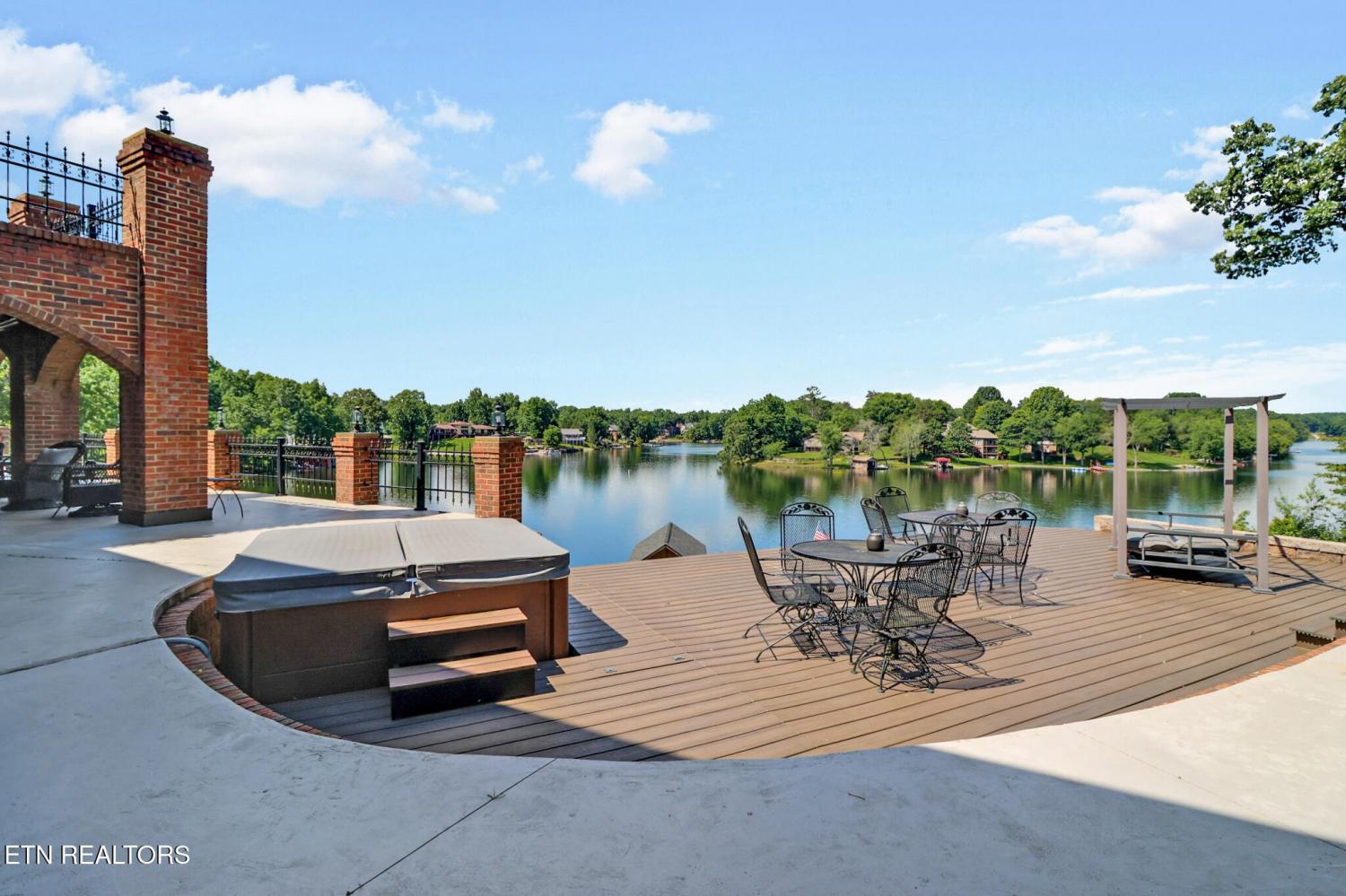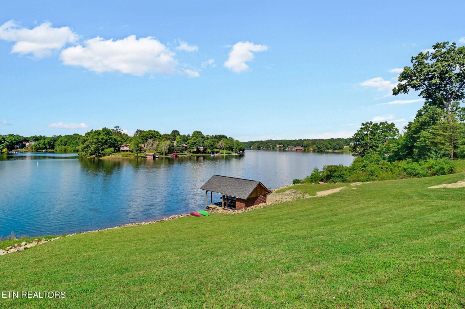 Discover Unmatched Lakefront Living in Crossville, TN—Welcome to 1042 Holiday Drive, a fully renovated, nearly 8,000 sq ft luxury estate on the tranquil shores of private Holiday Lake in the prestigious Holiday Hills subdivision. This all-brick residence has been meticulously updated inside and out, blending timeless architectural elegance with modern features, upscale finishes, and sweeping lake views. It's truly one of the most distinguished waterfront homes on the Cumberland Plateau. From the moment you step into the grand marble-tiled foyer, you're greeted by soaring vaulted ceilings, walls of windows, and rich hardwood floors that draw you into a sunlit, open-concept main level. The chef's kitchen boasts quartz countertops, hardwood cabinetry, stainless steel appliances, and a generous island—perfectly situated to overlook the lake while entertaining or relaxing. An elegant formal dining room and private office or library add functionality and charm to the space. The main level lives like a private residence, with a luxurious primary suite featuring tray ceilings, a walk-in closet, and a spa-style bath with tile shower, dual vanities, and a soaking tub. Two additional spacious bedrooms, a guest bath, a half bath, and a well-appointed laundry room complete this level. This home offers two essentially separate residences—ideal for multi-generational living, hosting guests, or future rental potential. The walk-out lower level features a private exterior entry and a complete second living space, including a full kitchen with gas range, refrigerator, microwave, dishwasher, a second laundry room, den, oversized rec room with fireplace and wet bar, and a fitness room with a refreshment station. This private lower residence adds exceptional versatility to an already expansive floor plan. Step outside to enjoy professionally landscaped grounds, accent lighting, and multiple outdoor living spaces.