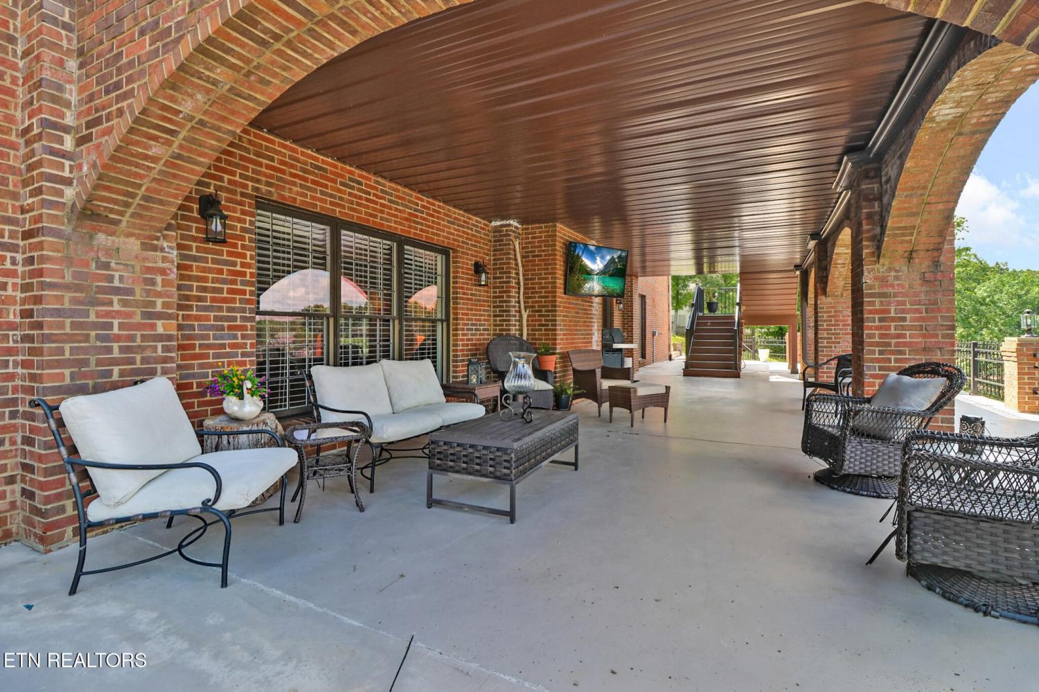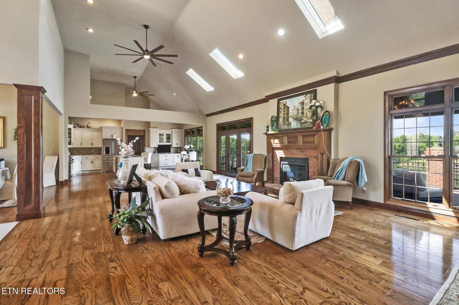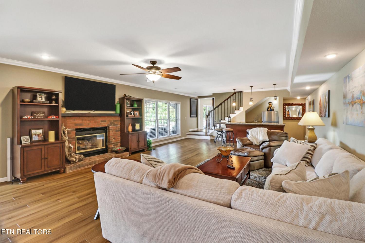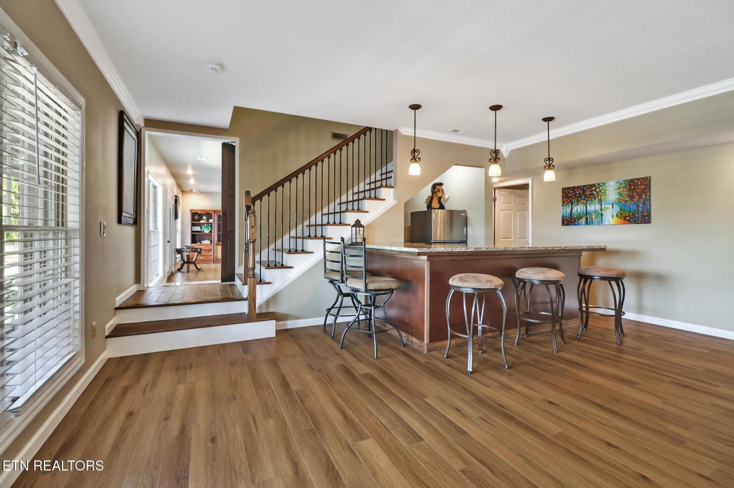 Discover Unmatched Lakefront Living in Crossville, TN—Welcome to 1042 Holiday Drive, a fully renovated, nearly 8,000 sq ft luxury estate on the tranquil shores of private Holiday Lake in the prestigious Holiday Hills subdivision. This all-brick residence has been meticulously updated inside and out, blending timeless architectural elegance with modern features, upscale finishes, and sweeping lake views. It's truly one of the most distinguished waterfront homes on the Cumberland Plateau. From the moment you step into the grand marble-tiled foyer, you're greeted by soaring vaulted ceilings, walls of windows, and rich hardwood floors that draw you into a sunlit, open-concept main level. The chef's kitchen boasts quartz countertops, hardwood cabinetry, stainless steel appliances, and a generous island—perfectly situated to overlook the lake while entertaining or relaxing. An elegant formal dining room and private office or library add functionality and charm to the space. The main level lives like a private residence, with a luxurious primary suite featuring tray ceilings, a walk-in closet, and a spa-style bath with tile shower, dual vanities, and a soaking tub. Two additional spacious bedrooms, a guest bath, a half bath, and a well-appointed laundry room complete this level. This home offers two essentially separate residences—ideal for multi-generational living, hosting guests, or future rental potential. The walk-out lower level features a private exterior entry and a complete second living space, including a full kitchen with gas range, refrigerator, microwave, dishwasher, a second laundry room, den, oversized rec room with fireplace and wet bar, and a fitness room with a refreshment station. This private lower residence adds exceptional versatility to an already expansive floor plan. Step outside to enjoy professionally landscaped grounds, accent lighting, and multiple outdoor living spaces.