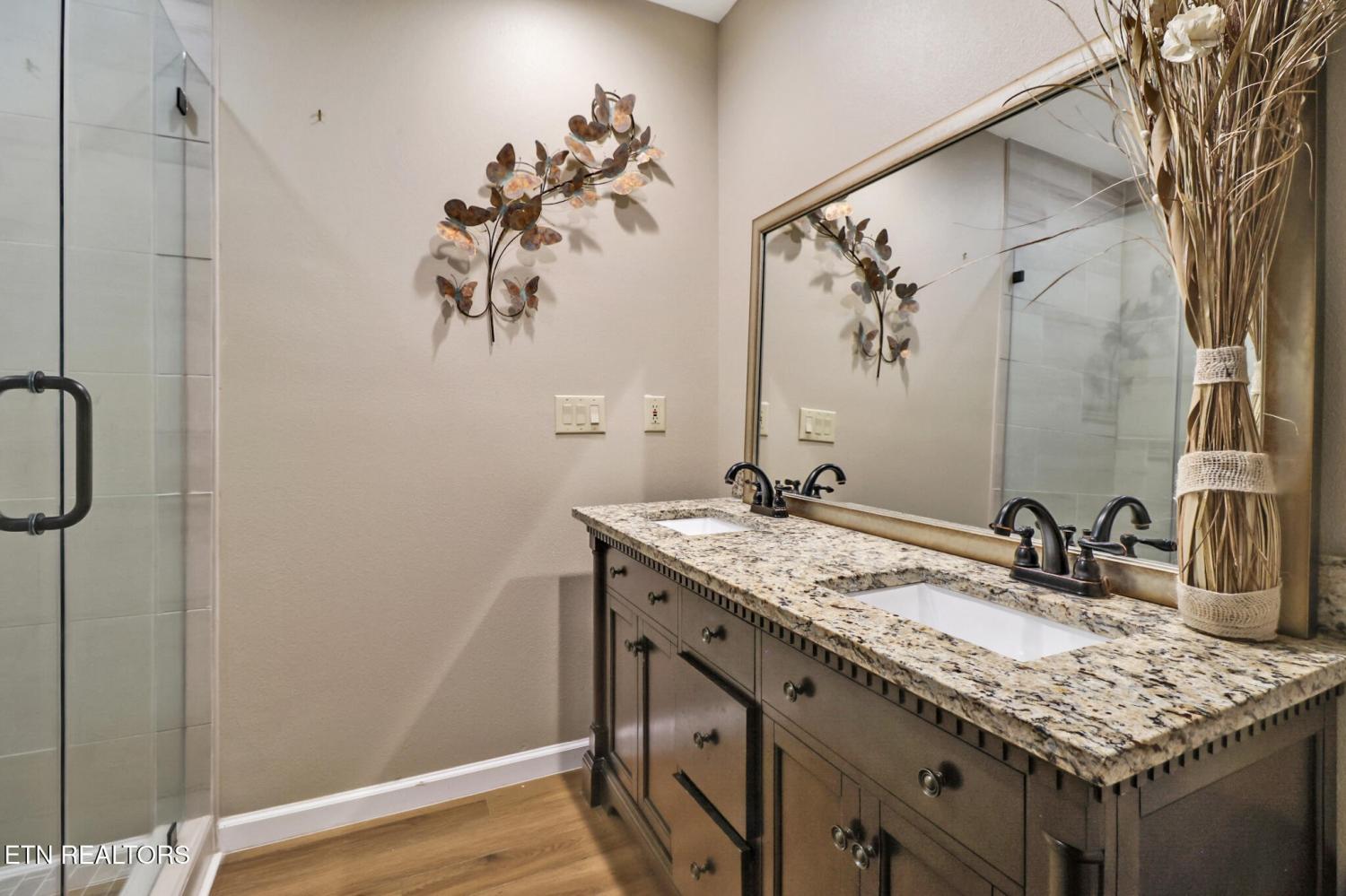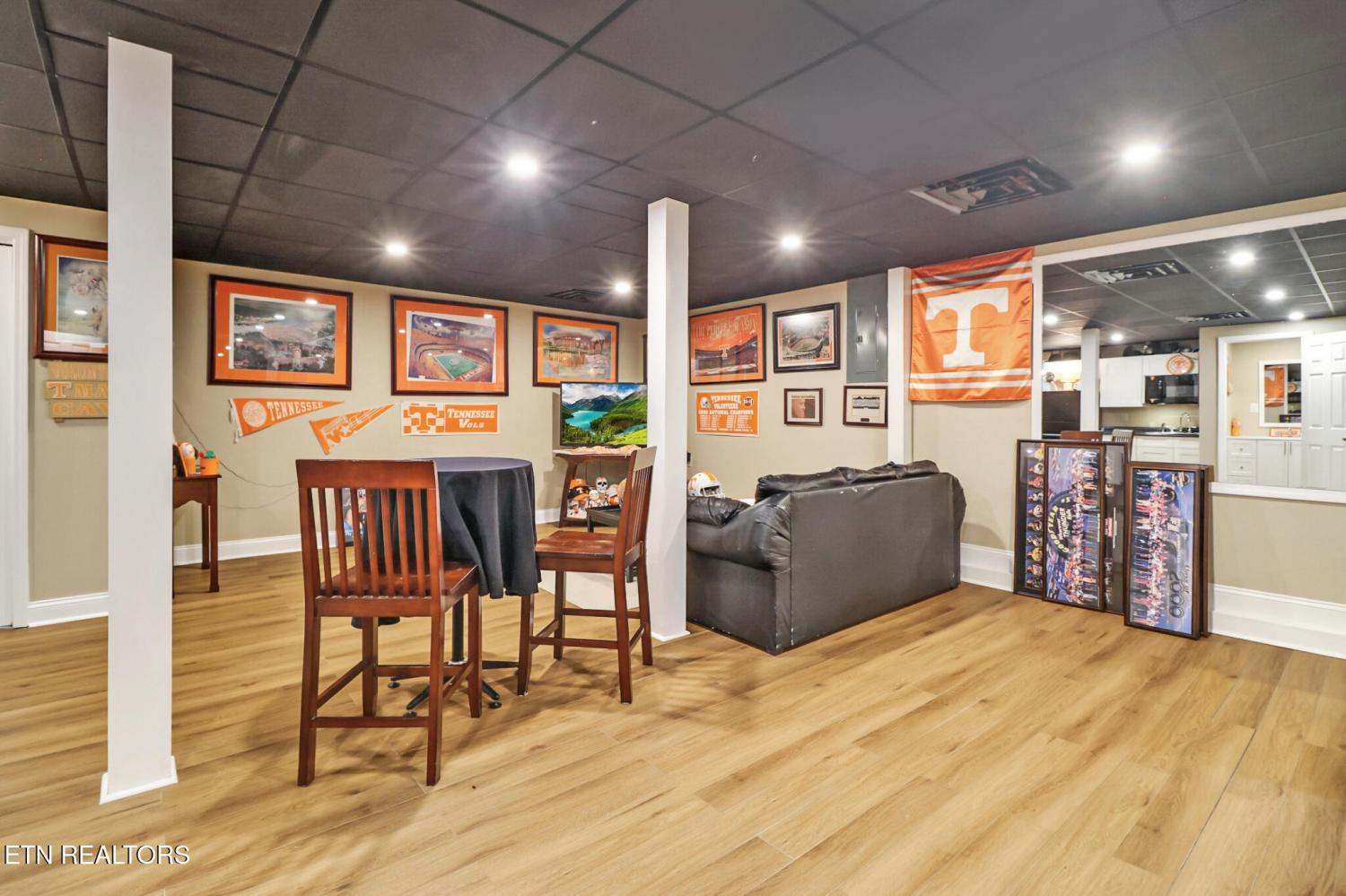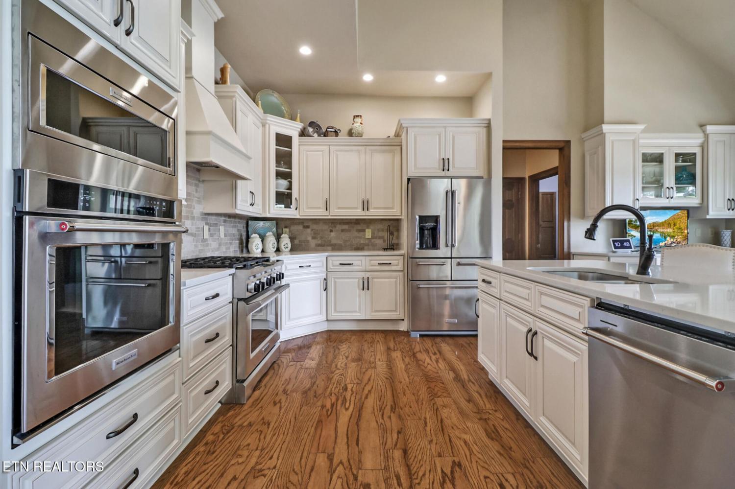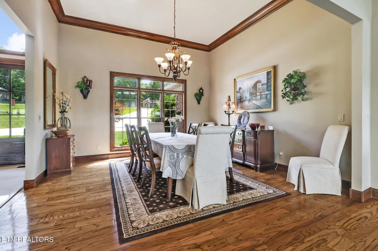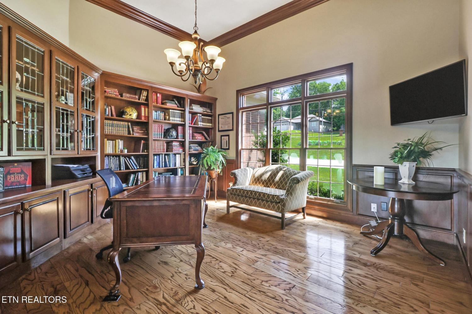 Discover Unmatched Lakefront Living in Crossville, TN—Welcome to 1042 Holiday Drive, a fully renovated, nearly 8,000 sq ft luxury estate on the tranquil shores of private Holiday Lake in the prestigious Holiday Hills subdivision. This all-brick residence has been meticulously updated inside and out, blending timeless architectural elegance with modern features, upscale finishes, and sweeping lake views. It's truly one of the most distinguished waterfront homes on the Cumberland Plateau. From the moment you step into the grand marble-tiled foyer, you're greeted by soaring vaulted ceilings, walls of windows, and rich hardwood floors that draw you into a sunlit, open-concept main level. The chef's kitchen boasts quartz countertops, hardwood cabinetry, stainless steel appliances, and a generous island—perfectly situated to overlook the lake while entertaining or relaxing. An elegant formal dining room and private office or library add functionality and charm to the space. The main level lives like a private residence, with a luxurious primary suite featuring tray ceilings, a walk-in closet, and a spa-style bath with tile shower, dual vanities, and a soaking tub. Two additional spacious bedrooms, a guest bath, a half bath, and a well-appointed laundry room complete this level. This home offers two essentially separate residences—ideal for multi-generational living, hosting guests, or future rental potential. The walk-out lower level features a private exterior entry and a complete second living space, including a full kitchen with gas range, refrigerator, microwave, dishwasher, a second laundry room, den, oversized rec room with fireplace and wet bar, and a fitness room with a refreshment station. This private lower residence adds exceptional versatility to an already expansive floor plan. Step outside to enjoy professionally landscaped grounds, accent lighting, and multiple outdoor living spaces.