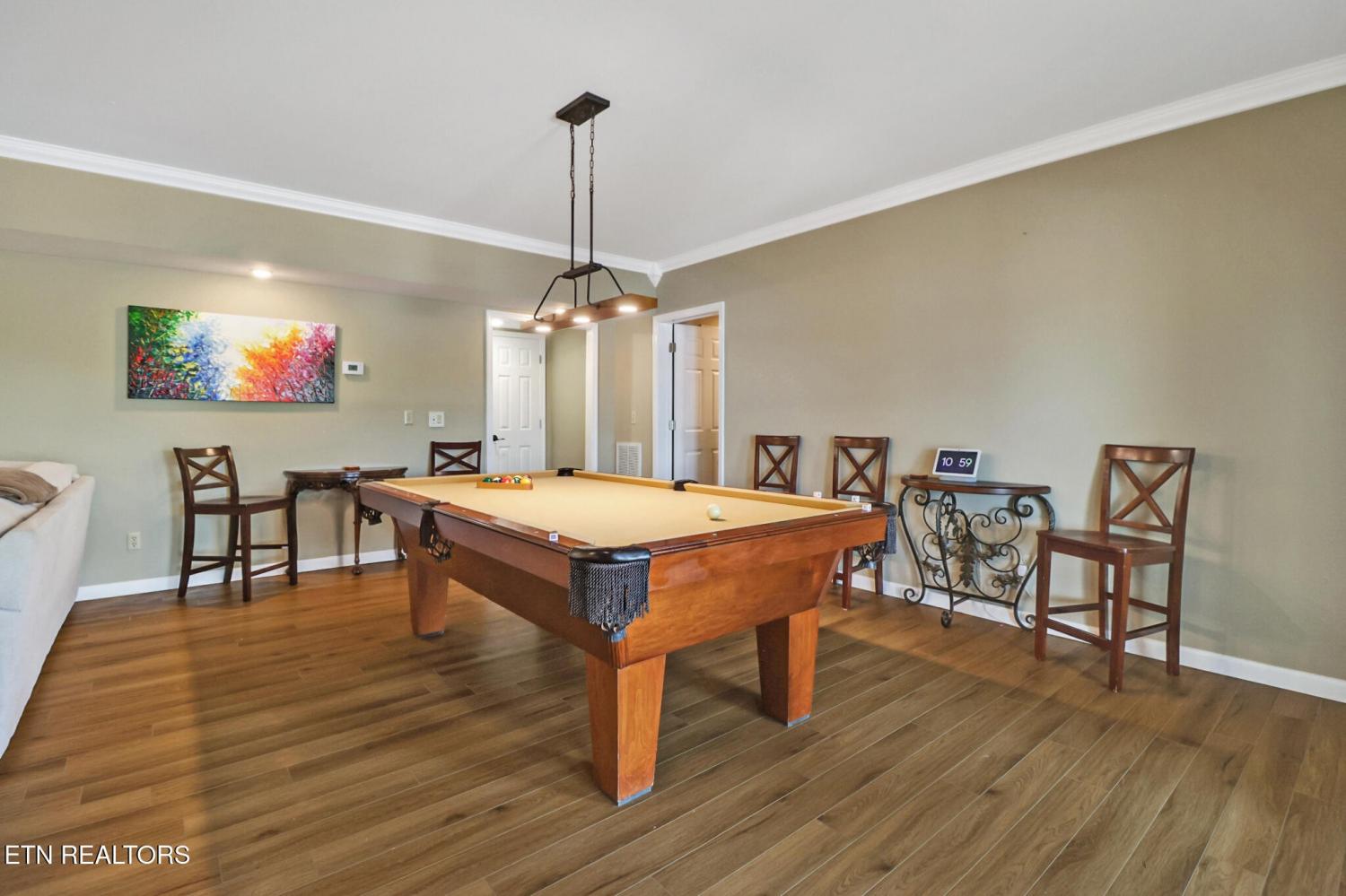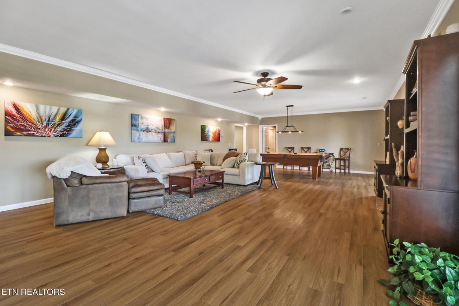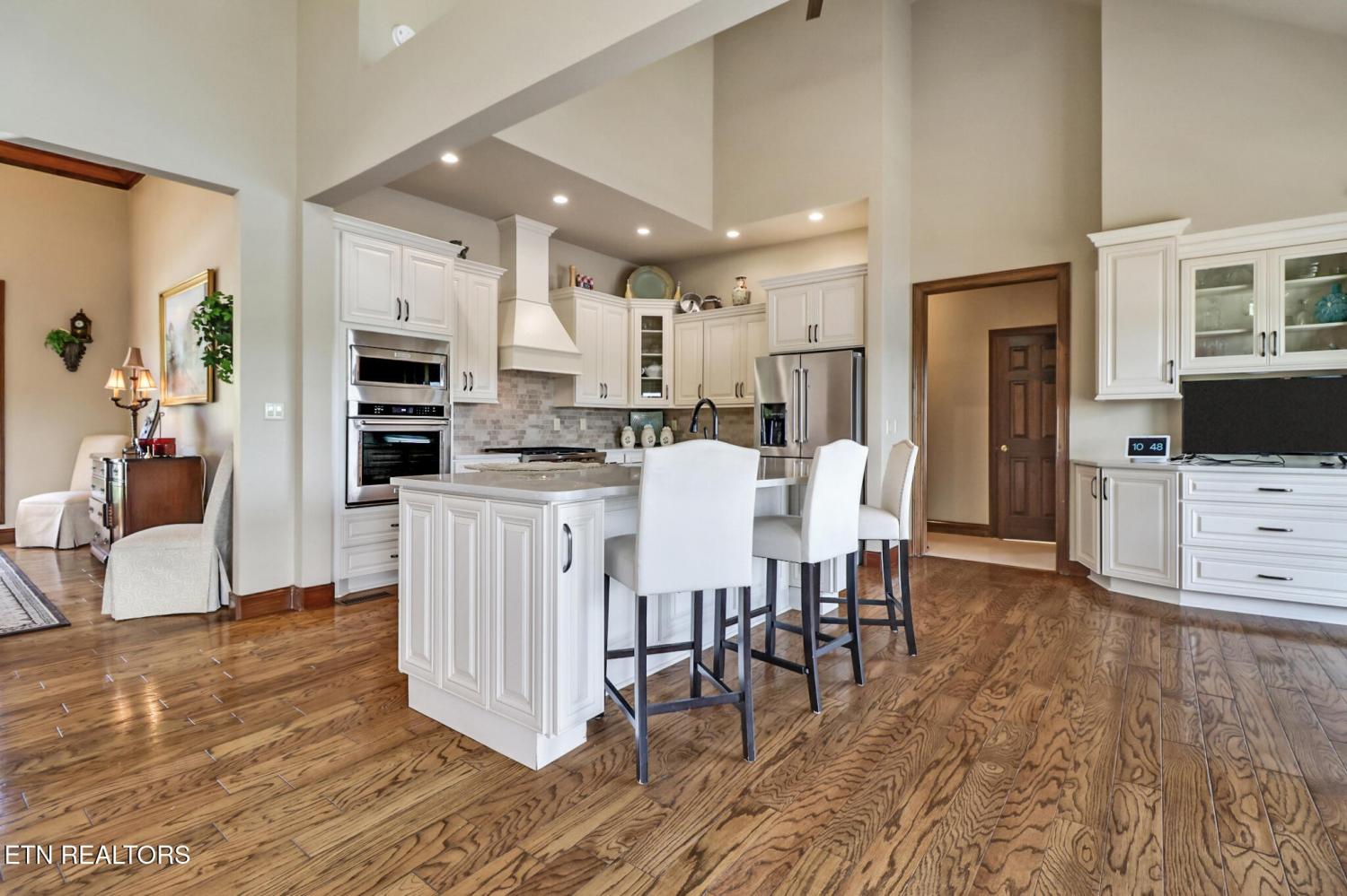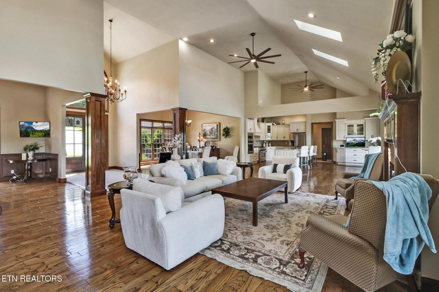 Discover Unmatched Lakefront Living in Crossville, TN—Welcome to 1042 Holiday Drive, a fully renovated, nearly 8,000 sq ft luxury estate on the tranquil shores of private Holiday Lake in the prestigious Holiday Hills subdivision. This all-brick residence has been meticulously updated inside and out, blending timeless architectural elegance with modern features, upscale finishes, and sweeping lake views. It's truly one of the most distinguished waterfront homes on the Cumberland Plateau. From the moment you step into the grand marble-tiled foyer, you're greeted by soaring vaulted ceilings, walls of windows, and rich hardwood floors that draw you into a sunlit, open-concept main level. The chef's kitchen boasts quartz countertops, hardwood cabinetry, stainless steel appliances, and a generous island—perfectly situated to overlook the lake while entertaining or relaxing. An elegant formal dining room and private office or library add functionality and charm to the space. The main level lives like a private residence, with a luxurious primary suite featuring tray ceilings, a walk-in closet, and a spa-style bath with tile shower, dual vanities, and a soaking tub. Two additional spacious bedrooms, a guest bath, a half bath, and a well-appointed laundry room complete this level. This home offers two essentially separate residences—ideal for multi-generational living, hosting guests, or future rental potential. The walk-out lower level features a private exterior entry and a complete second living space, including a full kitchen with gas range, refrigerator, microwave, dishwasher, a second laundry room, den, oversized rec room with fireplace and wet bar, and a fitness room with a refreshment station. This private lower residence adds exceptional versatility to an already expansive floor plan. Step outside to enjoy professionally landscaped grounds, accent lighting, and multiple outdoor living spaces.