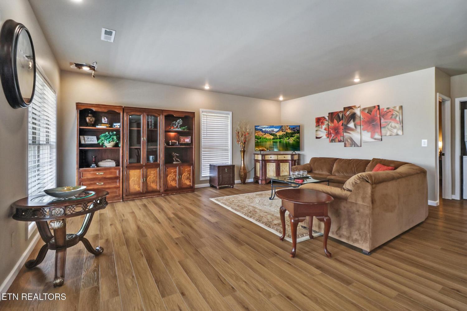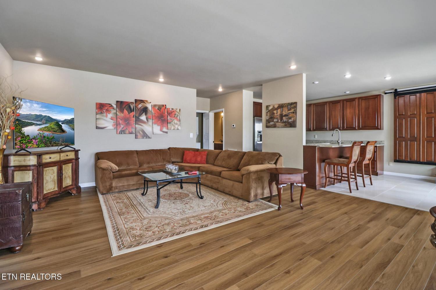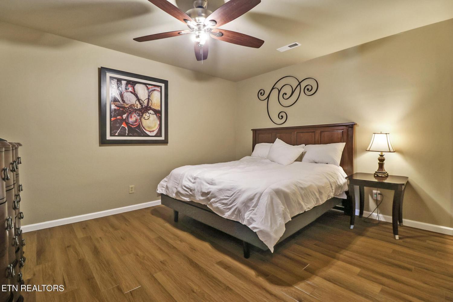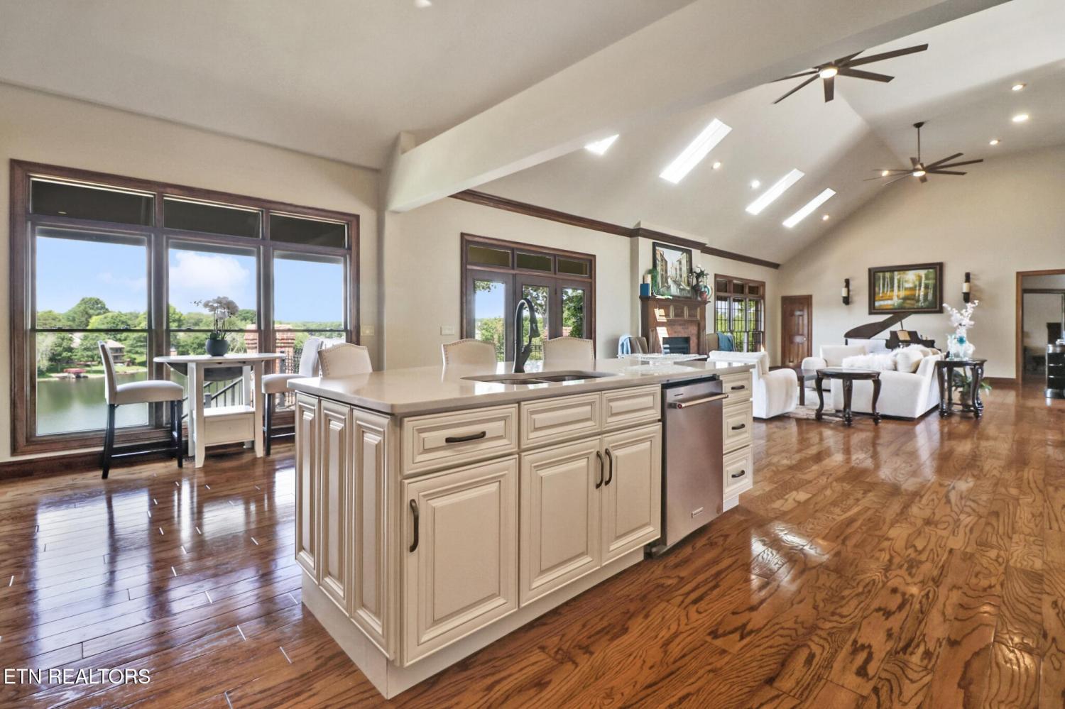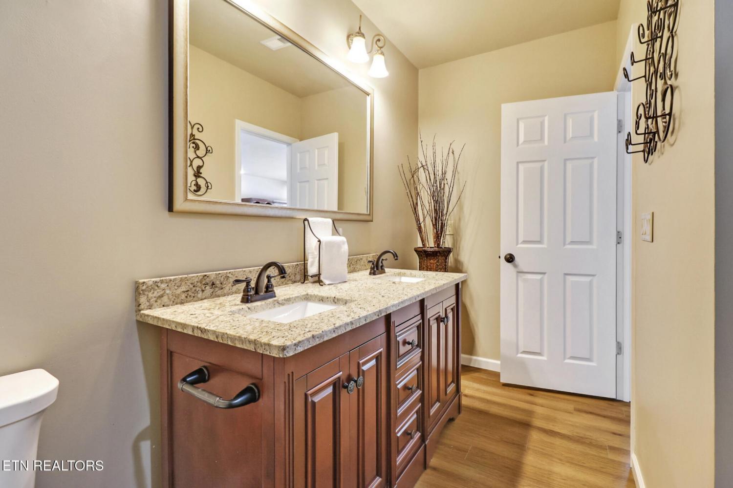 Discover Unmatched Lakefront Living in Crossville, TN—Welcome to 1042 Holiday Drive, a fully renovated, nearly 8,000 sq ft luxury estate on the tranquil shores of private Holiday Lake in the prestigious Holiday Hills subdivision. This all-brick residence has been meticulously updated inside and out, blending timeless architectural elegance with modern features, upscale finishes, and sweeping lake views. It's truly one of the most distinguished waterfront homes on the Cumberland Plateau. From the moment you step into the grand marble-tiled foyer, you're greeted by soaring vaulted ceilings, walls of windows, and rich hardwood floors that draw you into a sunlit, open-concept main level. The chef's kitchen boasts quartz countertops, hardwood cabinetry, stainless steel appliances, and a generous island—perfectly situated to overlook the lake while entertaining or relaxing. An elegant formal dining room and private office or library add functionality and charm to the space. The main level lives like a private residence, with a luxurious primary suite featuring tray ceilings, a walk-in closet, and a spa-style bath with tile shower, dual vanities, and a soaking tub. Two additional spacious bedrooms, a guest bath, a half bath, and a well-appointed laundry room complete this level. This home offers two essentially separate residences—ideal for multi-generational living, hosting guests, or future rental potential. The walk-out lower level features a private exterior entry and a complete second living space, including a full kitchen with gas range, refrigerator, microwave, dishwasher, a second laundry room, den, oversized rec room with fireplace and wet bar, and a fitness room with a refreshment station. This private lower residence adds exceptional versatility to an already expansive floor plan. Step outside to enjoy professionally landscaped grounds, accent lighting, and multiple outdoor living spaces.