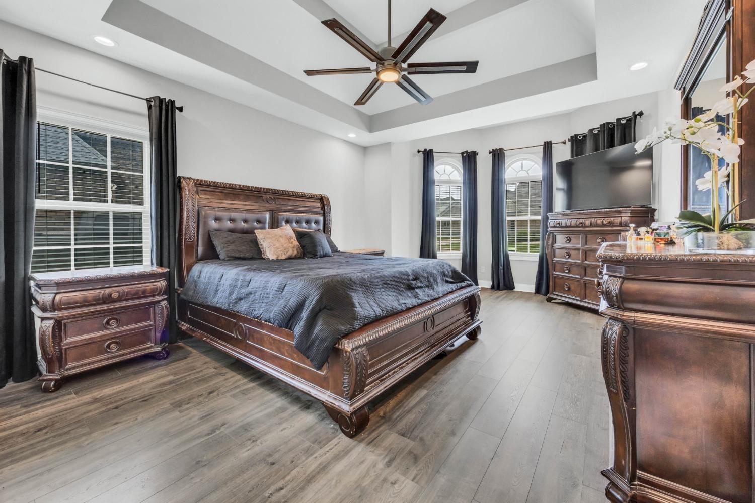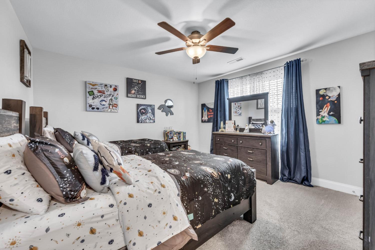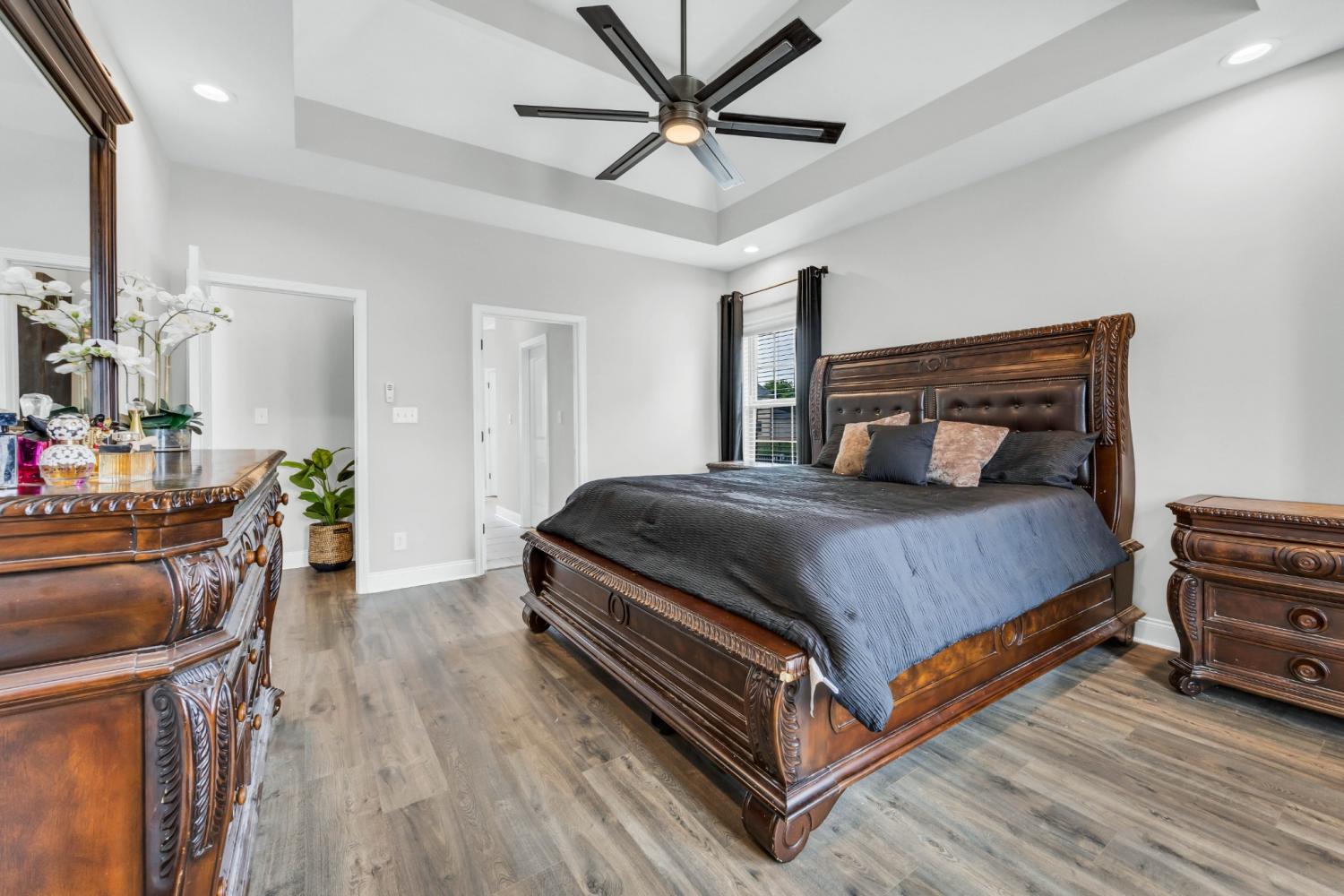 VA ASSUMABLE LOAN option available at 2.875%!!!! This property offers a unique opportunity for eligible buyers to secure their dream home today! This stunning home is the perfect living space for comfortable living and entertaining. Enjoy the convenience of an attached three car garage with keypad entry, offering both convenience and security. Featuring soaring 20-foot ceilings, this home creates an open, airy atmosphere perfect for both relaxing and entertaining. Inside you’ll find five generously sized bedrooms, a bonus room, hardwood floors, a cozy fireplace, and ample storage space. The kitchen is complemented by a brand new five-burner gas cooktop and soft-close cabinets and drawers throughout for a sleek, functional aesthetic. Primary on main level featuring double trey ceiling w/ sitting area and 3 bay windows for natural sunlight, a dedicated laundry room with sink and under-cabinet storage, and separate heating and cooling units ensuring optimal comfort in every space. The home’s large, covered patio/porch extends your living space outdoors, situated on 0.73 lot, this property offers endless possibilities for creating your dream outdoor oasis. Located in the desirable Hartley Hills Subdivision with access to quality schools, shopping, and amenities. Ready to make this house your home?
