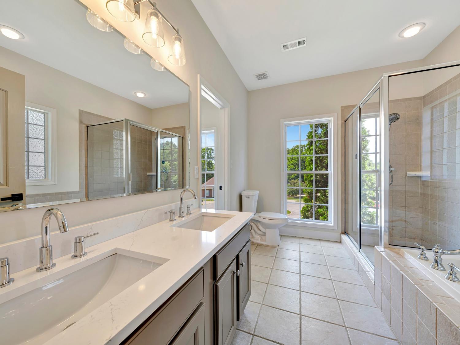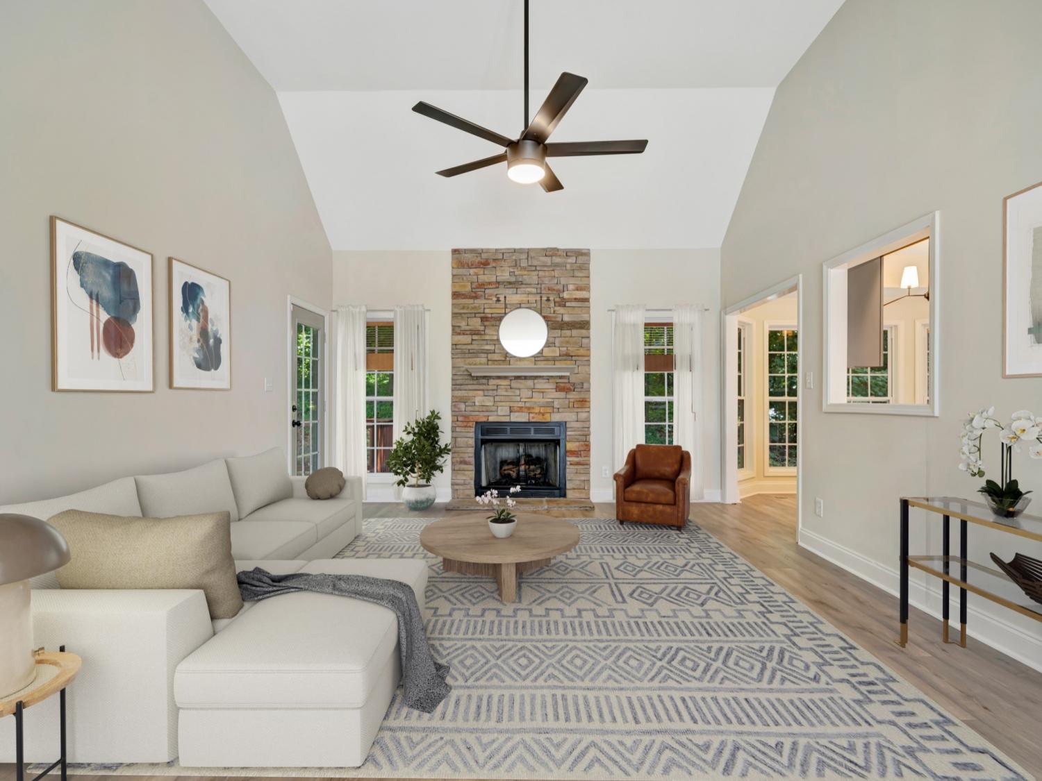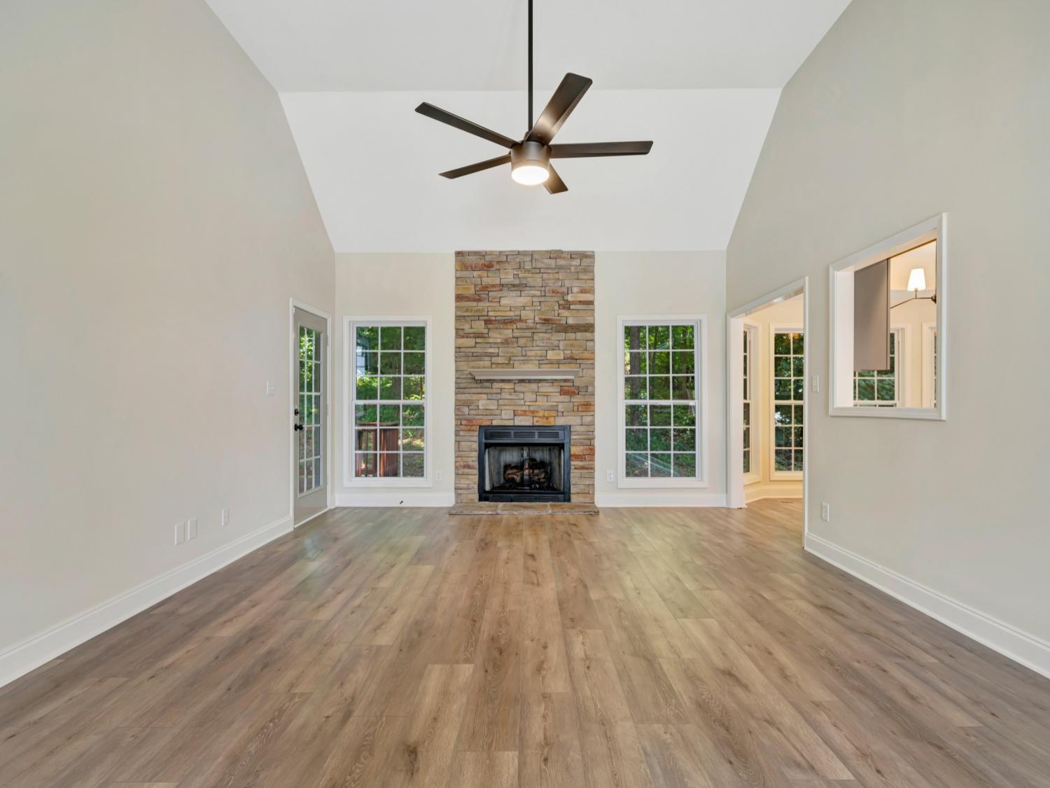 If you’ve been looking for a beautiful renovation with space, style, and in the perfect neighborhood—1986 Stone Valley Ct checks every box. Perched on a hill at the end of a quiet cul-de-sac, this home has been fully refreshed with new LVP and carpet throughout, fresh paint, updated finishes, and a completely renovated kitchen with brand-new countertops, backsplash, and stainless steel appliances. The layout flows effortlessly from a spacious living room with a cozy gas fireplace to a large dining area and an open kitchen designed for gathering. The main-level primary suite is oversized and inviting, complete with a whirlpool tub, walk-in shower, and deep walk-in closet. Two additional bedrooms and a full bath complete the main floor, while the fourth bedroom and a third full bath are tucked downstairs—perfect for guests or a quiet home office setup. Downstairs, a large finished rec room gives you the flexibility to spread out—ideal for movie nights, game days, or anything in between. Step outside to the covered back porch overlooking a private backyard, just right for morning coffee or evening cocktails. With a two-car garage, thoughtful updates throughout, and a location in one of Clarksville’s most sought-after neighborhoods, this home is truly move-in ready.