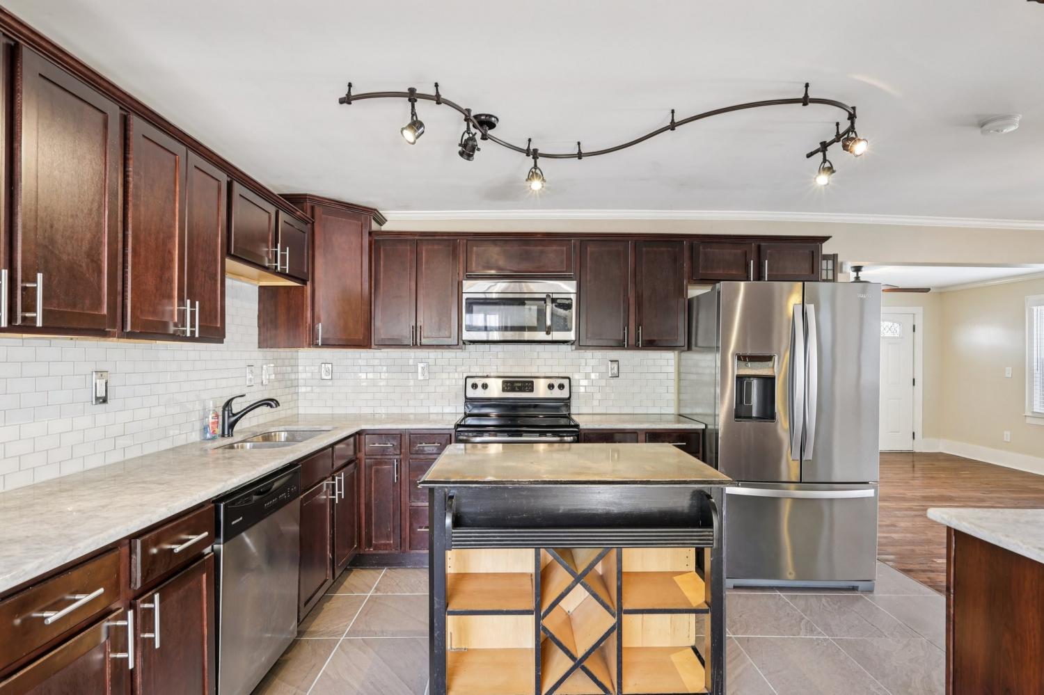 Mortgage savings may be available for buyers of this listing. Welcome to this charming and updated stone cottage just minutes from the heart of Nashville! Perfectly situated less than 3 miles from Downtown, Germantown, Midtown, and The Nations, this home offers both character and convenience. Step inside to a bright, open-concept living space filled with natural light and a cozy fireplace. The kitchen includes stainless steel appliances, marble countertops, and a classic tile backsplash. Enjoy modern features like a tankless water heater, a security system with cameras, and no carpet—only hardwood and tile flooring throughout. The exterior is just as impressive with a spacious, fully fenced backyard with alley access, a deck perfect for outdoor dining and entertaining, hot tub connection, and a long driveway that leads to a unique extended detached garage. The garage is truly special, built with a castle-inspired addition and features a rooftop with a firepit. This one-of-a-kind property blends timeless charm with modern touches—don’t miss your chance to own a piece of Nashville! Mortgage savings may be available for buyers of this listing