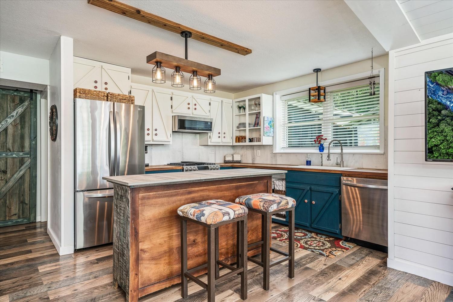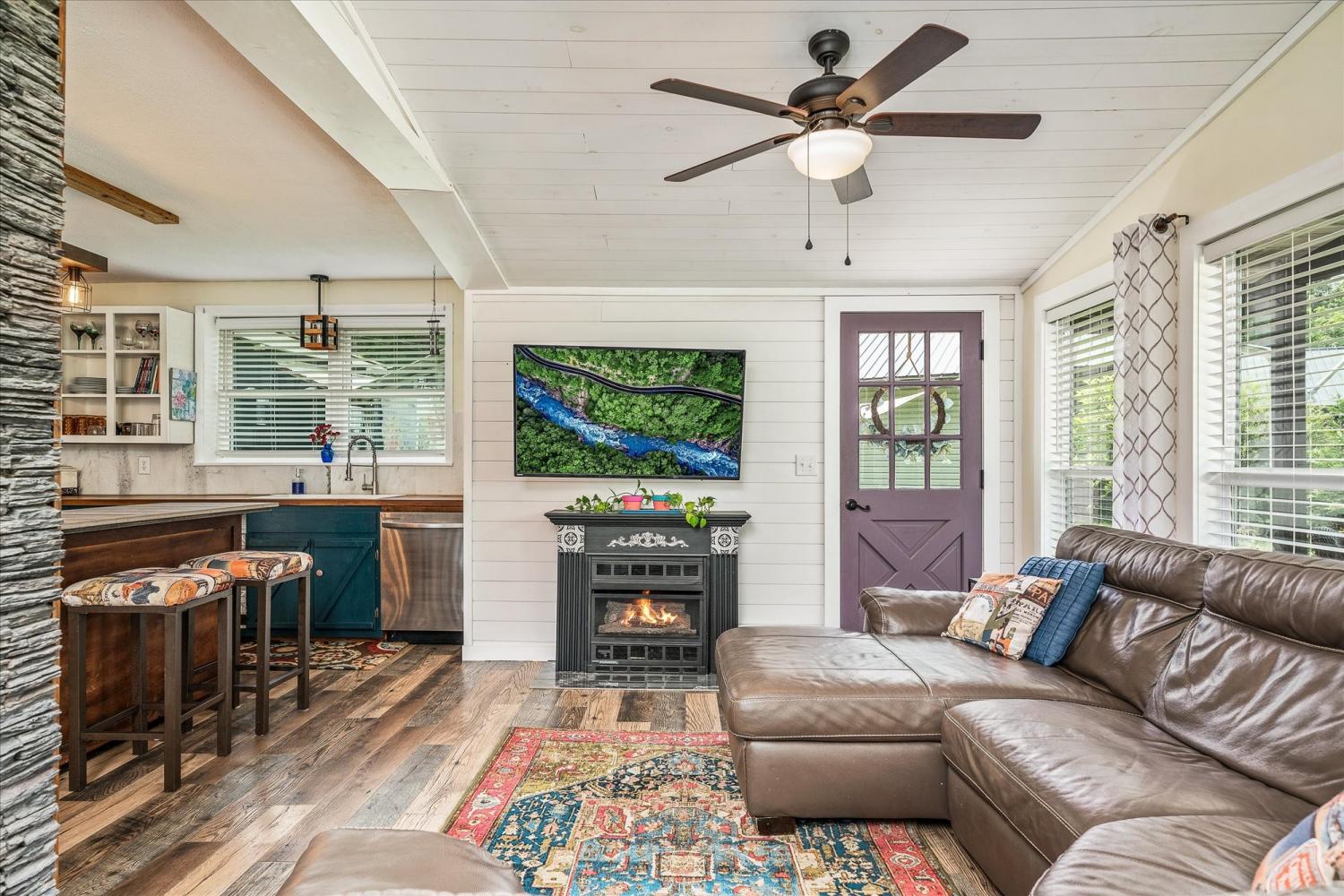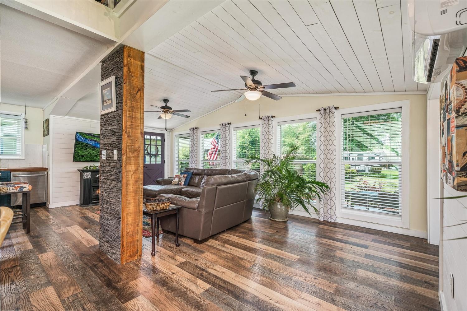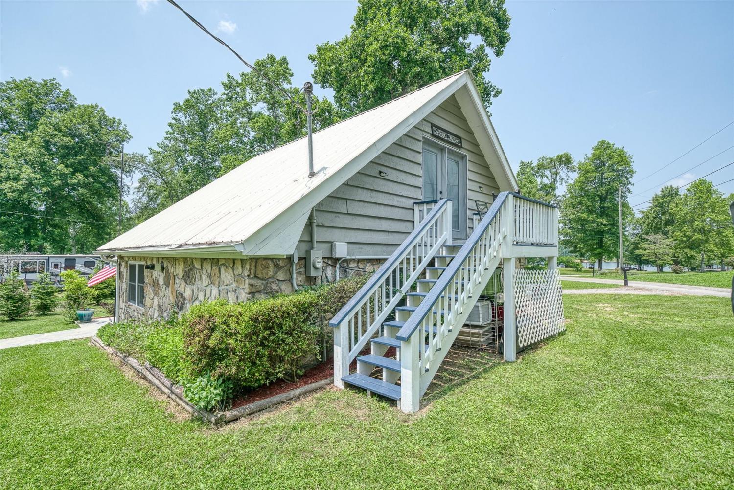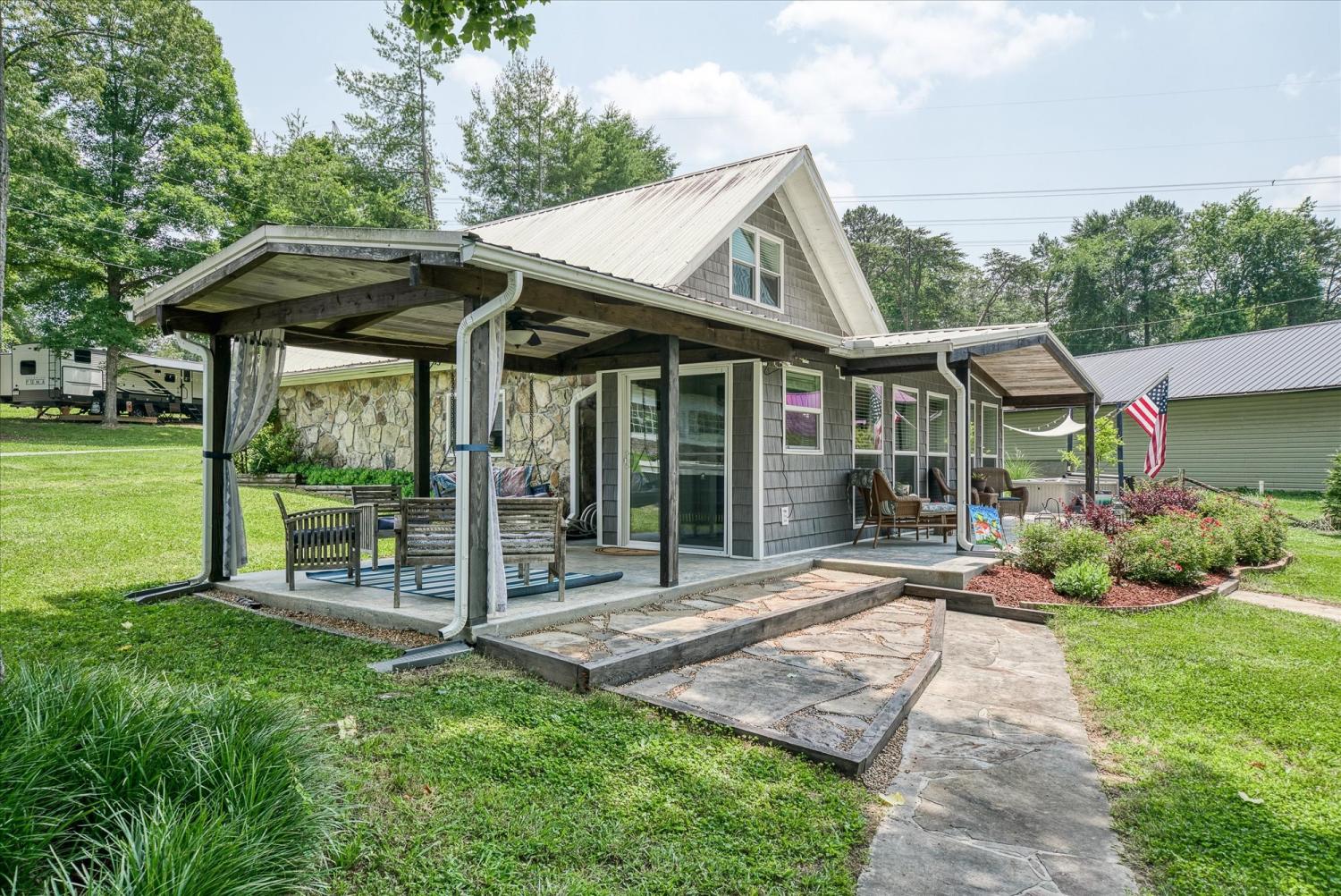 Experience the serene charm of lakefront living on the tranquil waters of Watts Bar Lake. This delightful 3-bedroom, 2-bathroom cottage has been thoughtfully updated, making it the perfect getaway for your family or an attractive vacation rental opportunity. Step inside to find a bright and airy atmosphere, highlighted by stunning vaulted ceilings and a striking natural stone accent wall. The cozy propane fireplace, along with shiplap details, creates an inviting ambiance, ideal for unwinding after a day on the water. The modern kitchen opens up to the living area, featuring stylish butcher block countertops, a chic marble backsplash, and top-notch stainless steel appliances. Retreat to the master suite, which offers direct access to a spacious deck overlooking the peaceful lake, perfect for morning coffee or evening sunsets. The versatile loft area provides additional sleeping space for guests, ensuring everyone feels right at home. Outside, an oversized workshop and storage shed offer ample room for your hobbies and outdoor gear. Enjoy two covered docks, RV hookups, and two cozy fire pits, perfect for gathering with friends and family under the stars. Additional outdoor features include a large picnic area, a charming brick fireplace, an herb garden, and a soothing hot tub, all conveniently located near local marinas and dining options. With adjacent TVA land ensuring no future construction can encroach upon your view, you can fully embrace your peace and privacy. This lakeside retreat is a perfect blend of relaxation and adventure—whether you envision it as your tranquil second home or a savvy investment opportunity, a life of comfort and delightful lake living awaits you! 13 month home warranty for peace of mind.