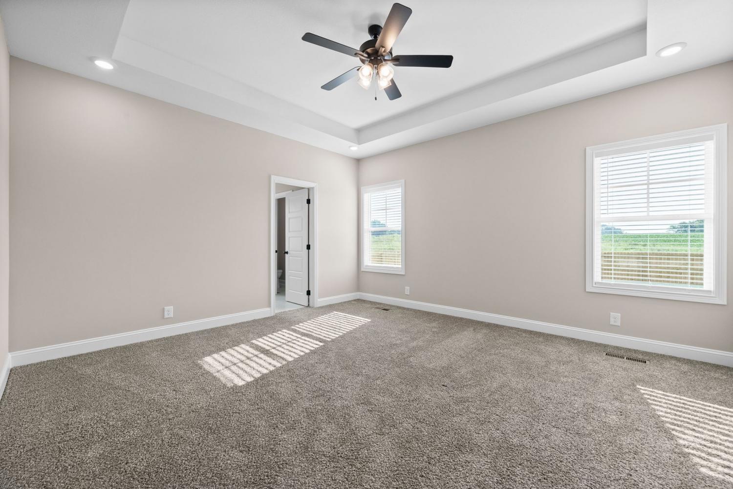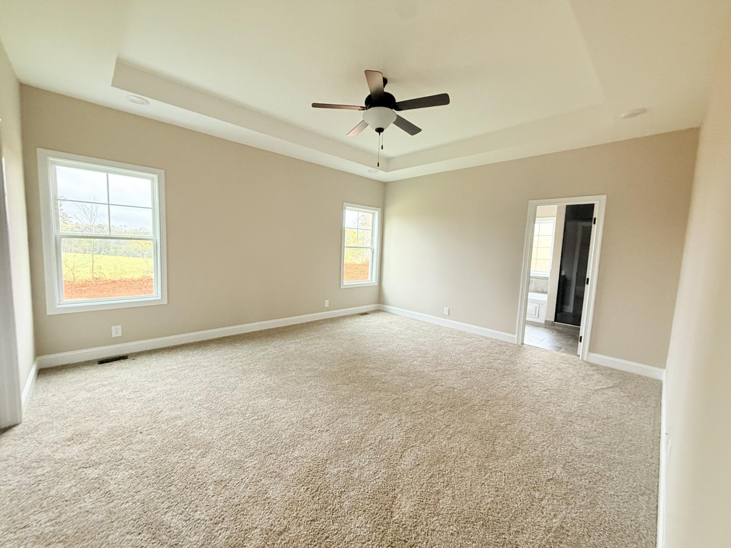 ***$17,500 in seller concessions***Step into over 3,200 square feet of thoughtfully designed living space in this newly constructed two-story home in Cardinal creek. With 5 spacious bedrooms, including a main-level primary suite, and two and a half baths, this layout offers flexibility for everyday living and entertaining. The open-concept kitchen features quartz countertops, a large island, stainless steel appliances, and a walk-in pantry—perfect for meal prep and gatherings. Upstairs, three additional bedrooms all include walk-in closets, with the oversized fourth bedroom offering ideal space for a media room, playroom, or home office. The primary suite impresses with a tray ceiling, a generous walk-in closet, and a spa-style bath complete with a tile shower, soaking tub, and double vanities. Enjoy the charm of a covered front porch and relax or entertain on the covered back deck overlooking a fully fenced backyard. Laminate flooring runs through the main living areas and fourth bedroom, and the home also includes added attic insulation, blinds, and a well-appointed laundry room with cabinetry. Conveniently located with easy access to local amenities, this home offers modern comfort and smart design in every detail.