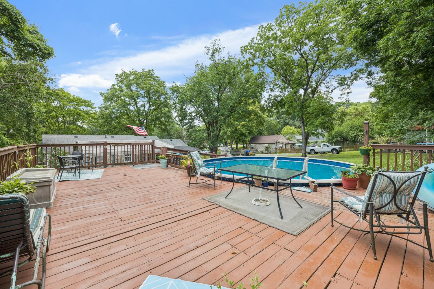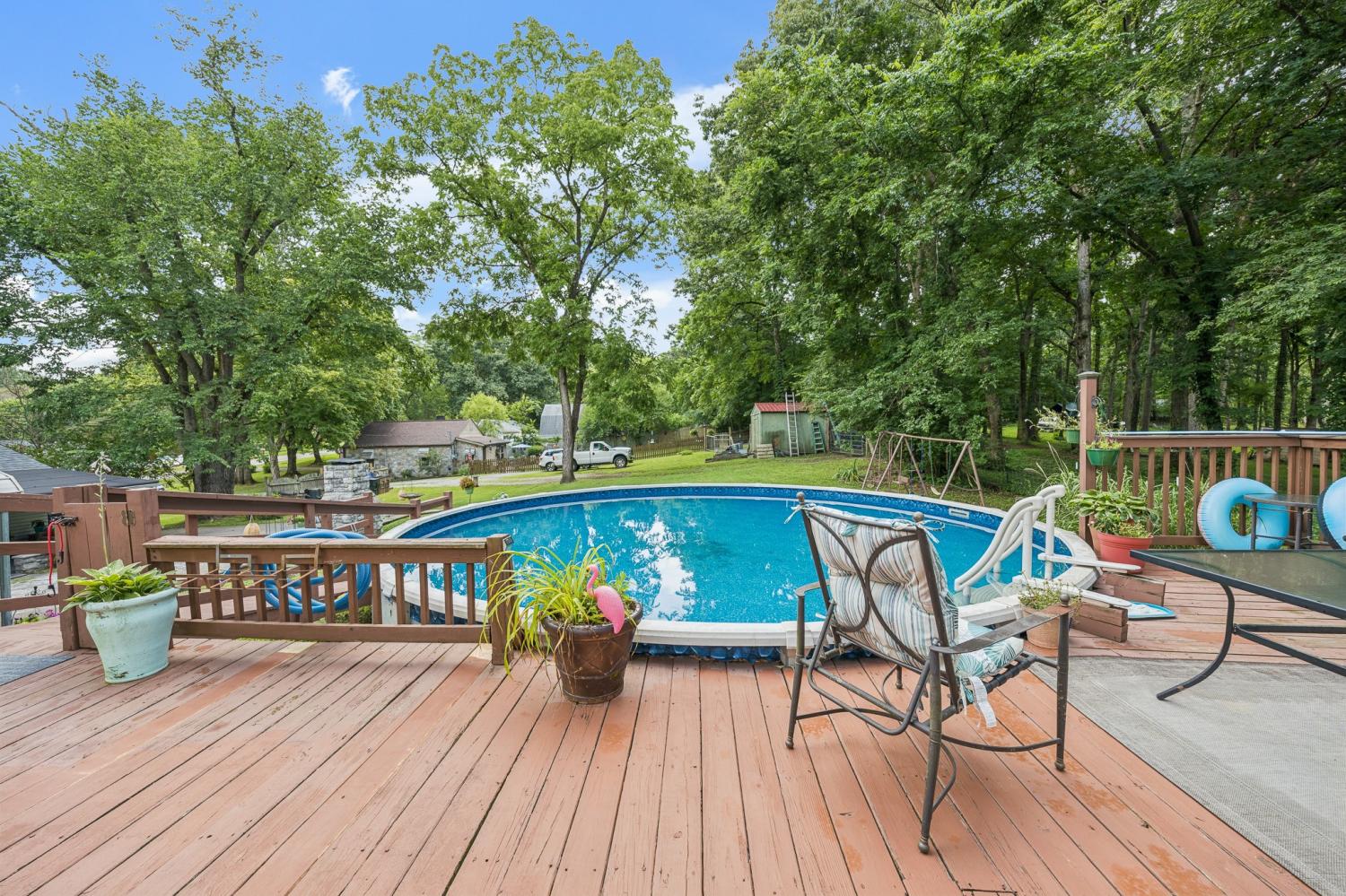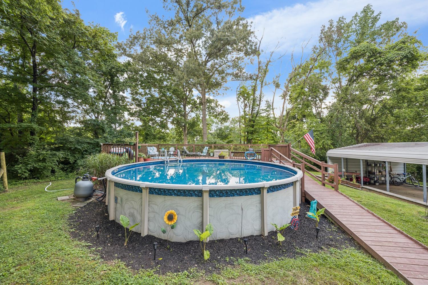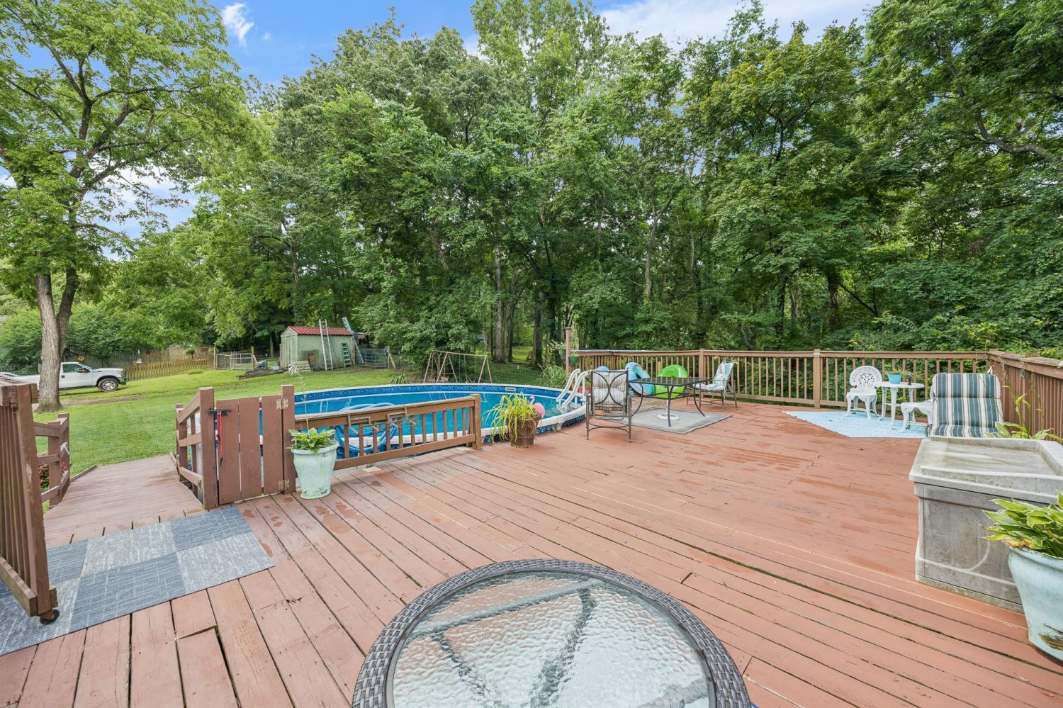 Welcome to a home full of heart and history. The front porch is where the sellers spent countless mornings with coffee, greeting neighbors and sharing stories—each brick holds a memory. In the back, a private retreat awaits: a spacious deck surrounds the above-ground pool, perfect for summer fun. The seller’s favorite spot? The quiet back porch, ideal for birdwatching and peaceful evenings by the outdoor fireplace. Grill out, unwind, and make your own memories here. Whether you're entertaining or simply enjoying the breeze, this home offers comfort, charm, and connection at every turn.