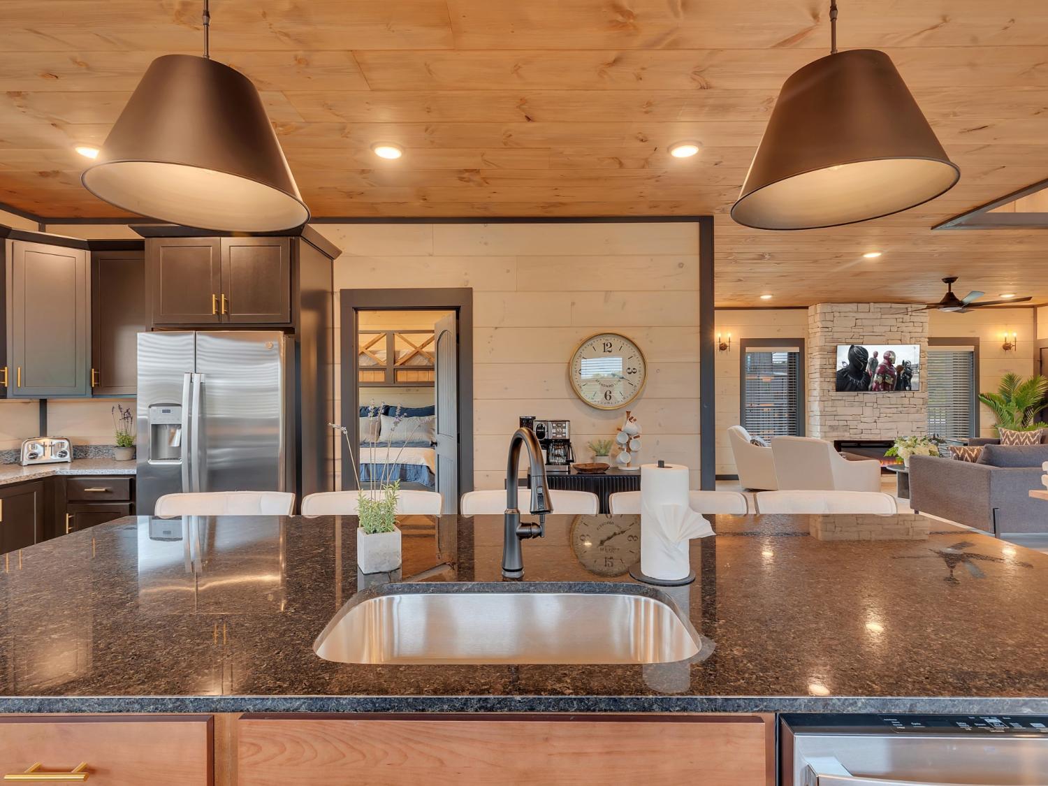 BACK on MKT at NO FAULT of SELLER. Rare opportunity for 8-Bed LUXURY Cabin with guest access to an EXCLUSIVE WATER PARK in a brand-new CABIN COMMUNITY! Schedule your private tour--purchase price of WATERPARK included within CABIN PURCHASE (and NO admission charge to overnight guests!) This property boasts of an 8-BED cabin with a PRIVATE INDOOR POOL (plus access to a waterpark!), a PRIVATE MOVIE THEATER, and GAME ROOM...with contemporary styling and designer finishes. Cabin conveys fully-furnished with a fully-stocked kitchen. Cabin is sprinklered with central fire station alarm-monitored system. NO RESTRICTIONS on self-mgmt or cabin mgmt. Turnkey ready to rent. Designed by professional design team. An ABSOLUTE MUST SEE--located ONLY 1 mile from the Parkway.