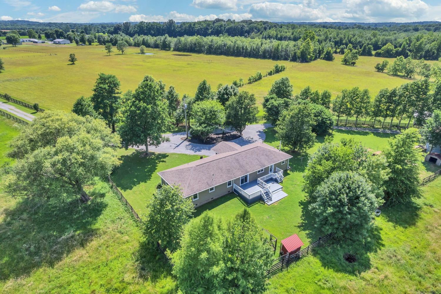 Charming 14-Acre Horse Farm in Bell Buckle, TN! Welcome to this beautiful 14-acre horse farm in the iconic town of Bell Buckle! Perfectly designed for equestrian living, this serene property features 6 oversized stalls with water and electric, a 100x100 riding arena, a fully enclosed tack room/workshop, 2 large fenced pastures (excellent fencing), a silo, hay barn, equipment barn, chicken coop, and a gated entrance for added privacy. The updated 4-bedroom, 2.5-bath farmhouse blends country charm with modern comfort. Step into the open eat-in kitchen featuring a large island, walk-in pantry, and separate dining room—perfect for relaxed meals after a day on the farm. The inviting living room includes a black coal stove and plenty of space to unwind. A mudroom with an attached laundry area provides a place to kick off your boots when you come in from the barn. The primary suite includes its own private bath, and recent updates throughout the home include new flooring, fresh paint, and modern lighting. Take in the peaceful countryside views from the expansive back deck—sunrises and sunsets here are truly unforgettable. This property is well-equipped for all your livestock needs, with both city water and a spring-fed well, plus multiple hydrants located across the acreage. A charming little pond adds to the idyllic setting. Bring your horses, cows, chickens, or goats—this is the farm lifestyle you’ve been waiting for! All items from a recent inspection have been completed, so you can move in with peace of mind. Don’t miss your chance to own a turnkey farm in one of Tennessee’s most beloved rural communities. Seller has performed a pre listing inspection. Report available up request.